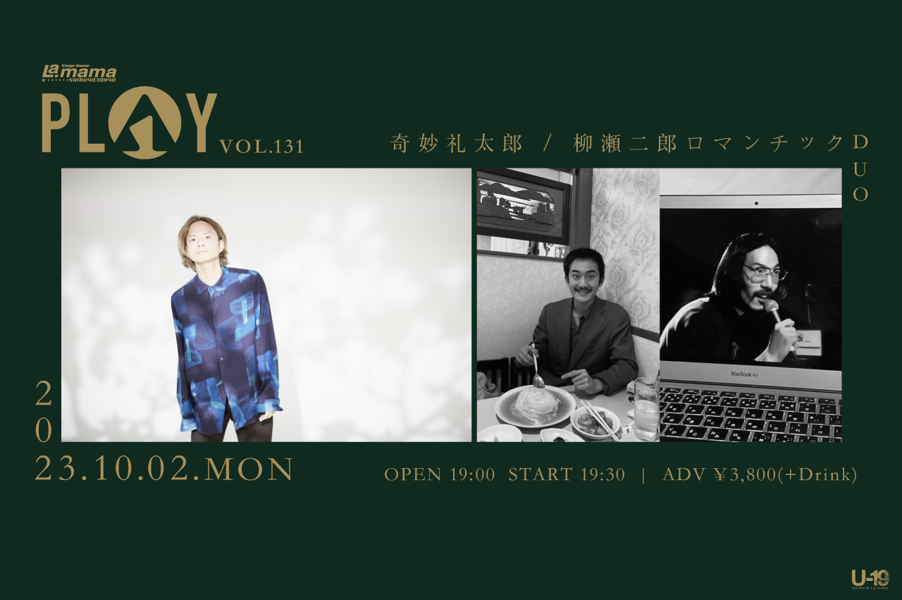 『PLAY』は、渋谷La.mamaが企画するツーマンライブシリーズ。今回は、奇妙礼太郎と柳瀬二郎ロマンチックDUOが出演する。