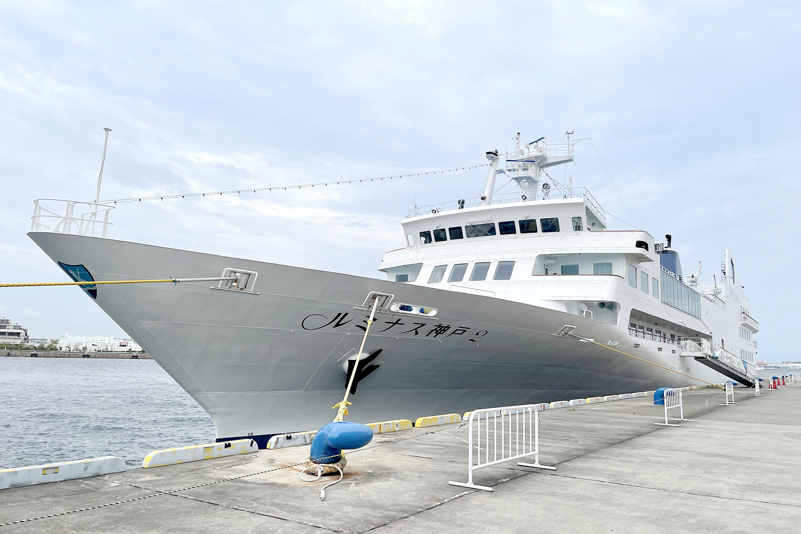 今回のキービジュアルの撮影場所は「ルミナス神戸2」。ルミナス神戸2は1994年から就航している、日本最大級のレストランクルーズ船だ(全長106m、容積4,778t)。船内は1930年代に客船の黄金時代を彩ったフランスの豪華客船「ノルマンディー号」をイメージして造られており、レトロで重厚な雰囲気が漂う。予約して乗船することが可能で、豪華な食事とともに神戸の美しい景色を堪能することができる。