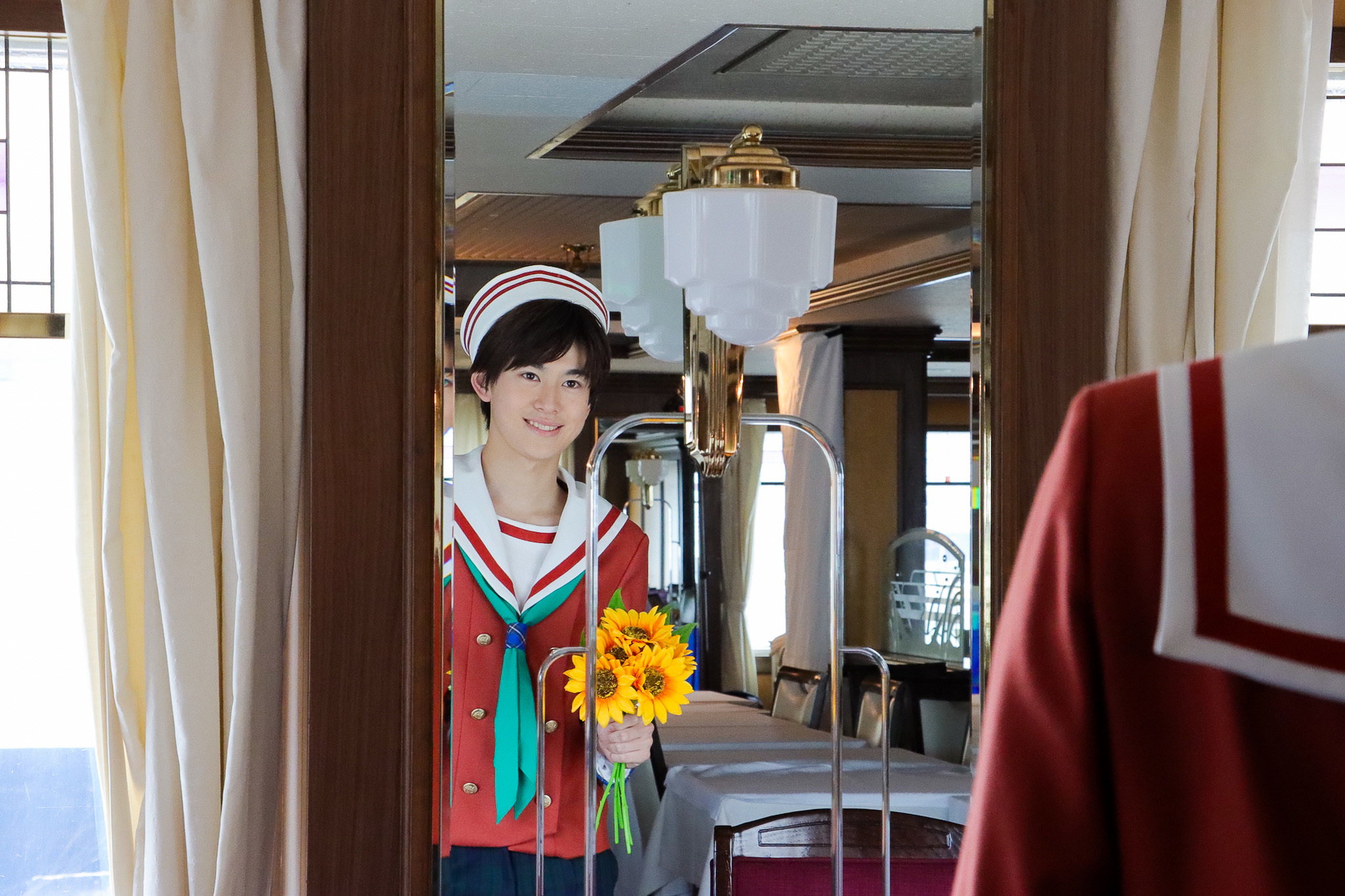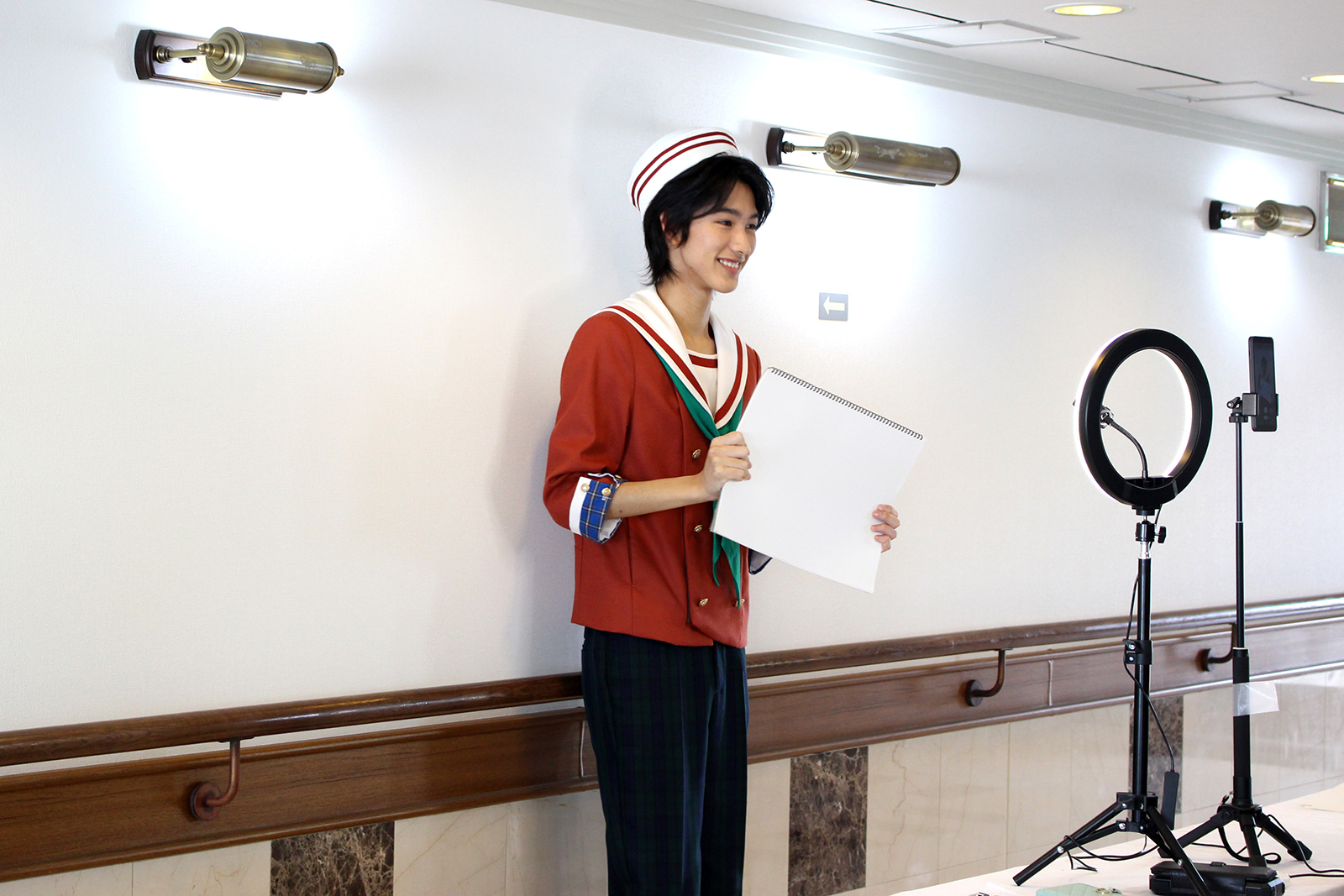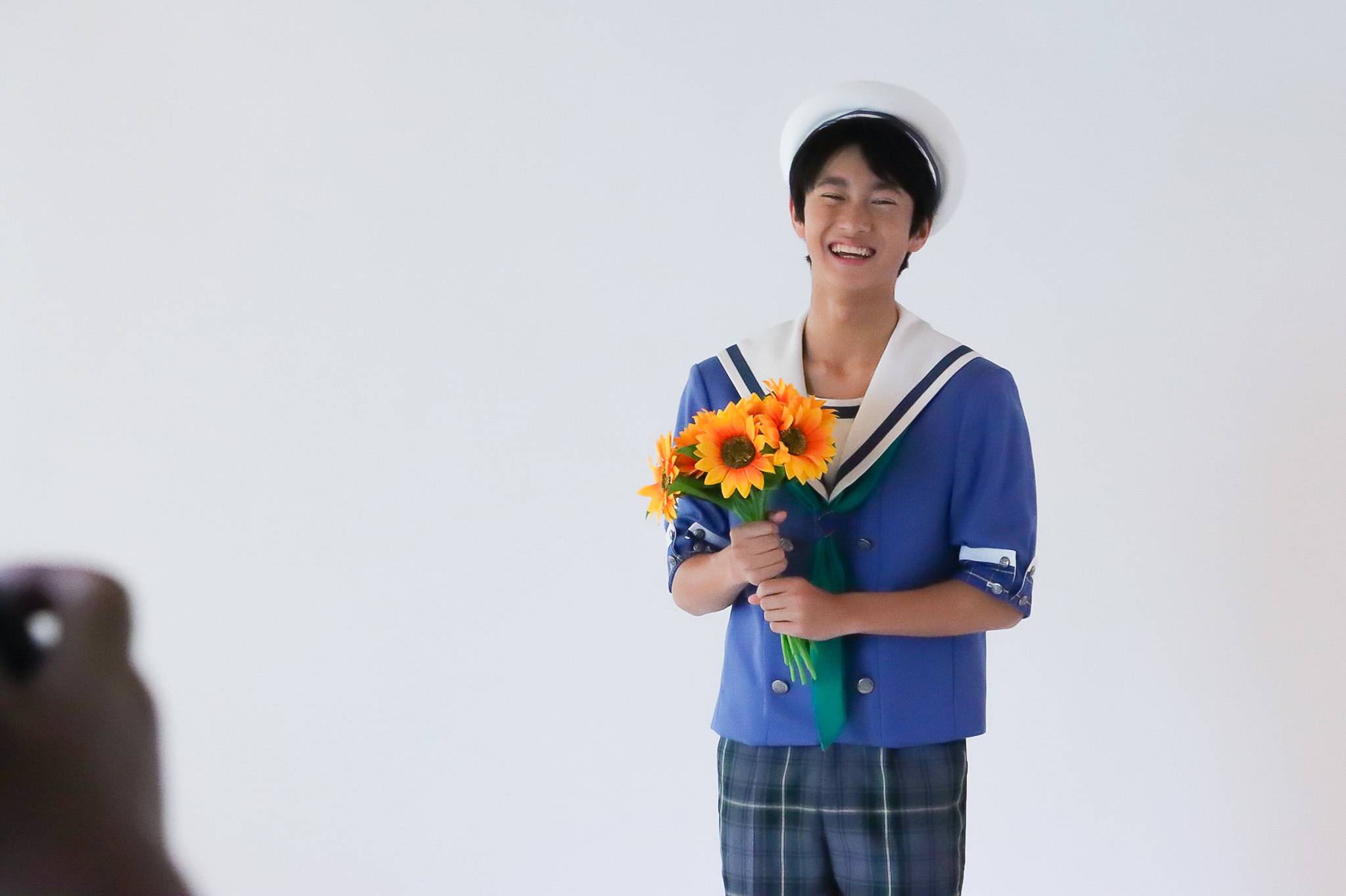集中力も必要になるが、明石侑成は後に続くメンバーのために少しでも早く終わらせようと、鏡の前でヒマワリを持って角度や表情のリハーサルを行っていた。その甲斐あって「うまい。4月よりも良くなってるよ!」とスタッフに褒められ、安心したように笑顔を浮かべていた。