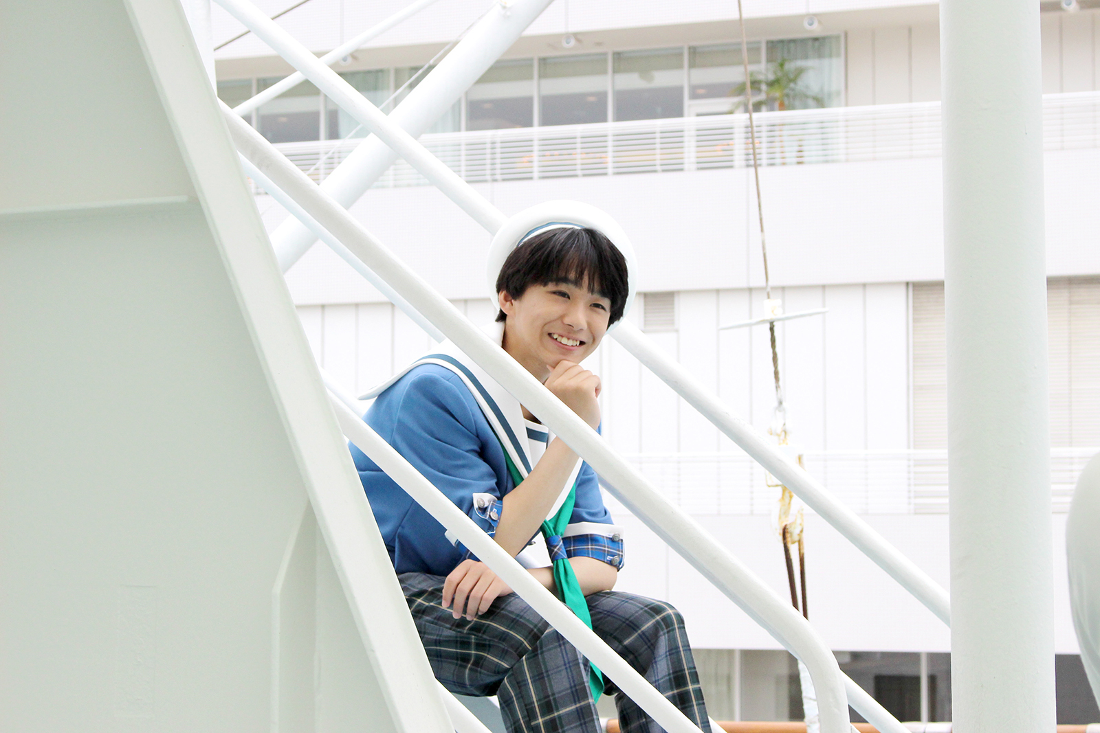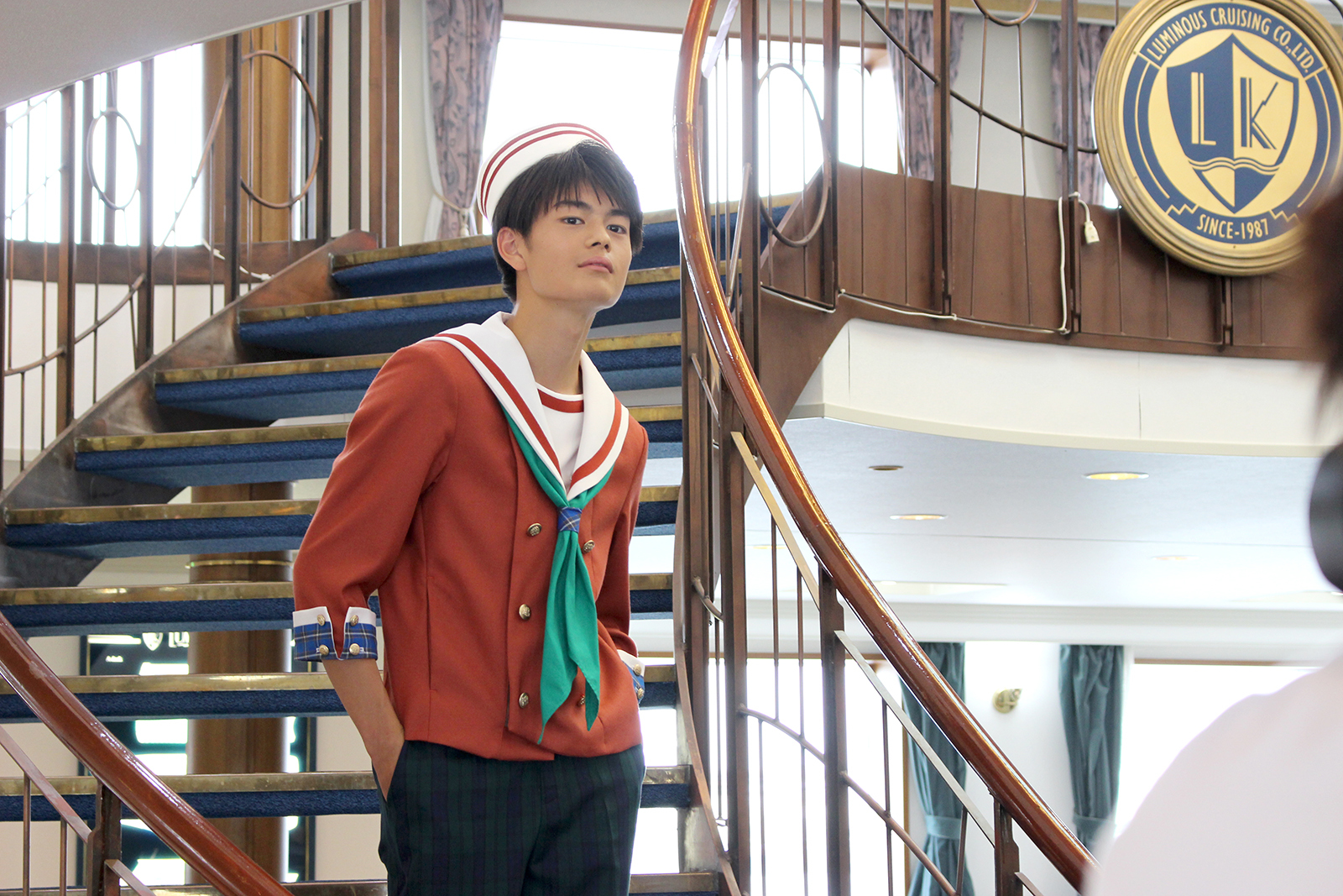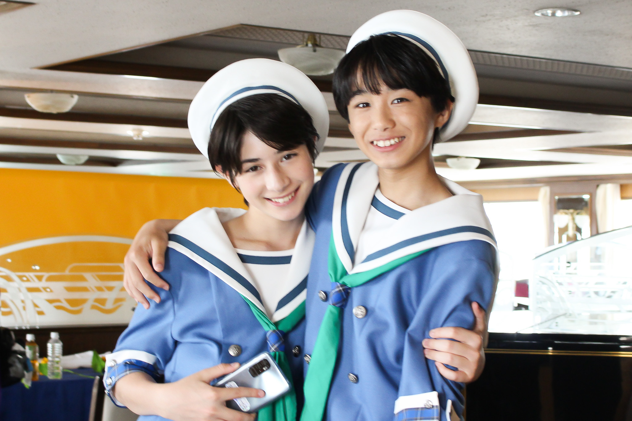 「船乗るの初めて! 楽しい!」と瞳を輝かせていたのは、6月22日(木)に15歳になったばかりの細見奏仁。最年少の髙橋龍ノ介とふざけあいながらも、いざ撮影となるとバシッとカッコ良くキメていたのはさすがだった。