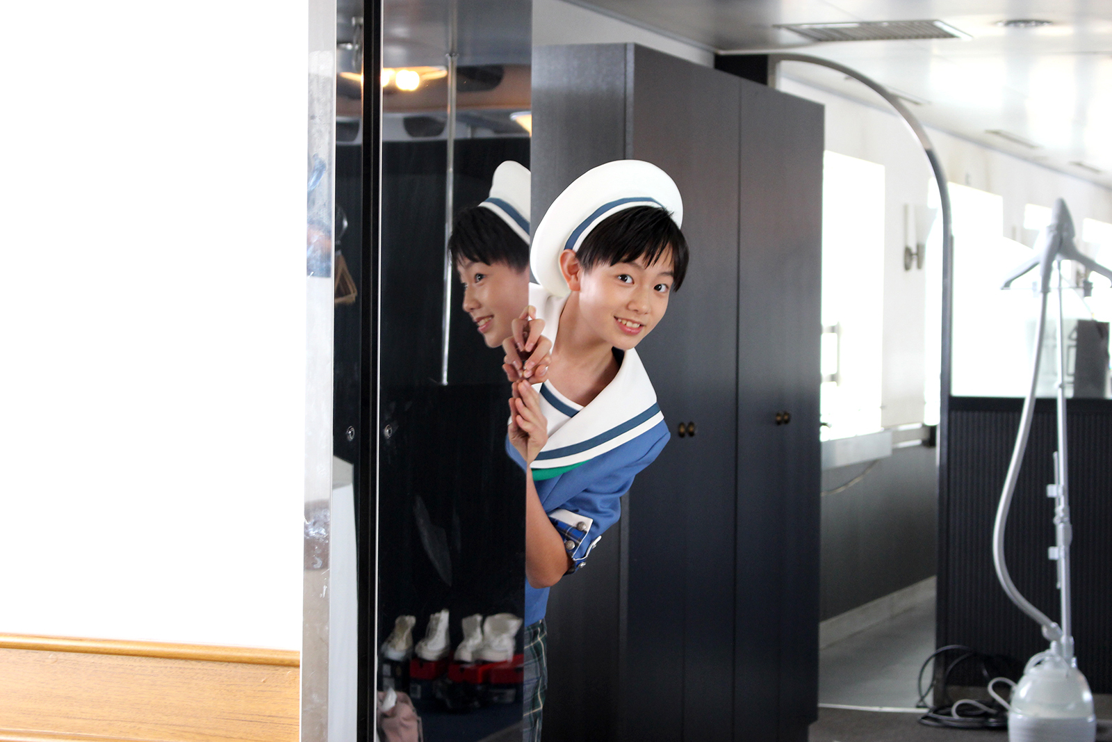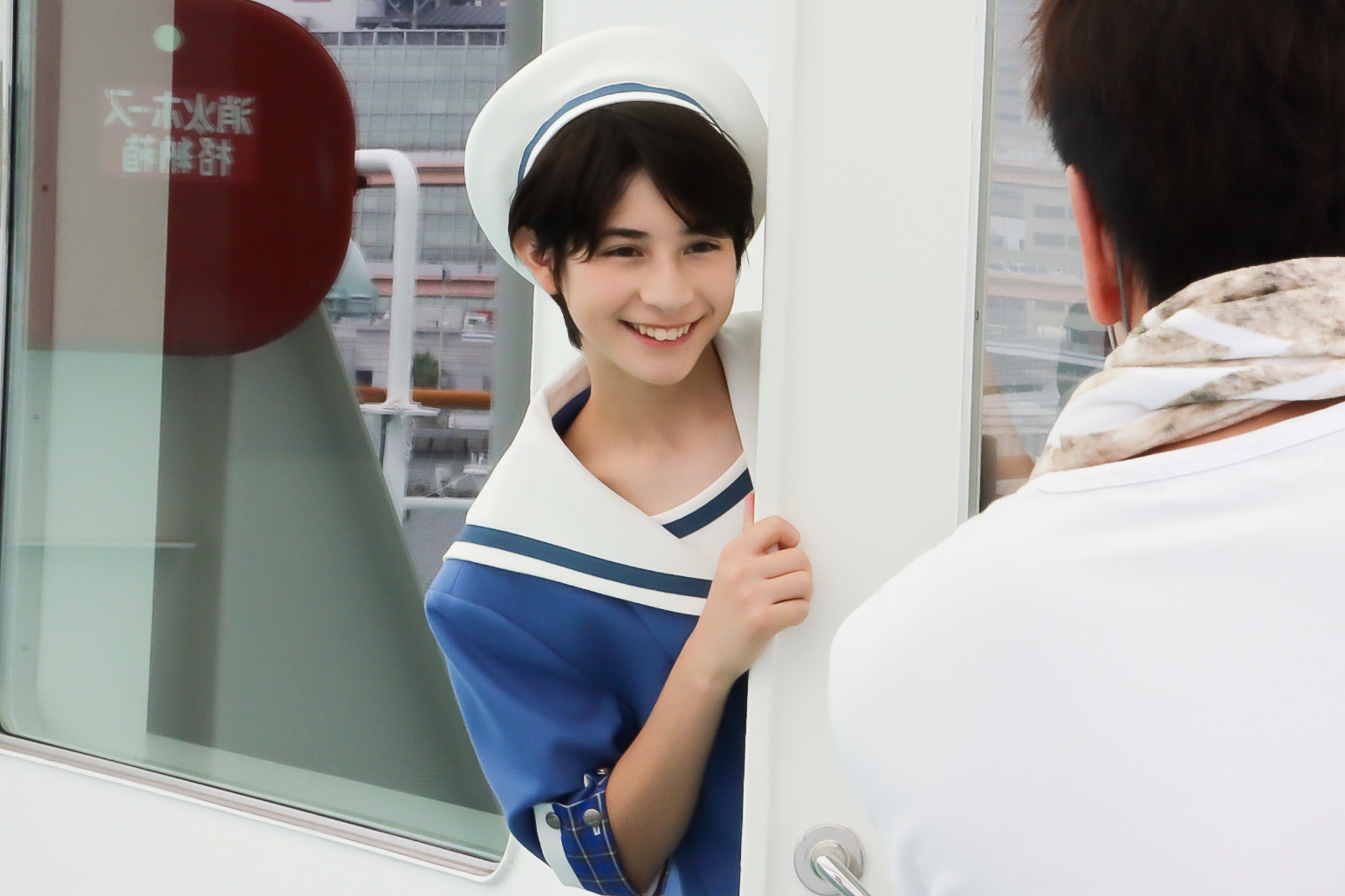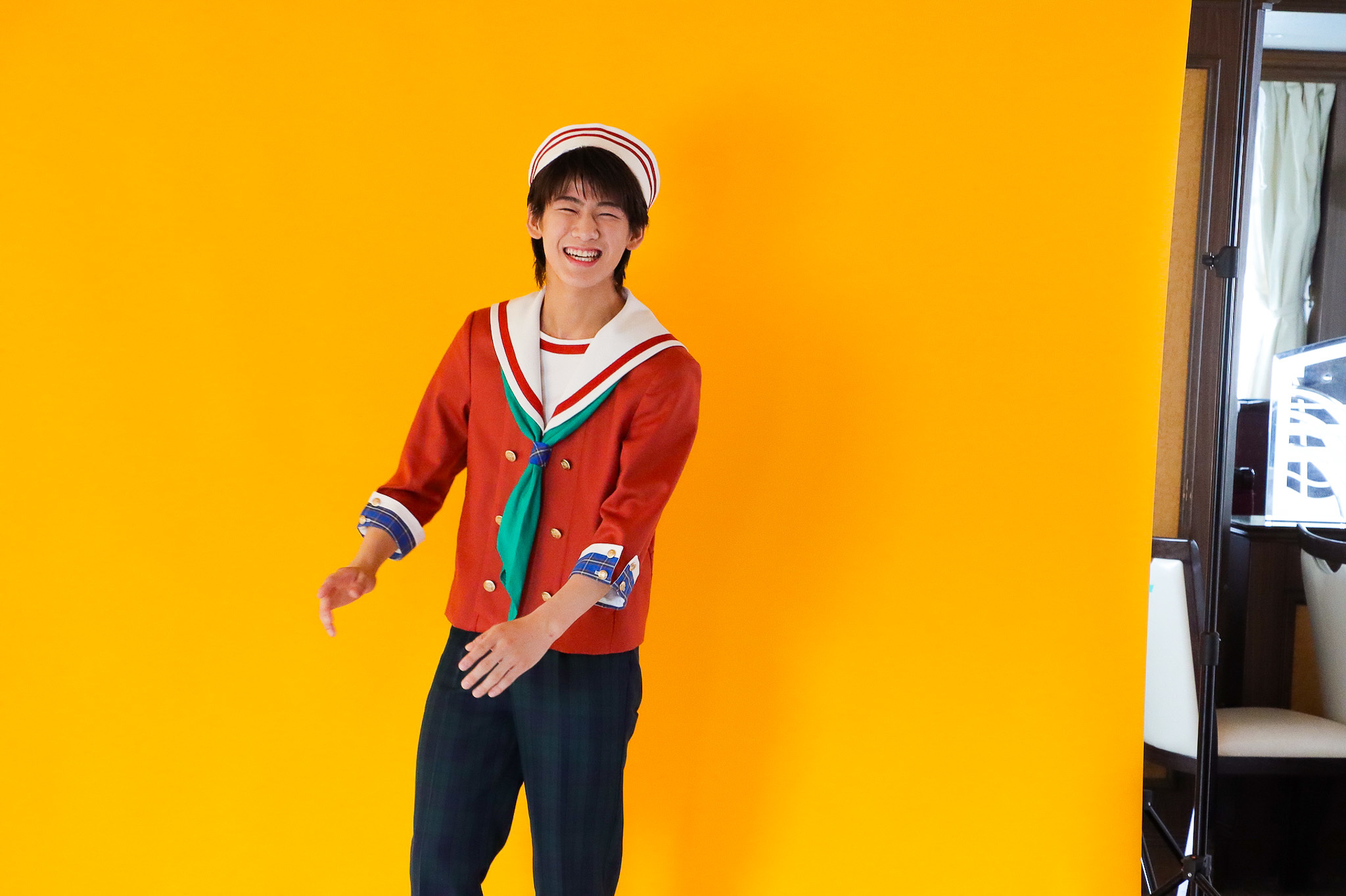 「船乗るの初めて! 楽しい!」と瞳を輝かせていたのは、6月22日(木)に15歳になったばかりの細見奏仁。最年少の髙橋龍ノ介とふざけあいながらも、いざ撮影となるとバシッとカッコ良くキメていたのはさすがだった。