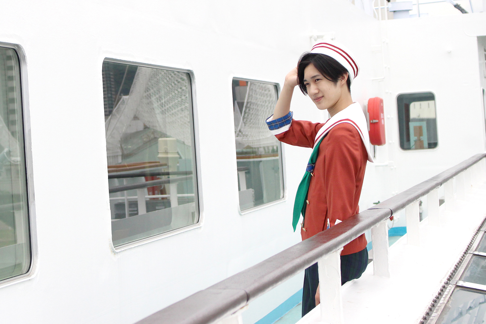 当日は曇り空。湿気があって蒸し暑いものの気温が高すぎることもなく、撮影には適した気候と言えるだろう。SPICEが午前中の撮影開始時刻にお邪魔すると、既に現場入りしたメンバーから撮影が始まっていた。1日で全員分の撮影を行うため、2名のカメラマンが船内の複数箇所で同時進行。スタッフやメイクさんは慌ただしそうに船内を駆け回っていた。