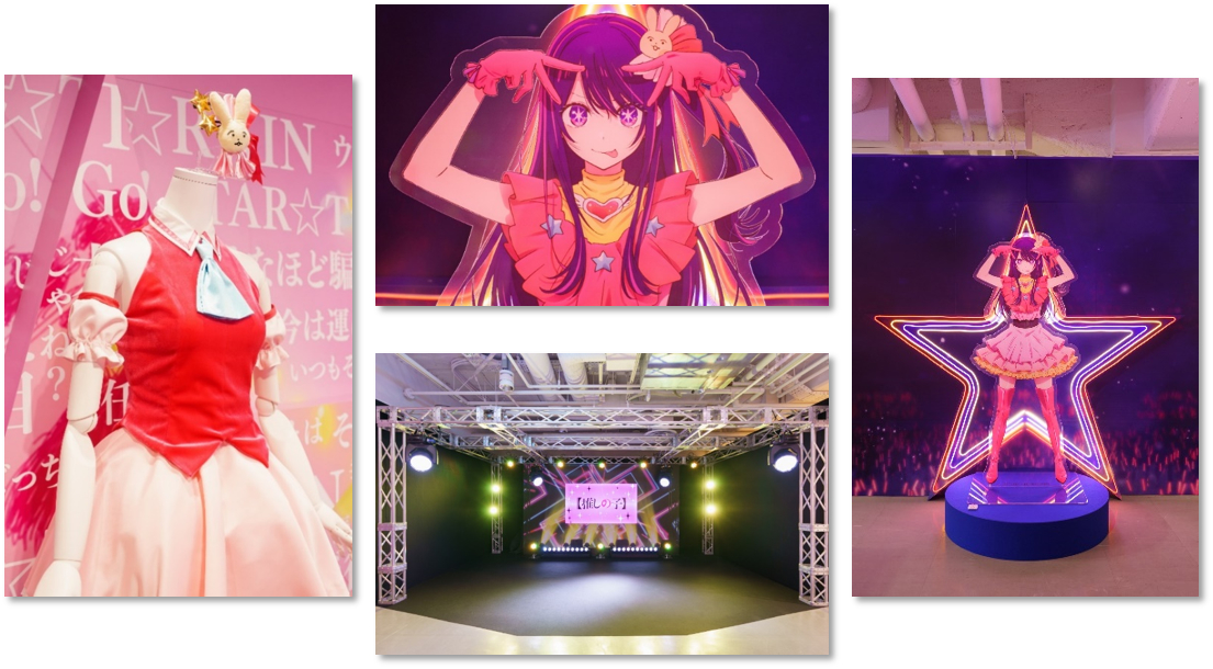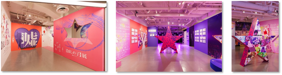 本展では、現在放送中のTVアニメに使用された絵コンテ、原画の複製展示のほか、物語の中で着用している衣装の再現展示、ライブステージ映像コンテンツ、作中の印象に残る様々なシーンを再現。体験が出来る多くのフォトスポットなども展示する。さらに「音声ガイド付きチケット」も用意されており、会場限定のスペシャルな「アイ」の音声を聴きながら展示を楽しむこともできるという。また、会場では展覧会開催を記念したオリジナルグッズも多数販売予定。