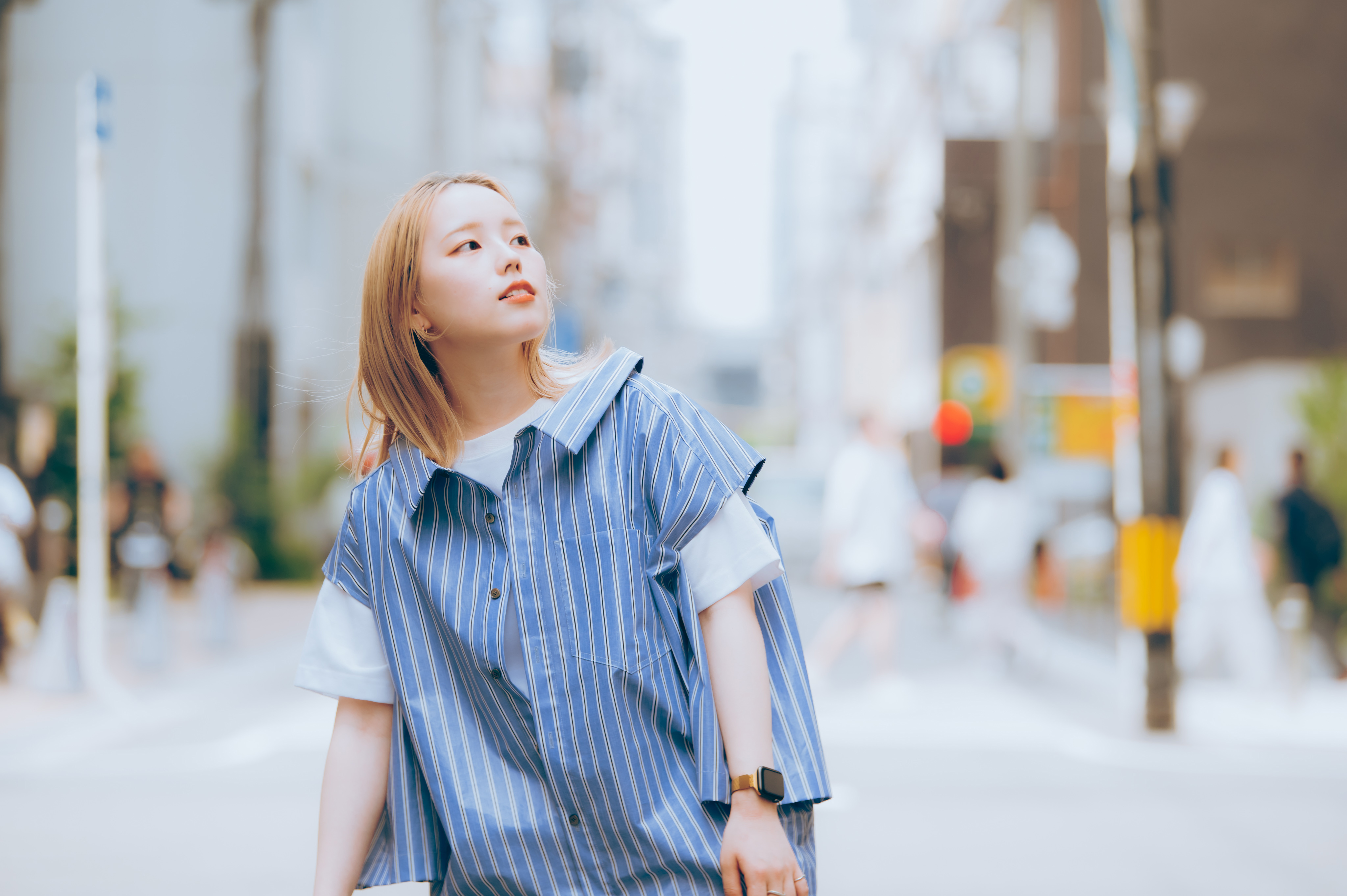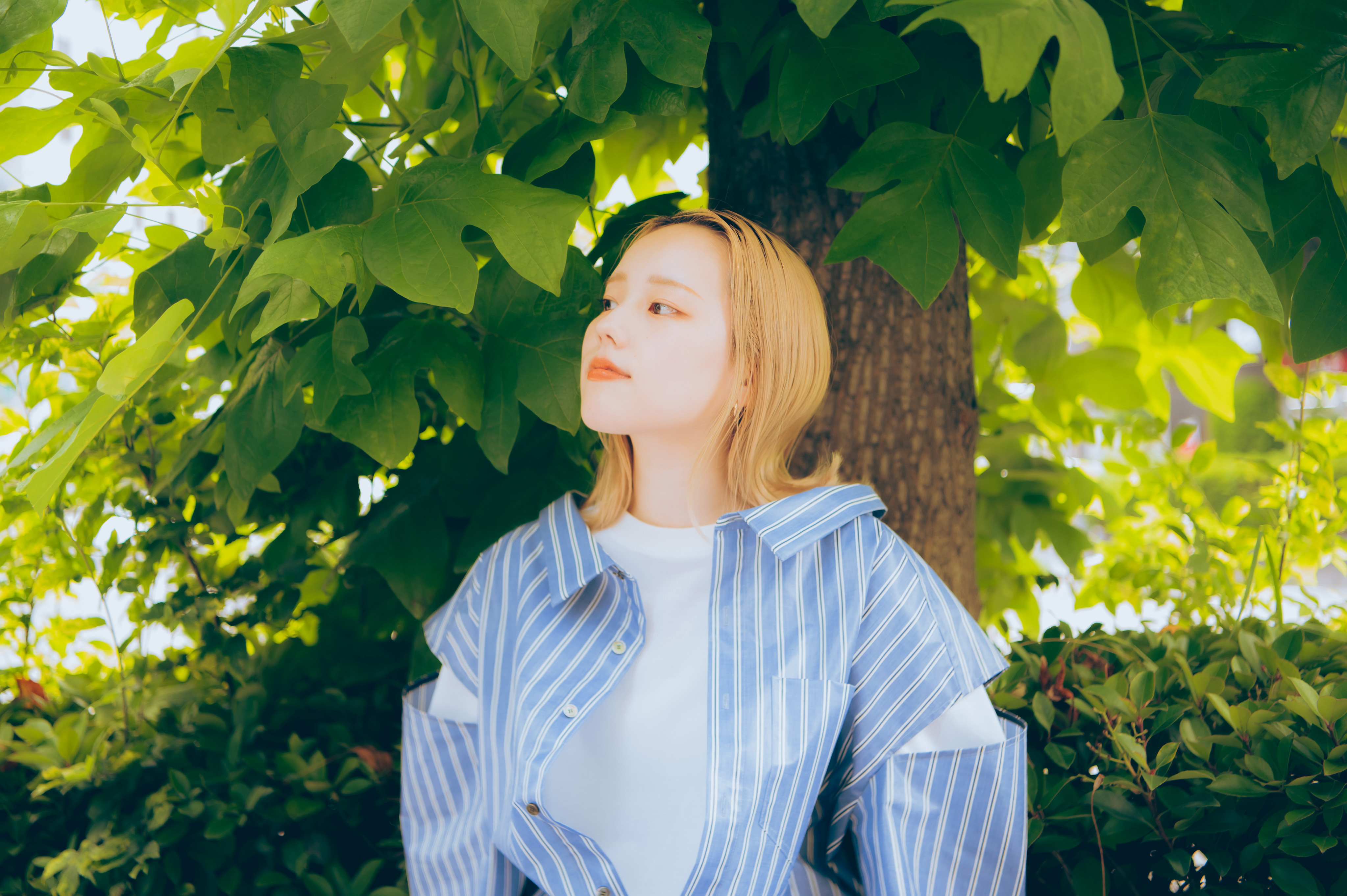 これはアートディレクターのMARIAHさんが出してくださいました。撮影の時点では、まだ曲はほとんどできあがってなかったんですけど、「社会人女子の夏」というテーマは決まっていて。初夏に開放的に楽しく、花も飛ぶようなテンションの女の子を撮りたいみたいな企画書が上がってきて。私もすごく素敵だなと思って、実際にお花も飛ばしてもらって撮影しました。