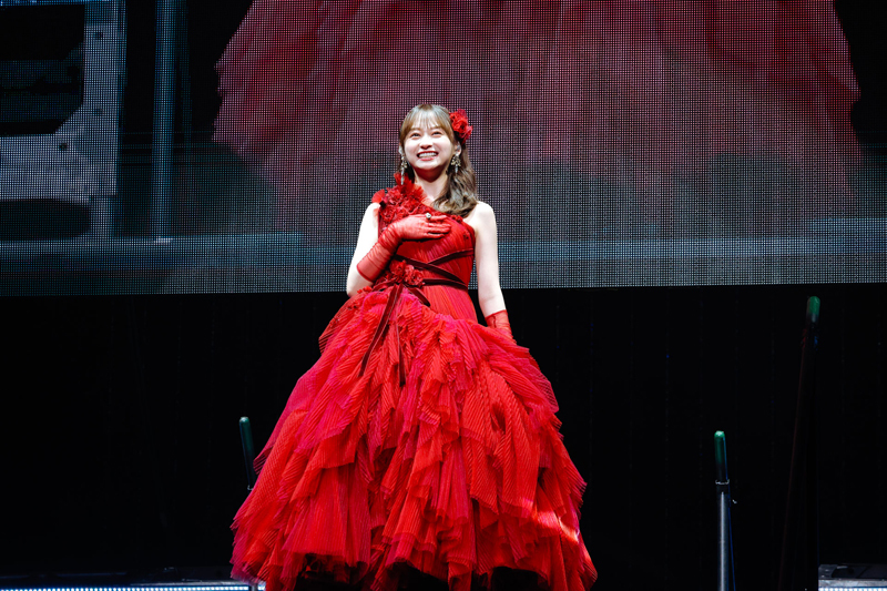 VTRが終わると、ステージに真っ赤なドレスに身を包んだ影山優佳が登場。便せん6枚にわたって綴ったメッセージを読み上げた。