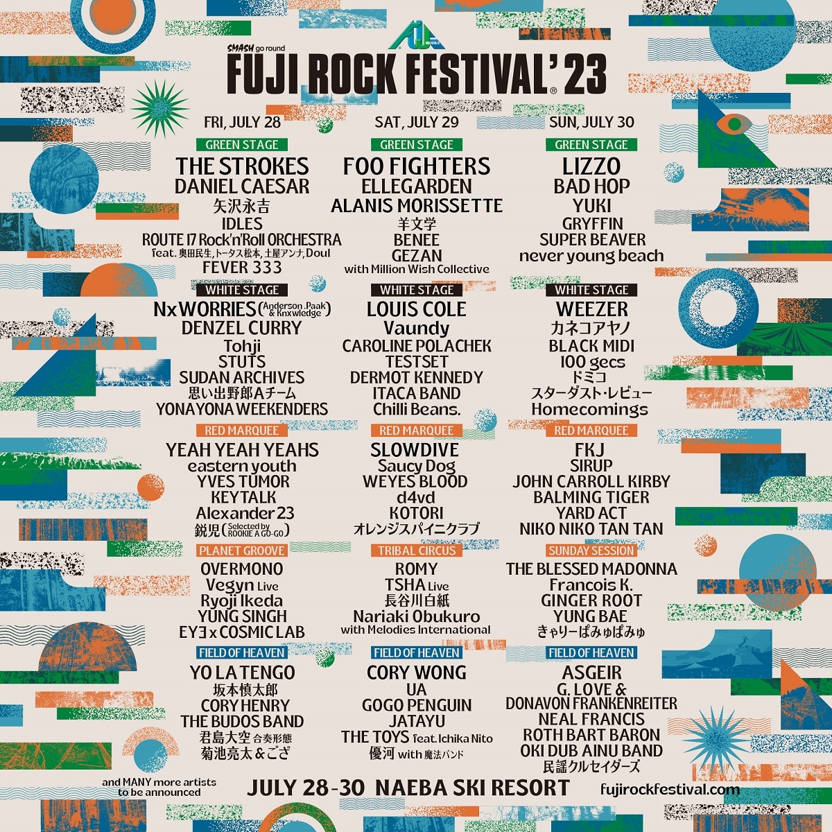 7月28日(金)・29日(土)・30日(日)に新潟県湯沢町苗場スキー場にて開催される『FUJI ROCK FESTIVAL'23』(以下、フジロック)のチケット、前夜祭などの最新情報が発表された。