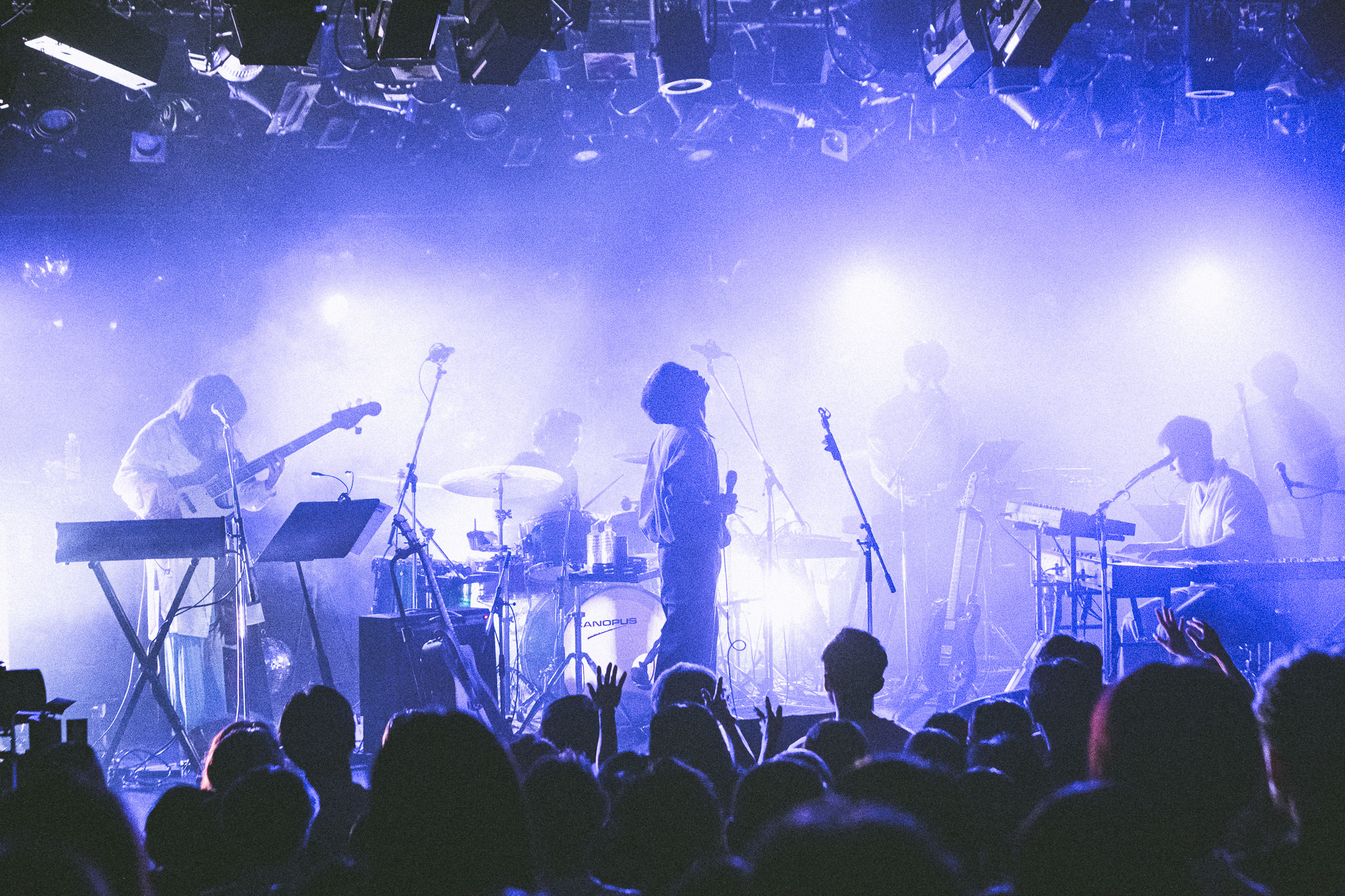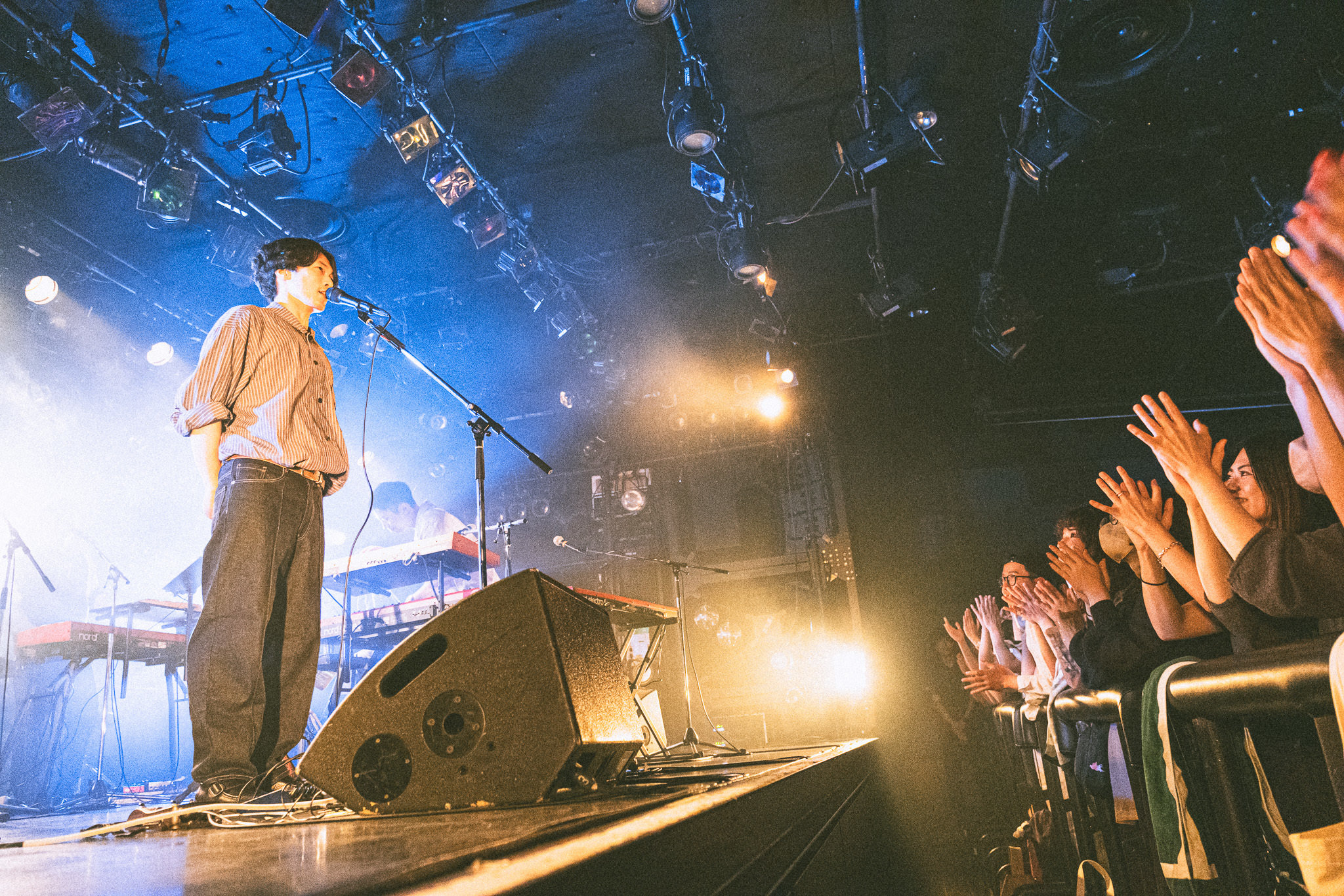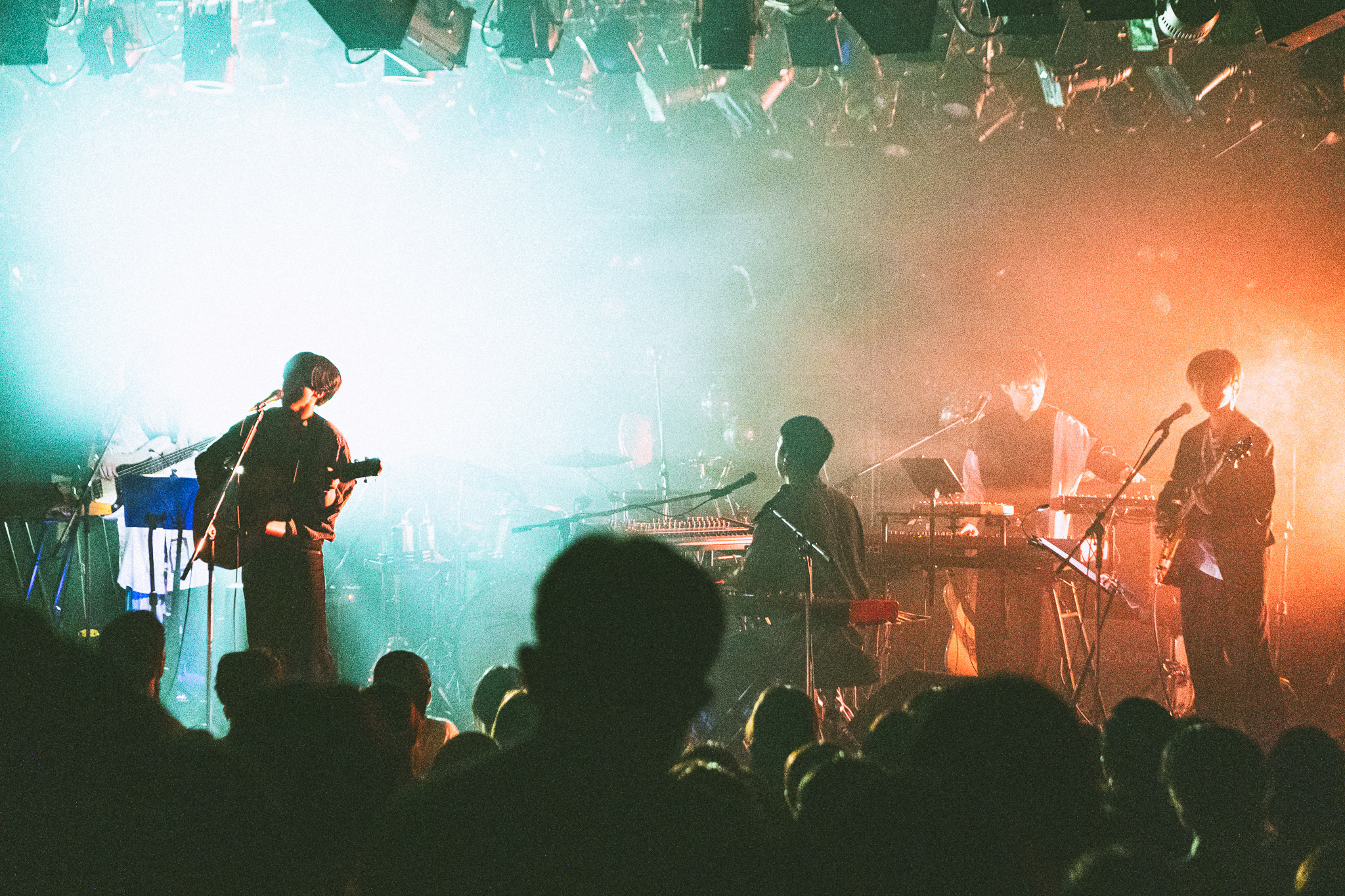 柔らかなイエローの照明がポップな音世界を包み込む中、クラップも自然発生。甫木元がかきむしるアコギがレイドバックなムードを醸し出し、一転しての「Over Now」では朝田拓馬(Gt)の泣きのギターや菊池の軽やかな旋律と、丁寧に重ねられていく音のレイヤーでじわじわと昇り詰めていく。めいっぱい放出されるカタルシスは、今宵のハイライトとなった。