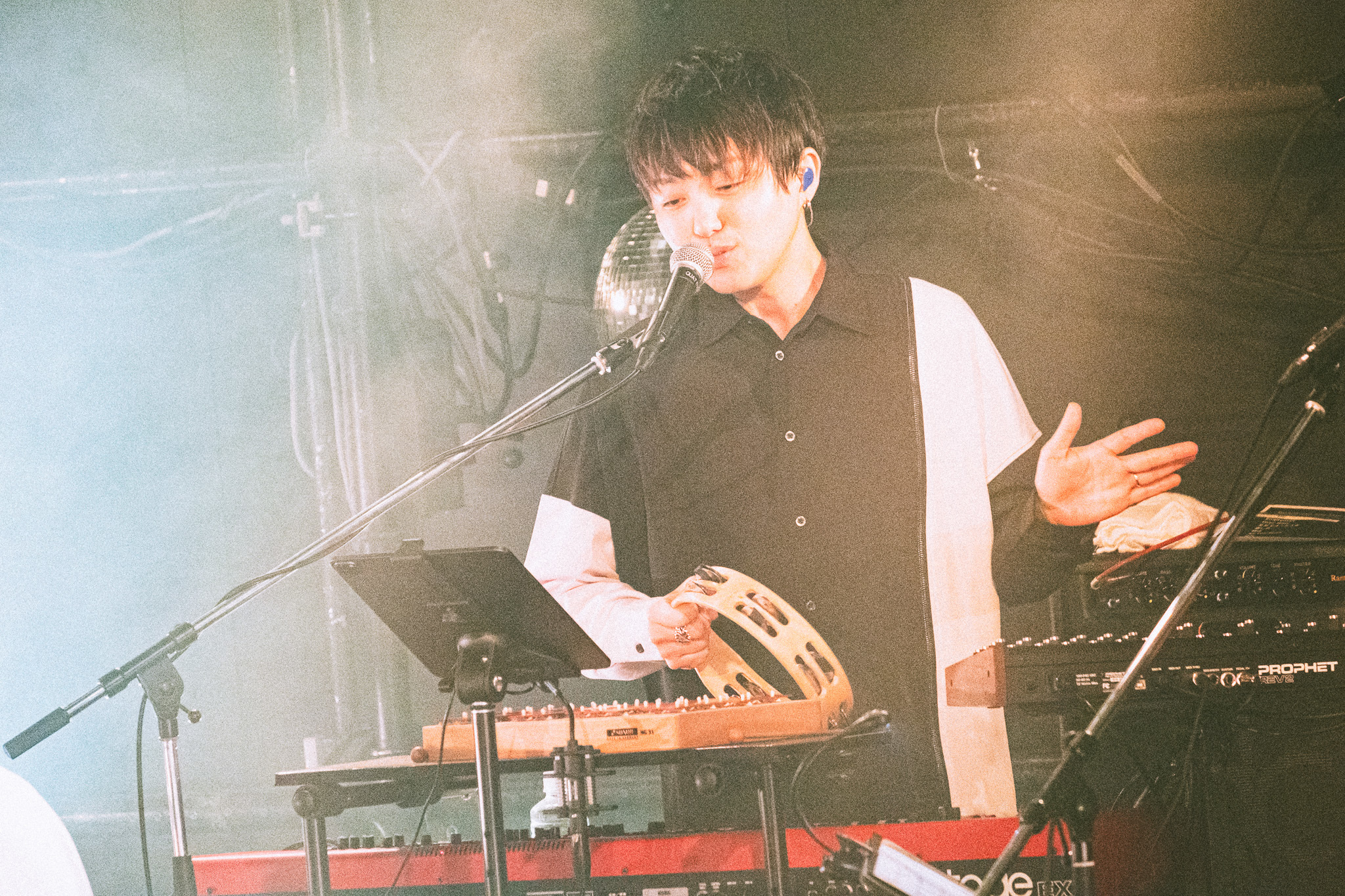 大歓声を受けての中盤戦、さらに粒立ちの良いドラミングやハイトーン・ボイスで圧倒していく中、秋谷弘大(Syn,Gt)のきらびやかなシンセサイザーの音色がセンチメンタルを加速させるなど、緩急織り交ぜたセットには息つく暇もない。ここで終わっても何ら不思議はないほど極上のクライマックス感を漂わせ、その後も解放感たっぷりのバラードや、体の輪郭が音に溶けていくような没入感をもたらすパフォーマンスで観る者の心を揺さぶり続けていく。ブラックミュージックの素養を宿した極太のグルーヴが体中を駆け巡っていったかと思えば、どこか郷愁を帯びたしなやかなポップネスに満たされる。さまざまな音を飲み込んだBialystocksらしく、会場は喝采で埋め尽くされていく。