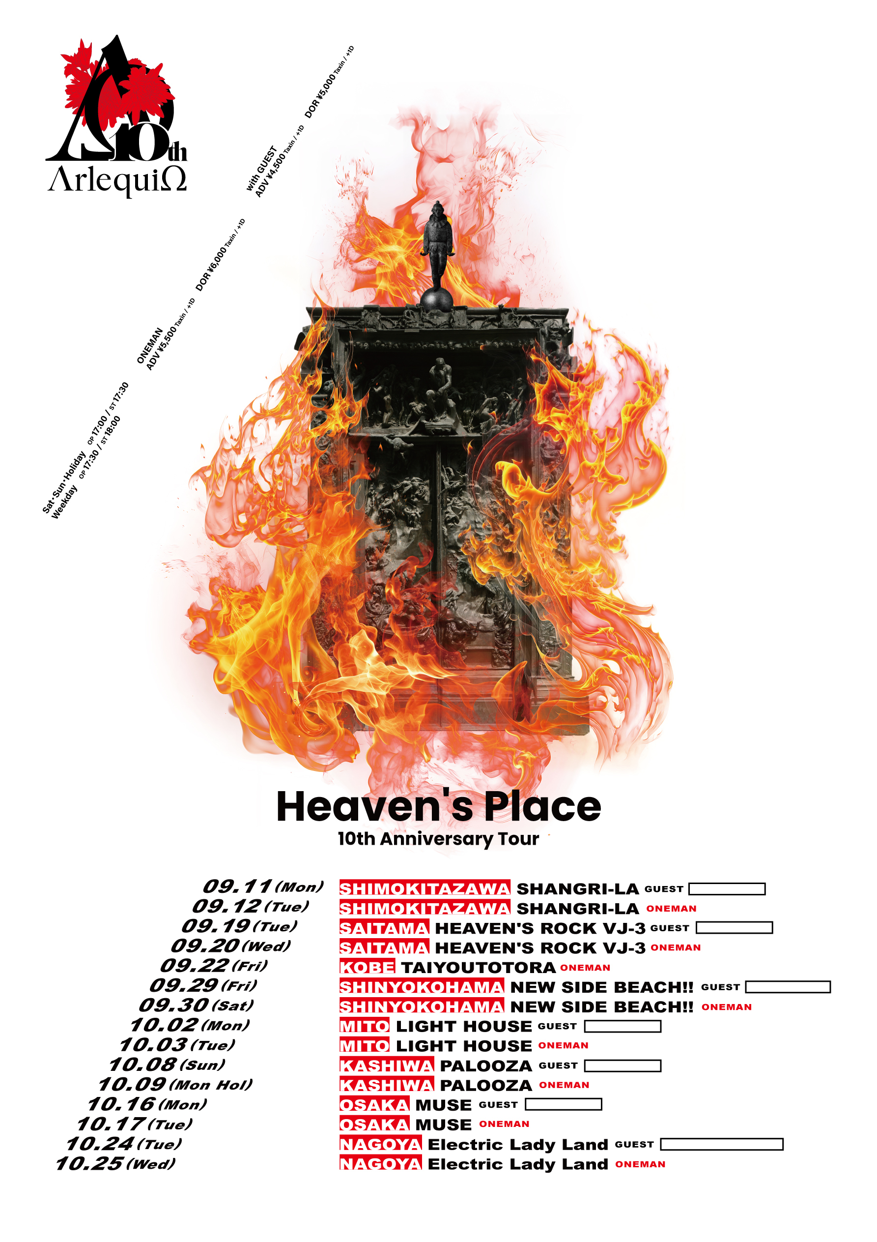 そして、同日には9月11日(月)/下北沢シャングリラよりスタートし、各地でゲストバンドを迎えるツアー、『10th Anniversary Tour「Heaven's Place」』の開催も発表。強者たちであろうことが予想されるゲストバンドは後日解禁される。