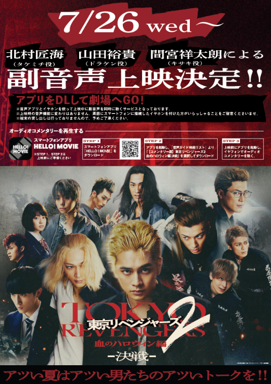 公開中の映画『東京リベンジャーズ2 血のハロウィン編 -決戦』にて、キャスト陣によるコメンタリー副音声上映が7月26日(水)より行われることがわかった。