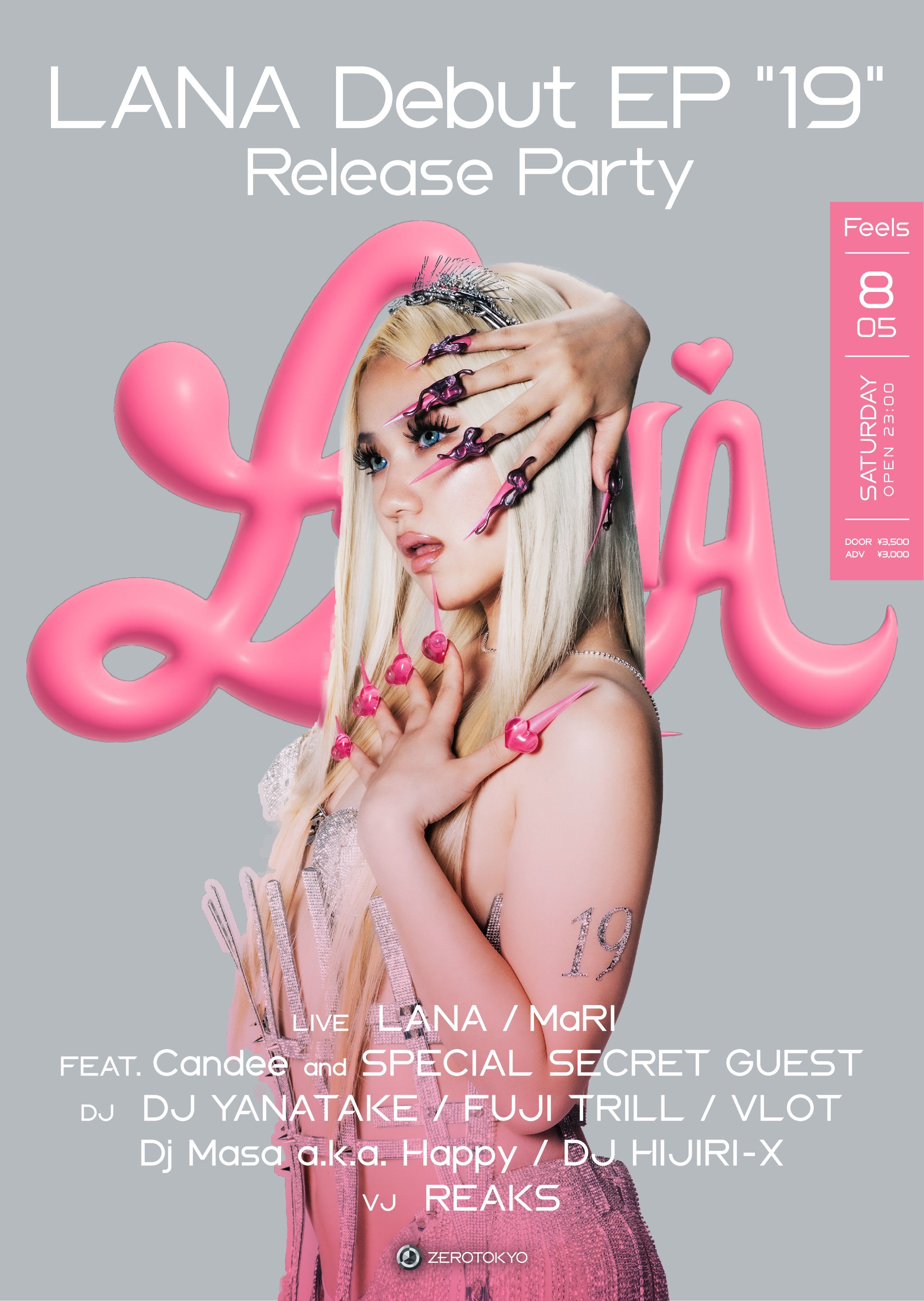 そして、今作のリリースを記念し、新宿歌舞伎町のZEROTOKYOではHIP HOPイベント『Feels』にてLANAにフォーカスした『19』のリリースパーティーを8月5日(土)に開催予定。今作の客演に入っているCandeeやMaRIをはじめ、スペシャルなゲストとともに『19』収録曲を披露する。