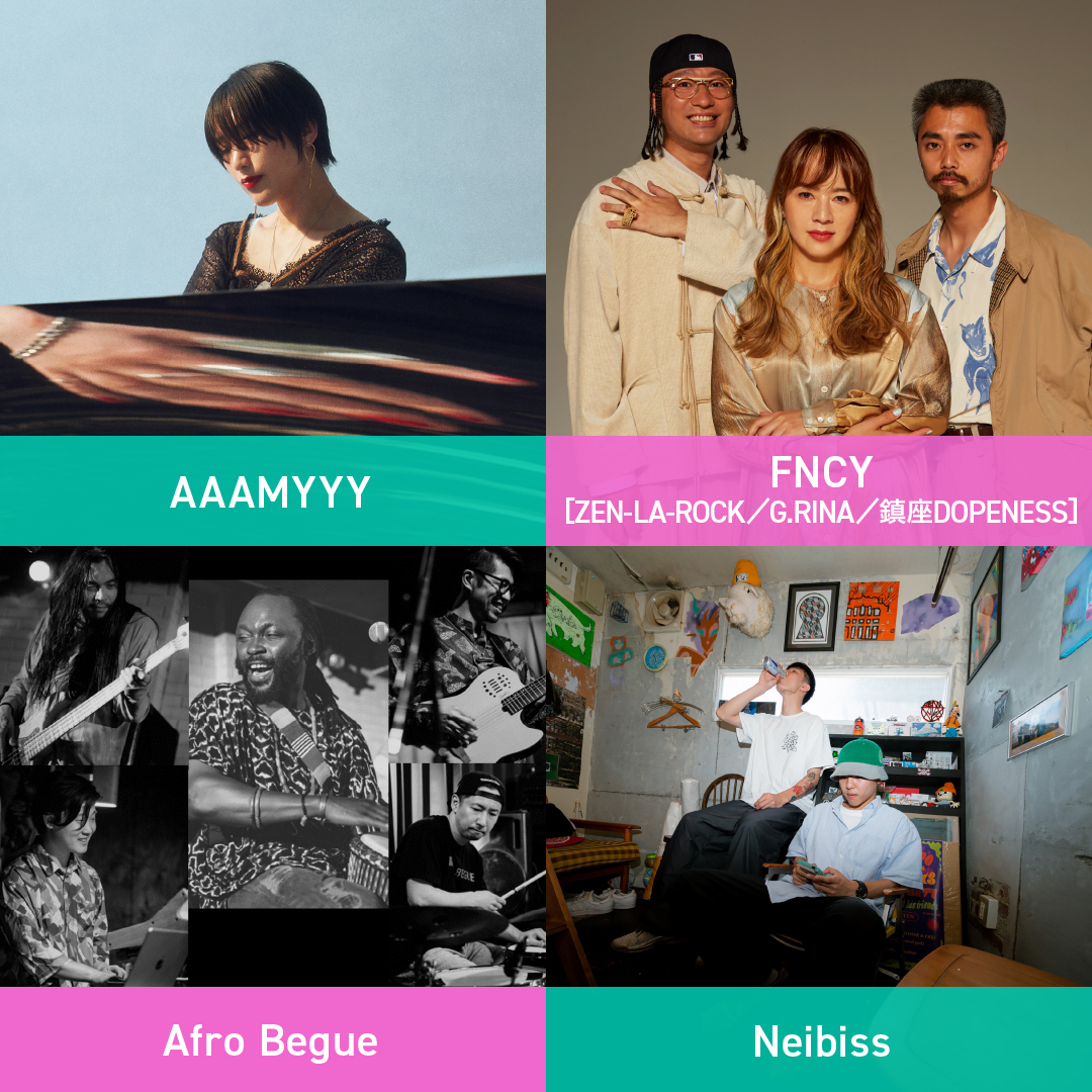 さらに、AAAMYYYやFNCYなど、国内外各地で活躍する個性豊かなアーティスト10組の出演が決定。今後も続くアーティスト発表に注目しよう。