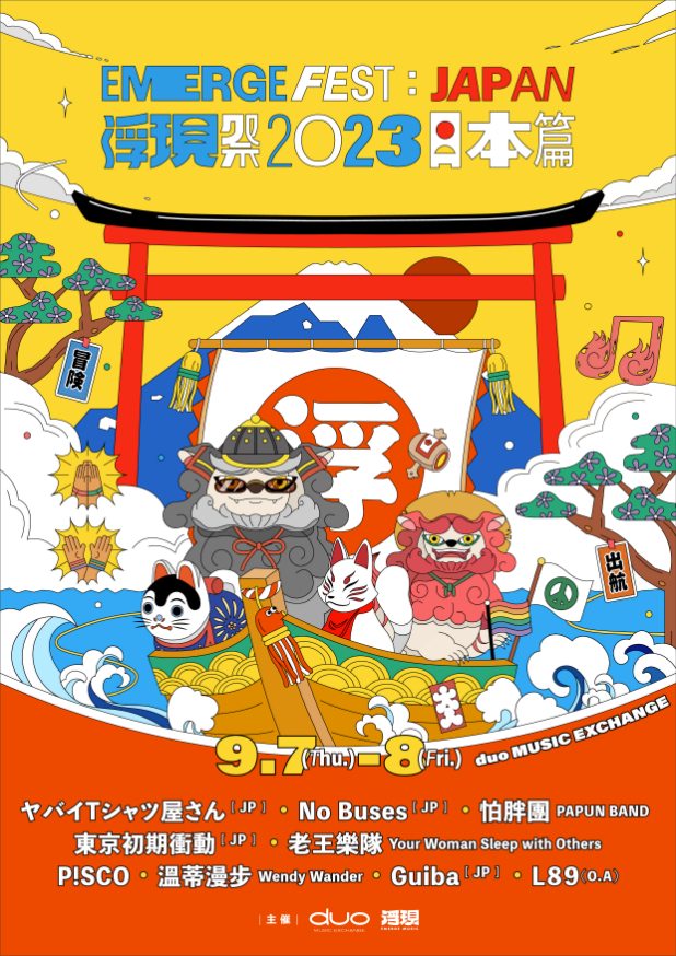 今回は、日本からヤバイTシャツ屋さん、東京初期衝動、No Buses、Guibaが参加。台湾からは、怕胖團(PAPUN BAND)、老王樂隊(Your Woman Sleep with Others)、P!SCO、溫蒂漫步(Wendy Wander)、L89(O.A from 荷爾蒙少年)が出演し、あわせて9組のアーティストがラインナップに名を連ねている。