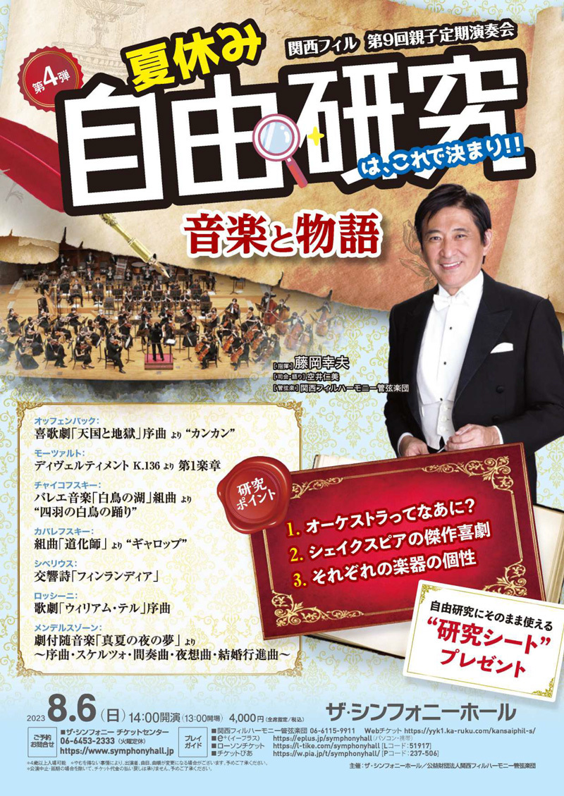 親子で楽しめますから、今までクラシックのコンサートに足を運ばなかった方も、夏休みの宿題と言って、子どもと一緒に、ザ・シンフォニーホールというゴージャスな空間に来て、生のオーケストラを体感してほしいと思います。もちろん、クラシック音楽がお好きな方には一層楽しんでいただけると思います。