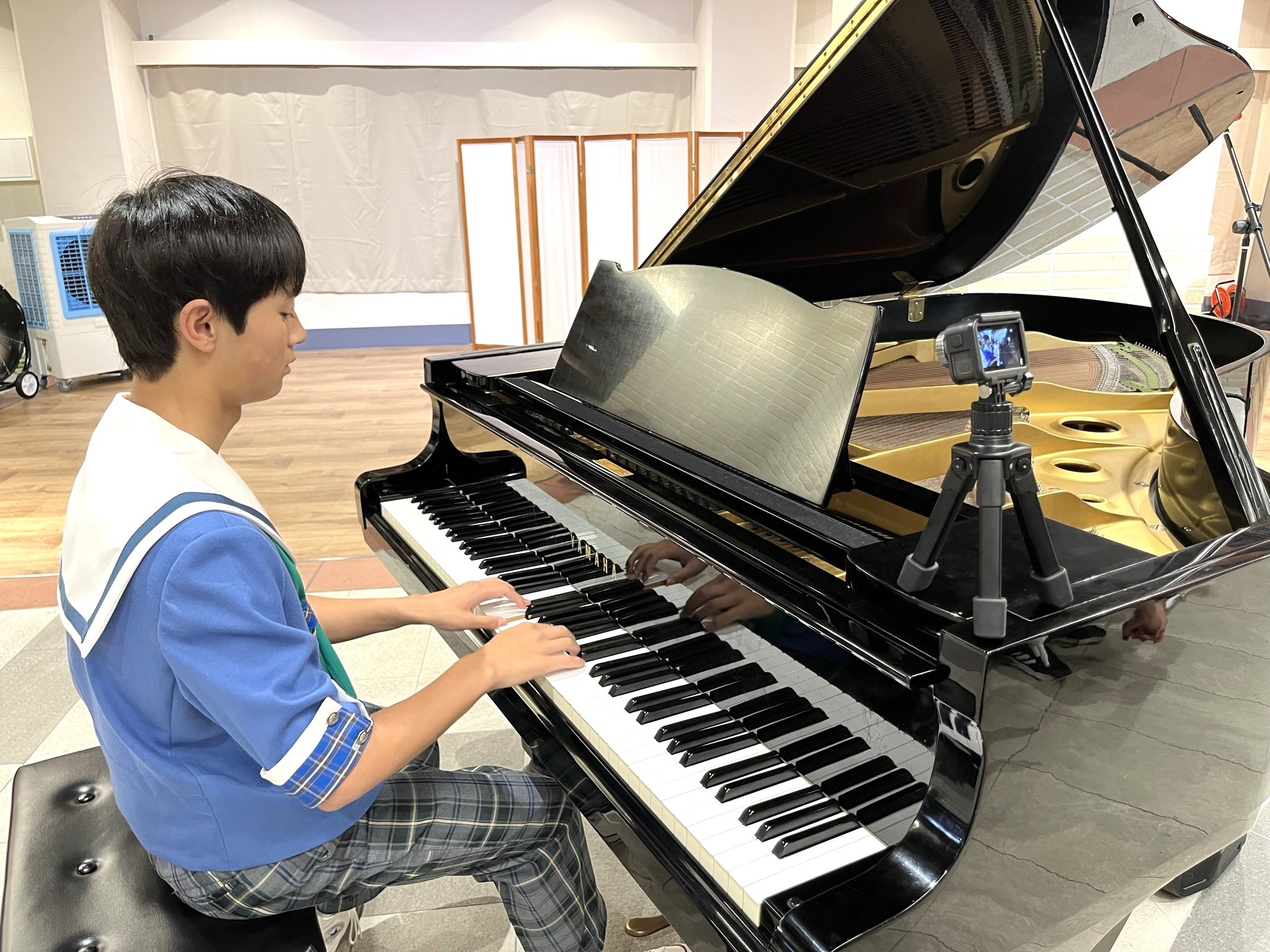絶対音感を持ち、ピアノを特技とする15歳の細見奏仁は、設置されているグランドピアノを演奏し、開演までの時間も集まった人々を楽しませてくれた。その軽快で楽しい音色にひきつけられてどんどんお客さんが集まってくる。