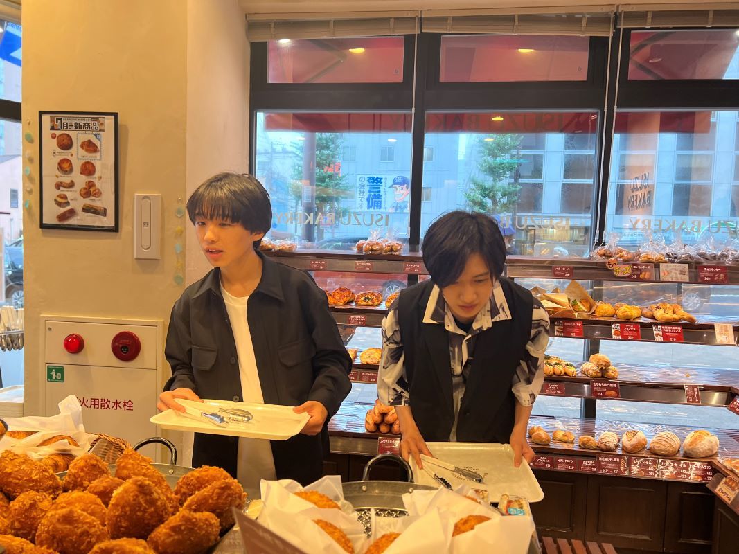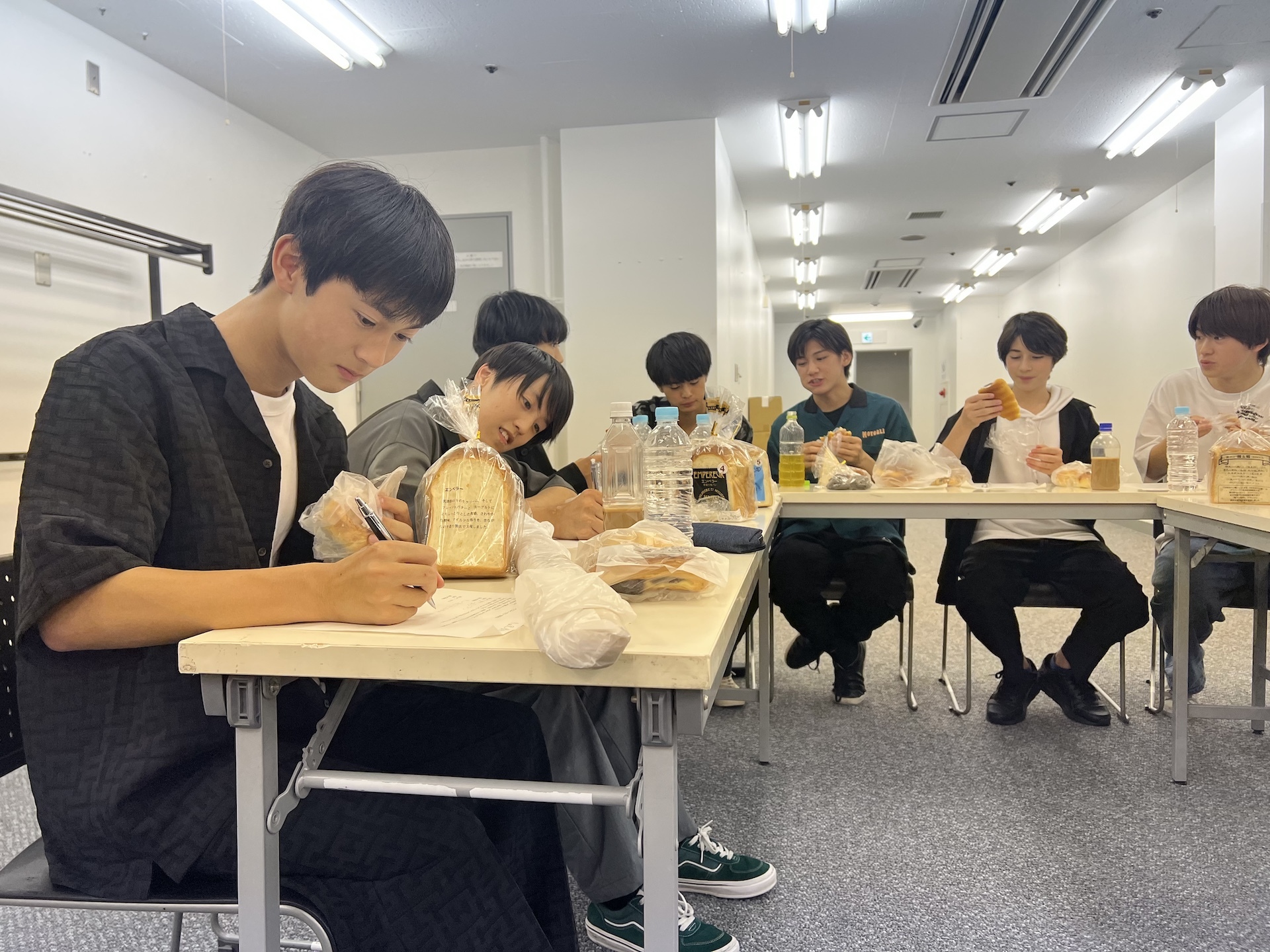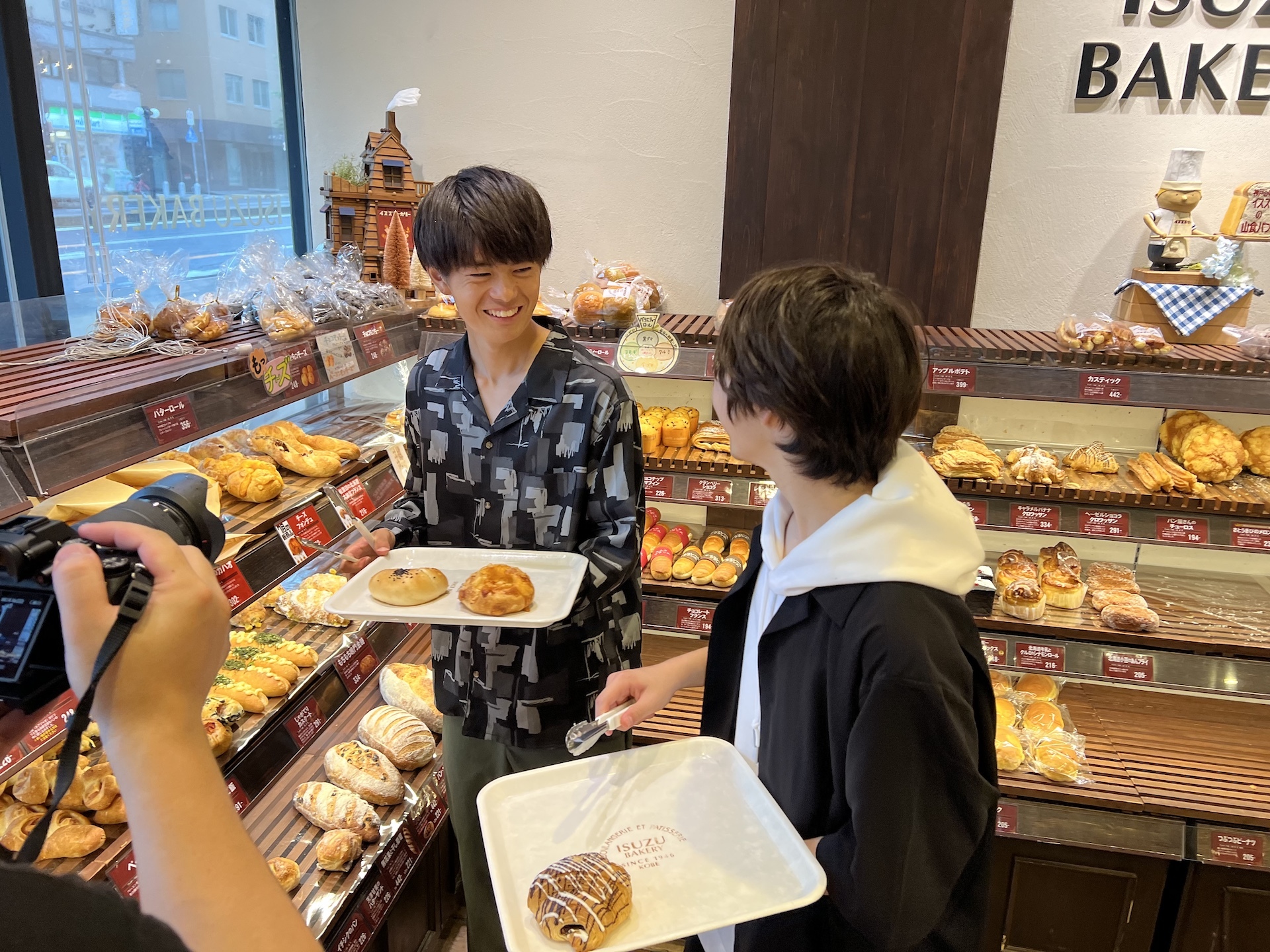 その中でもみんなから注目を集めていたのは、細見奏仁が選んだ超ロングなフランスパン、トレロン。細見が全長約70cmのパンを掲げると「長っ!」、「中には何が入ってるん?」とみんなも興味津々。「見た瞬間、存在感に惹かれて買いました。弾力がある生地と中に入っているジューシーな粗挽きソーセージがマッチしていて最高!」と見た目のインパクトはもちろん、味にも大満足していた。