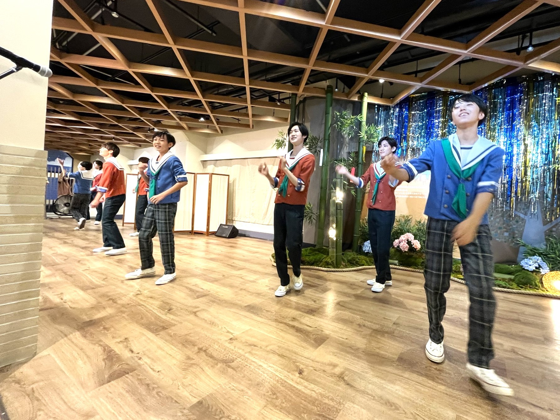グループのまとめ役である中川月碧が「神戸セーラーボーイズです! 僕たちは、芝居や合唱などいろんなことにチャレンジしています!」と挨拶し、塚木芭琉が新作公演をアピールすると10人それぞれの自己紹介がスタート。