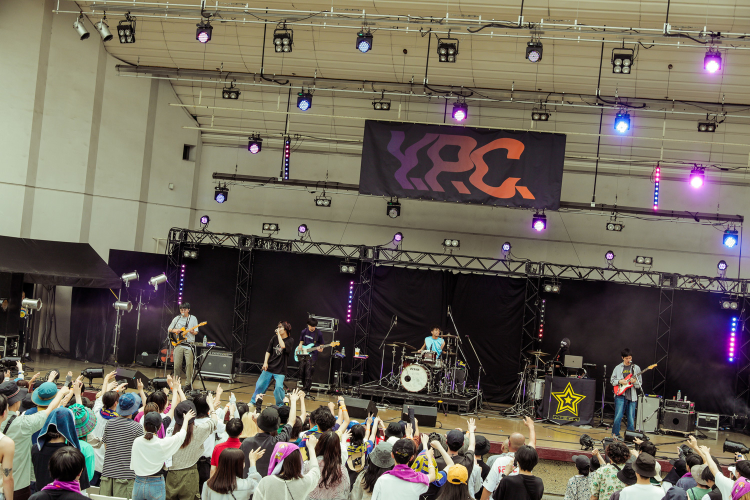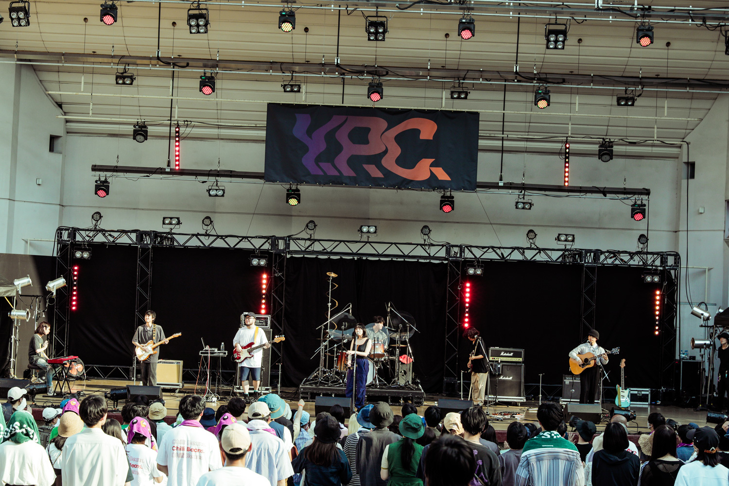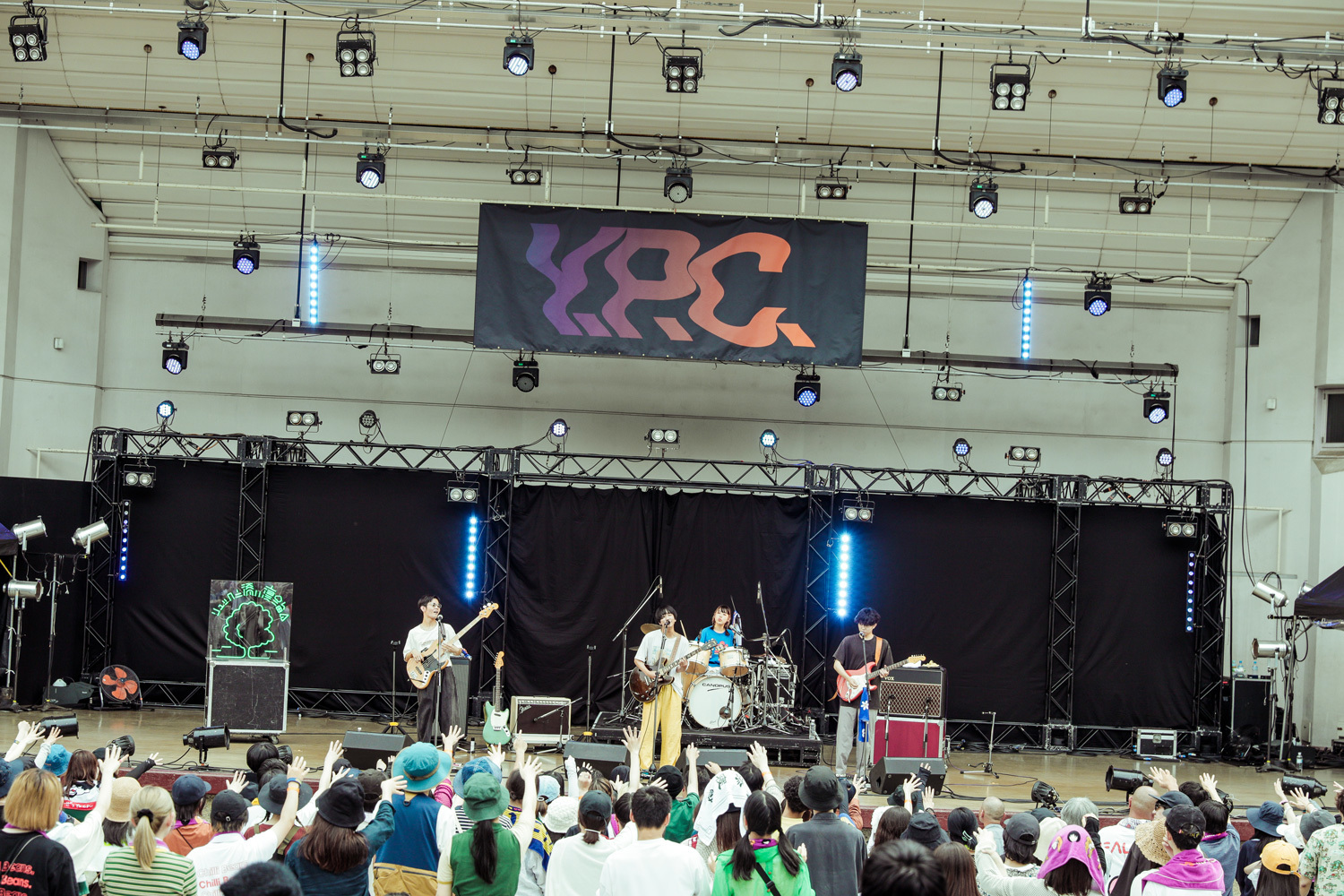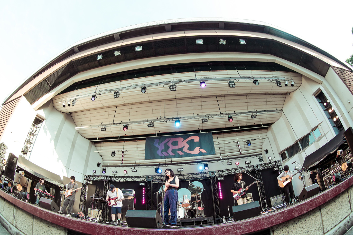 「sweet vertigo」では低音サウンドに絡みつくウィスパーボイスで湿度を感じさせたり、疾走感たっぷりの「lookback&kick」をポップにプレイ、スローテンポな「wake up call」でアンニュイに空気を揺らがせたり、曲によって様々な表情を見せる。特に3本のギターの存在感は光っていて、それぞれ奏でるフレーズが絶妙なバランスで成り立ち、楽曲に奥深さを生み出していた。MCでは井上が観客の体調を気遣いつつ「『YPC』とっても良いイベントだからほんとにすごく楽しみにしてて」と話す。後半パートも「winona rider」「waltz」と良曲を連発。楽器隊の演奏の妙も際立つ。最後は「happyend」で豊穣なサウンドを存分に響かせてライブを終えた。切なく良質なメロディライン、井上の柔らかく繊細な歌声で耳も心も潤った35分だった。
