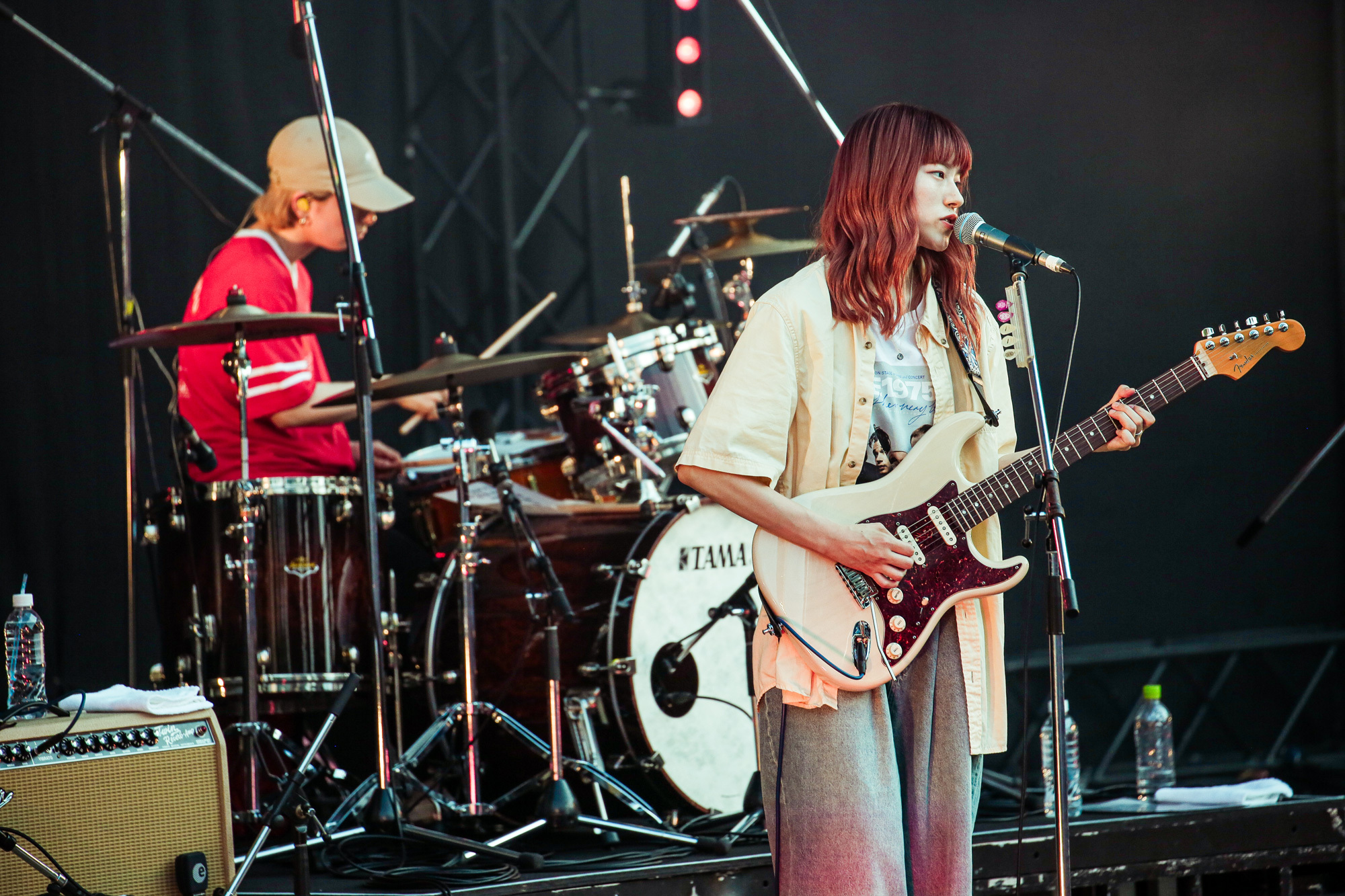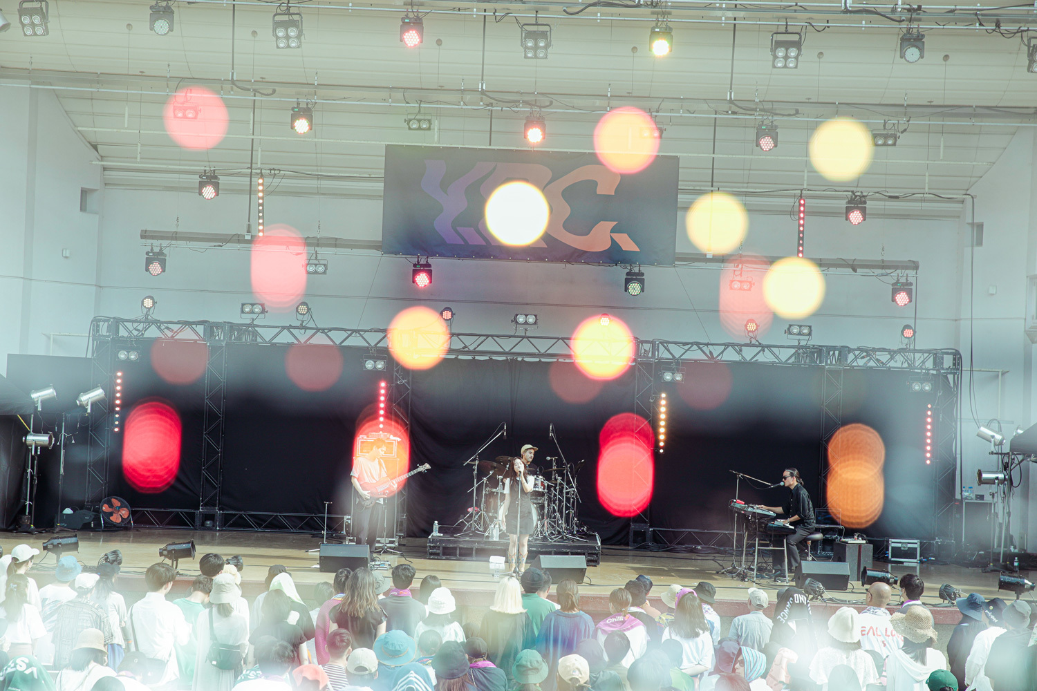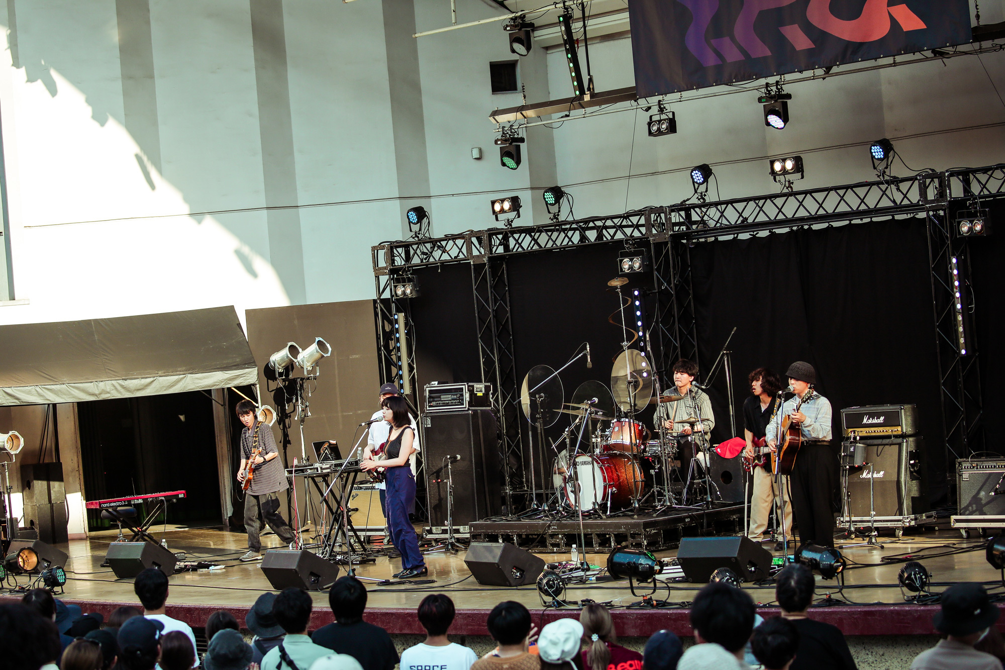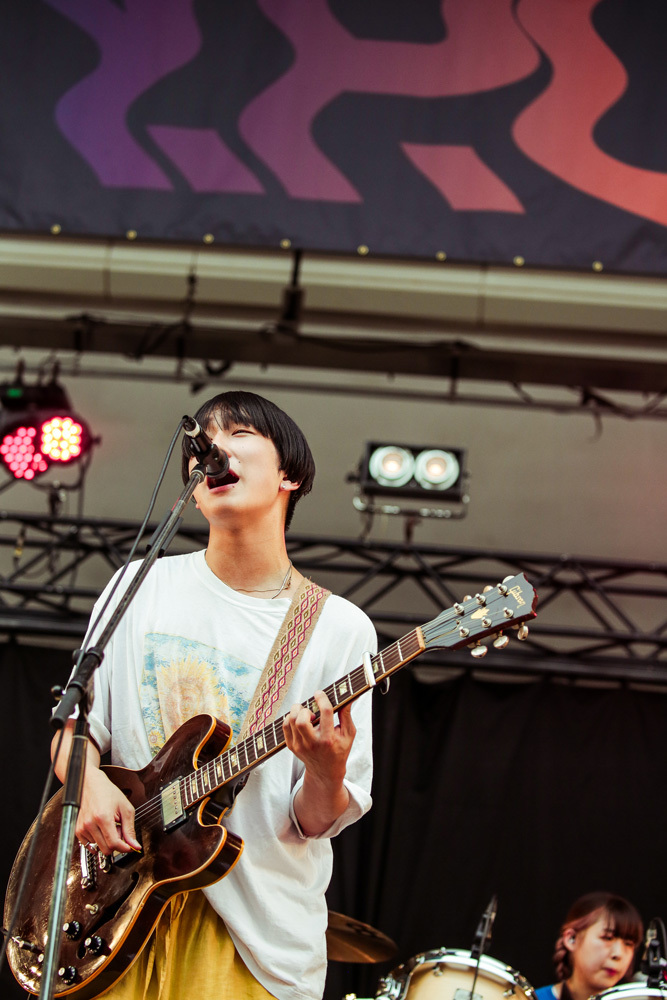 「sweet vertigo」では低音サウンドに絡みつくウィスパーボイスで湿度を感じさせたり、疾走感たっぷりの「lookback&kick」をポップにプレイ、スローテンポな「wake up call」でアンニュイに空気を揺らがせたり、曲によって様々な表情を見せる。特に3本のギターの存在感は光っていて、それぞれ奏でるフレーズが絶妙なバランスで成り立ち、楽曲に奥深さを生み出していた。MCでは井上が観客の体調を気遣いつつ「『YPC』とっても良いイベントだからほんとにすごく楽しみにしてて」と話す。後半パートも「winona rider」「waltz」と良曲を連発。楽器隊の演奏の妙も際立つ。最後は「happyend」で豊穣なサウンドを存分に響かせてライブを終えた。切なく良質なメロディライン、井上の柔らかく繊細な歌声で耳も心も潤った35分だった。