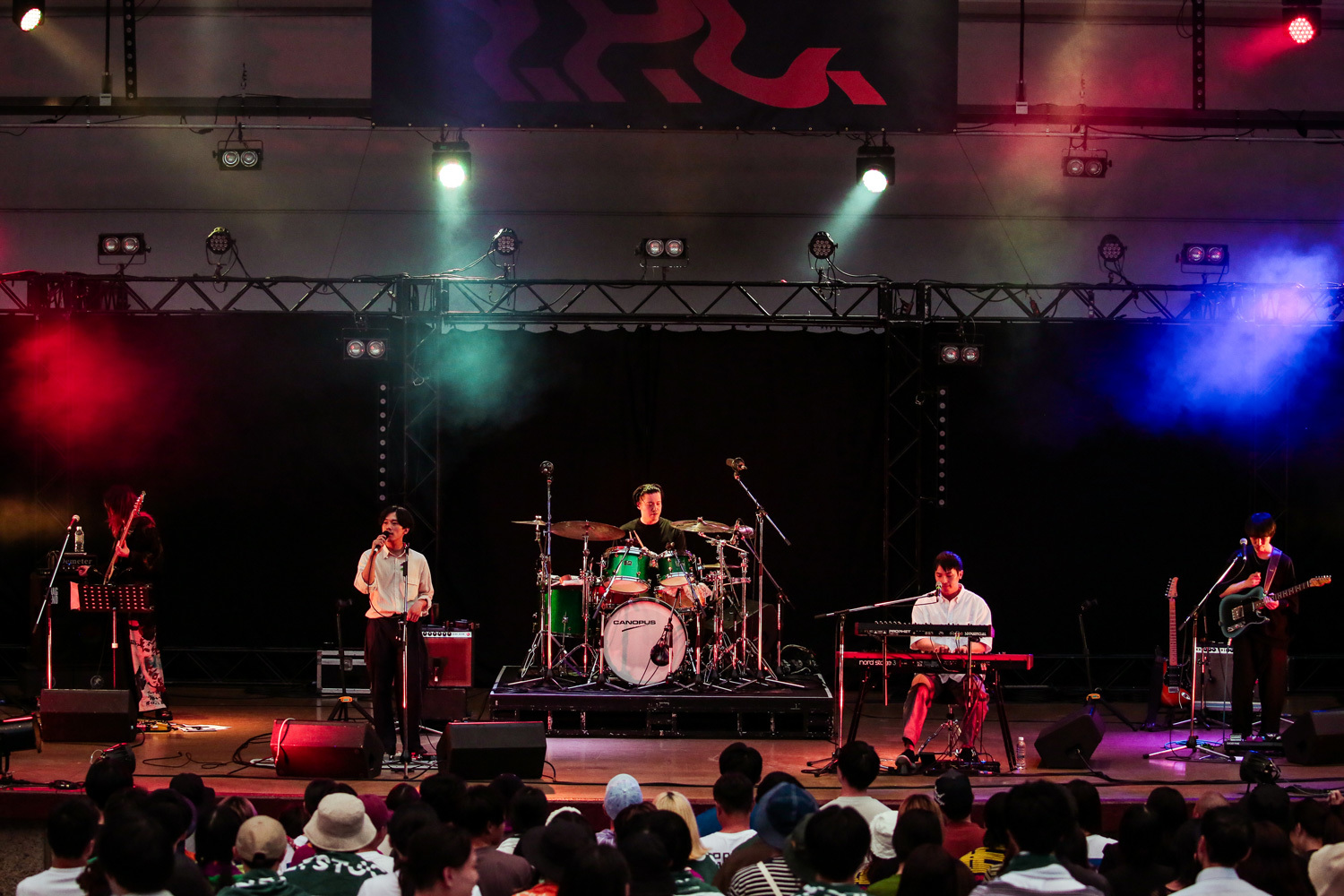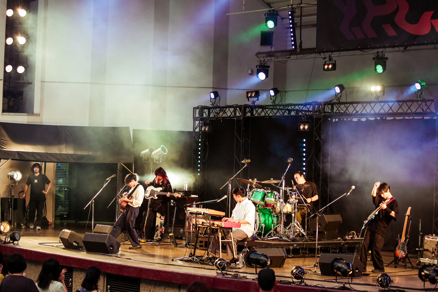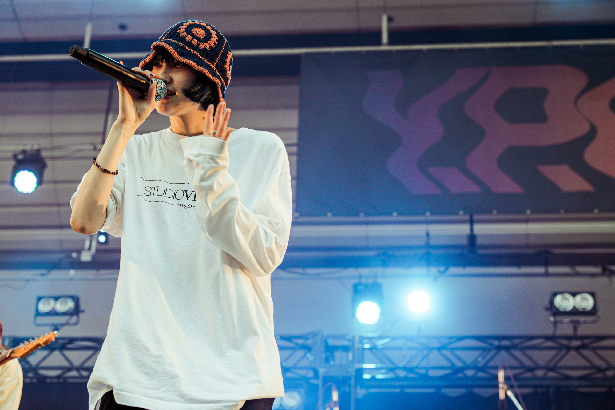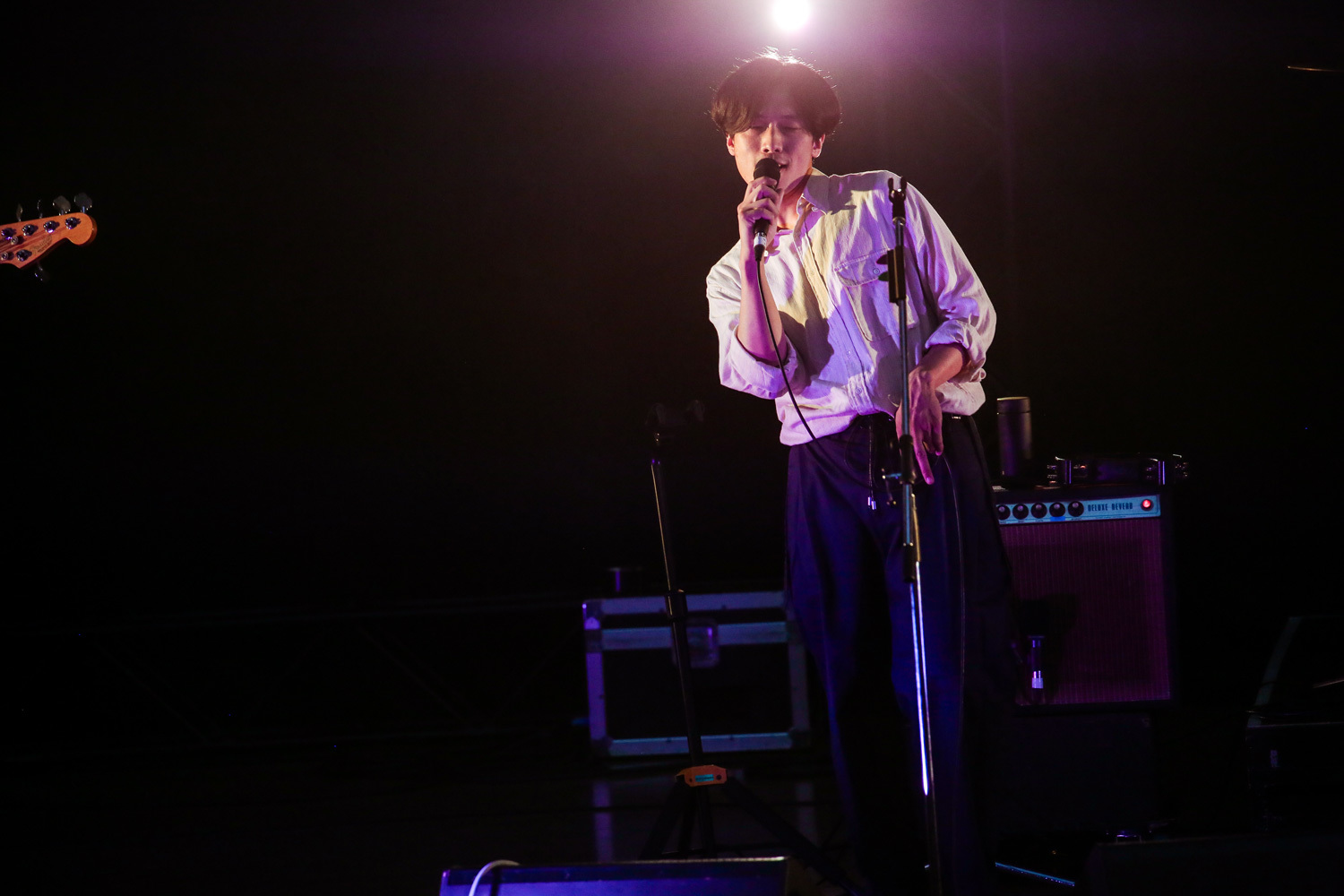 「sweet vertigo」では低音サウンドに絡みつくウィスパーボイスで湿度を感じさせたり、疾走感たっぷりの「lookback&kick」をポップにプレイ、スローテンポな「wake up call」でアンニュイに空気を揺らがせたり、曲によって様々な表情を見せる。特に3本のギターの存在感は光っていて、それぞれ奏でるフレーズが絶妙なバランスで成り立ち、楽曲に奥深さを生み出していた。MCでは井上が観客の体調を気遣いつつ「『YPC』とっても良いイベントだからほんとにすごく楽しみにしてて」と話す。後半パートも「winona rider」「waltz」と良曲を連発。楽器隊の演奏の妙も際立つ。最後は「happyend」で豊穣なサウンドを存分に響かせてライブを終えた。切なく良質なメロディライン、井上の柔らかく繊細な歌声で耳も心も潤った35分だった。