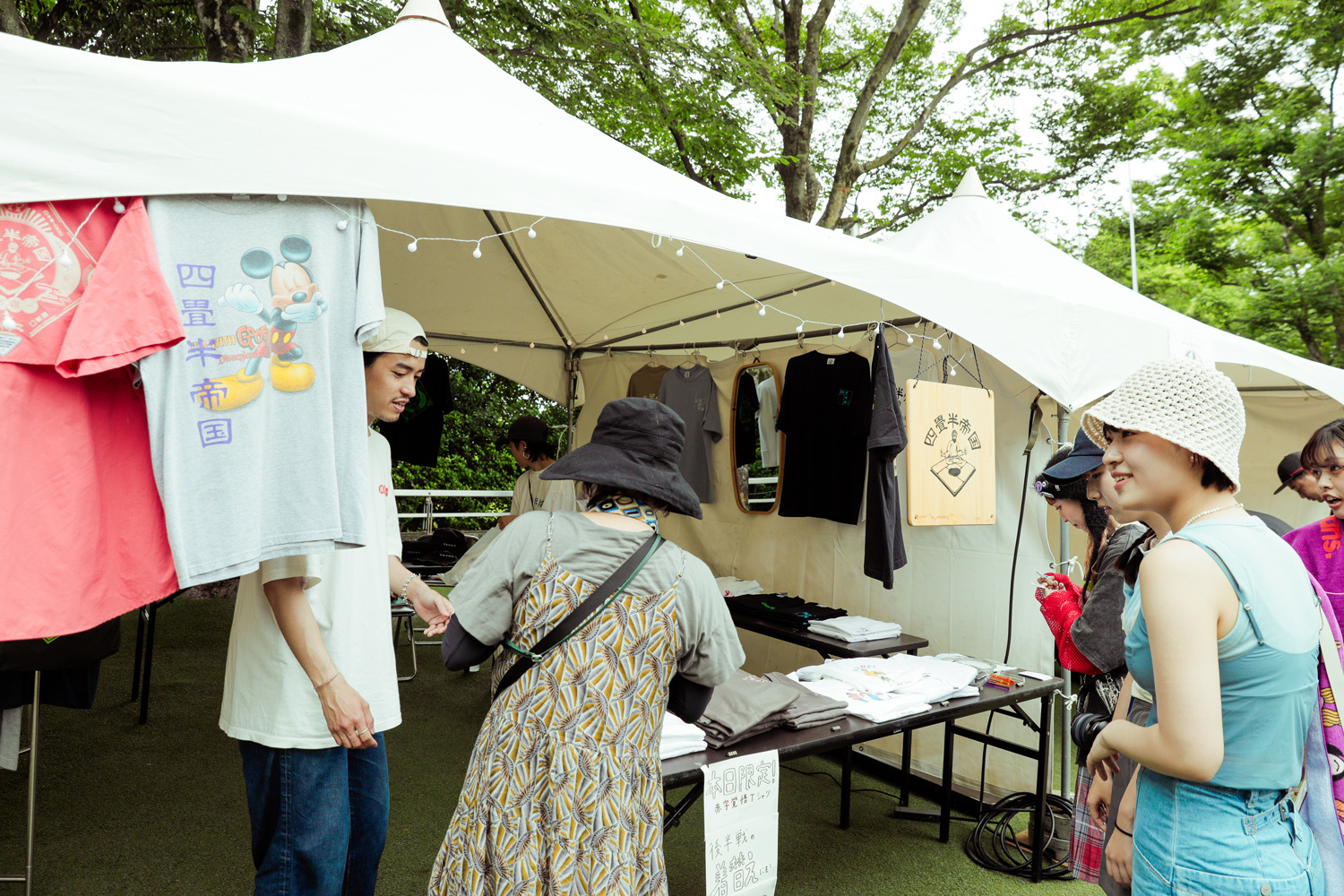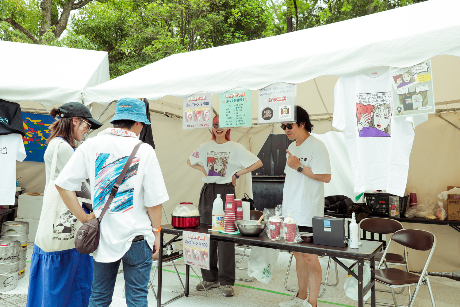 また、前日開催の『OSAKA NIGHT PARADE 〜SPECIAL〜』 に続いて、ANOTHER TABLE.LLCのキッチンカーではハンバーガーなどを提供、四畳半帝国はリメイク古着を販売。また、HOLIDAY! RECORDSも出展してCDやグッズが販売されて賑わいをみせていた。