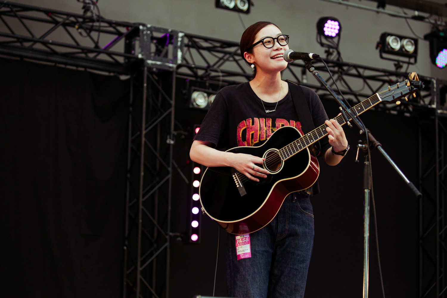 7月12日リリースの新曲「天使のキス」も披露。ラスト「夏の僕にも」の前には、去年の『YPC』出演時はバンド編成で、その日の経験が糧となりバンドへのモチベーションが上がったことを明かしていた。そして今日、弾き語りで出演できたことへの喜びと感謝も。終演後、すぐに物販に立つみらんの元には、特別に先行販売された「天使のキス」レコードなどを求めて列ができていて、そんな光景に胸が熱くなった。この日の『YPC』もまた彼女にとって特別な日となり、大きなステージでも十二分に弾き語りで戦える自信となったはず。なによりその瞬間を共に過ごすことができた観客にとっても特別な日曜日になったにちがいない。