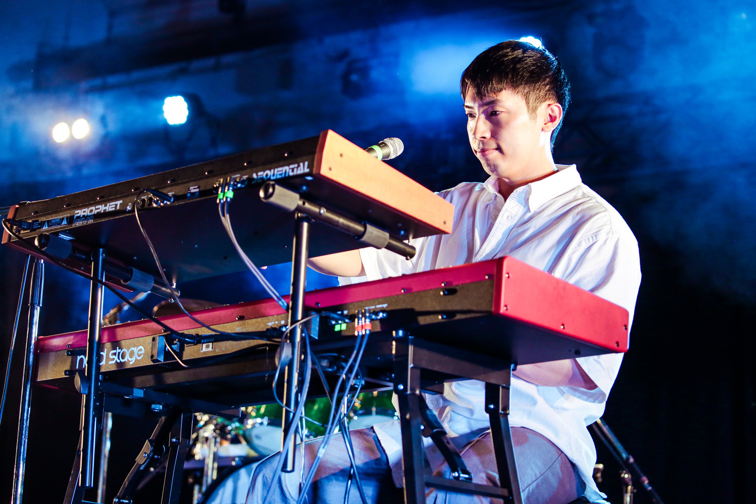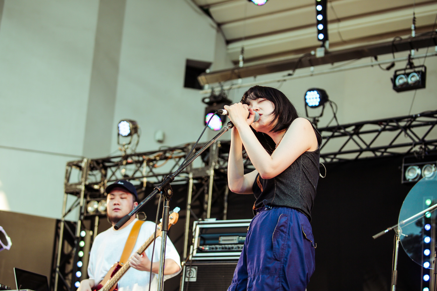 続く「Lovely」では、透明感と憂いの混ざった美しい歌声が高く高く空に昇ってゆく。新曲「Frozen」に続き、7月5日にリリースされる2nd EP「1414」の先行シングル「SENA」を披露。この曲はHaruy自身が作詞作曲を手掛けたラブソング。これまでで1番のソプラノボイスが空に溶ける。楽器隊のソロも最高に気持ち良く、Haruyも楽しそうにロングヘアを揺らして踊っていた。SuchmosのHSUこと小杉隼太が彼女のために書き下ろした「Swimmer」をグルーヴィに披露した後、澤村と市川がステージを去り、最後はTAIHEIと2人で向き合って「Landscape」を奏でる。突き抜ける歌声と包容力のあるピアノの音からは癒しの力を感じる。最後の1音まで優しく丁寧に演奏してステージを去ったHaruy。ライブハウスも似合うが、温かな日が射す野外の舞台もよく似合っていた。