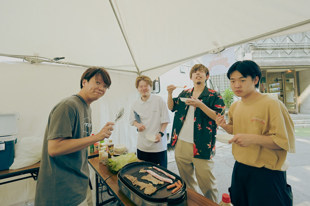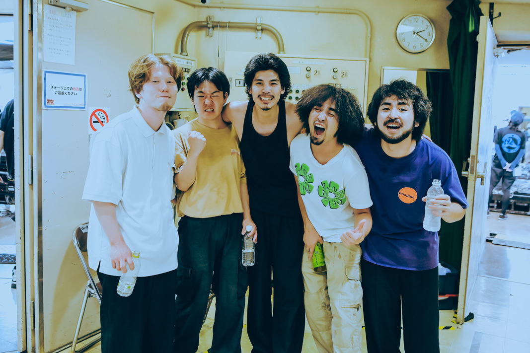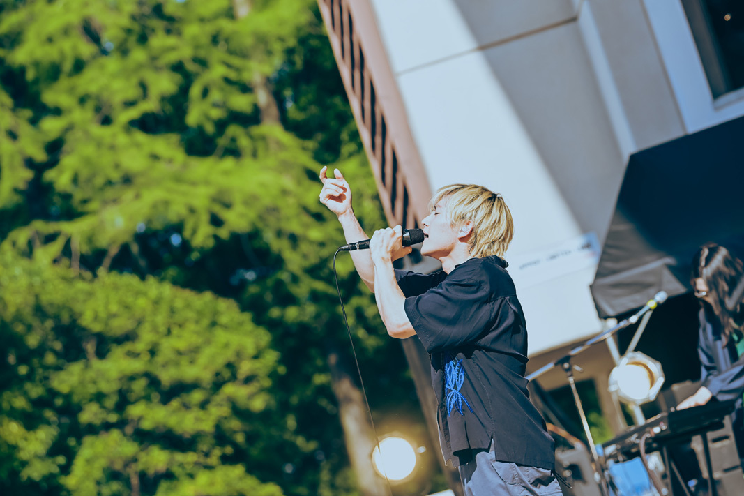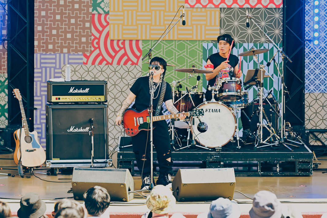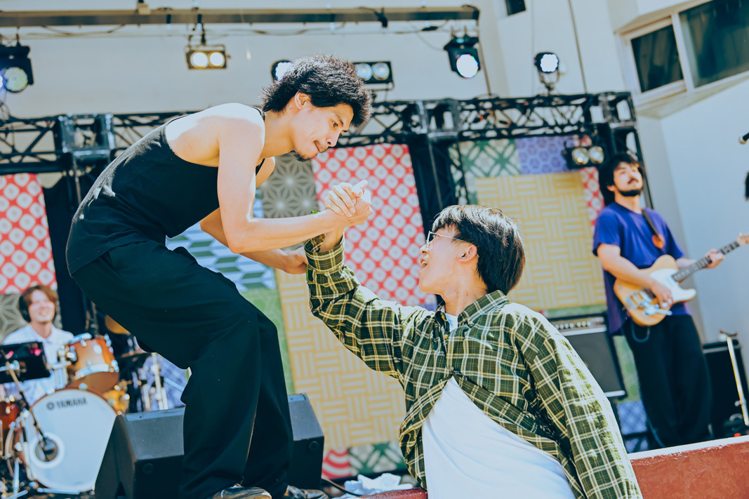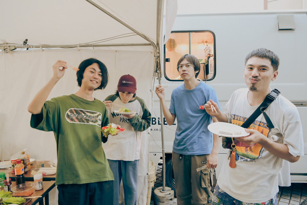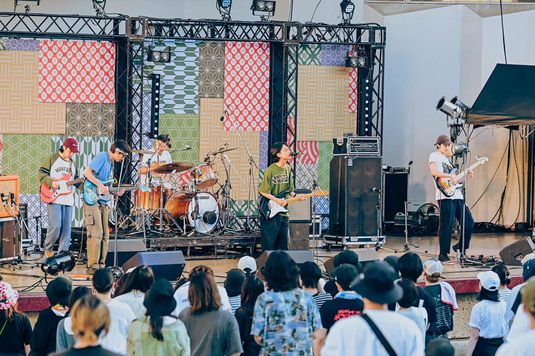 メンバー紹介を挟み、音を止めずに「母船」へ。心がざわざわする詞世界に浮遊感のあるサウンド。斜陽がステージを照らす様子もドラマチックだ。特に「異星人」、「羽」、ラストの「卵」の流れは本当にエモーショナル。柳瀬のがなり、叫ぶ、命を燃やすボーカル、静と動のコントラストが強い演奏、圧巻の表現力に飲み込まれる。生ぬるい夏の空気を震わせた轟音と緊張感は甘美だったと言えよう。ライブを終えたメンバーは、三々五々違う方向に掃けていった。間違いなく、会場にいた全員の記憶に残るライブ。いつまでも鳴り止まぬ拍手と歓声がそのことを証明していた。
