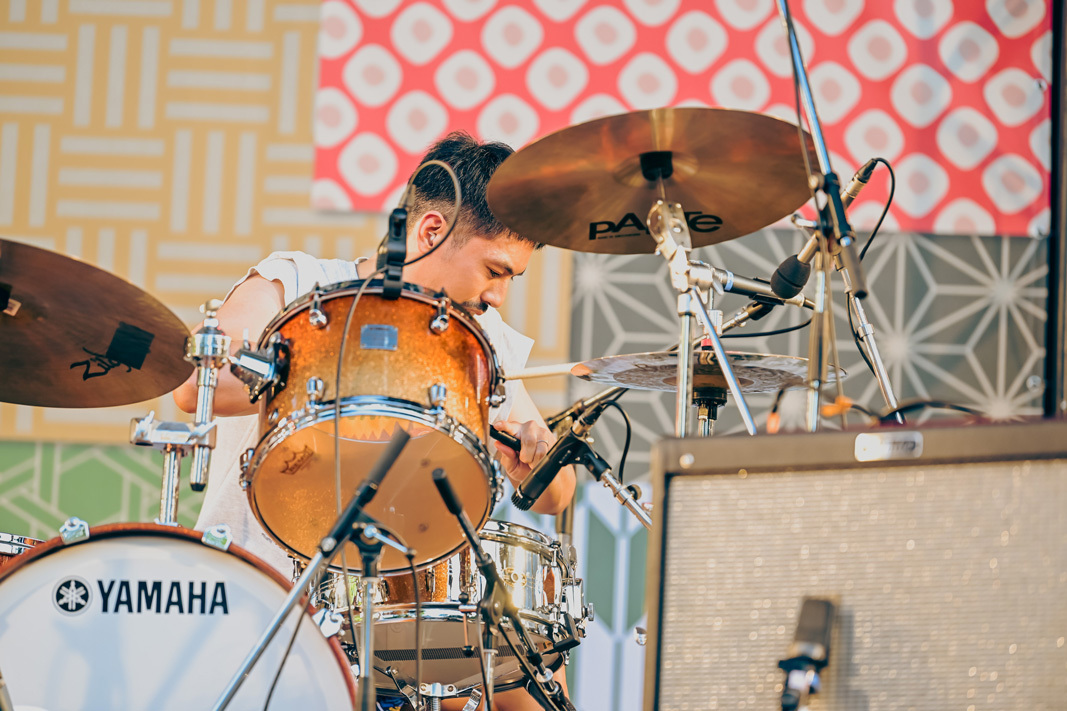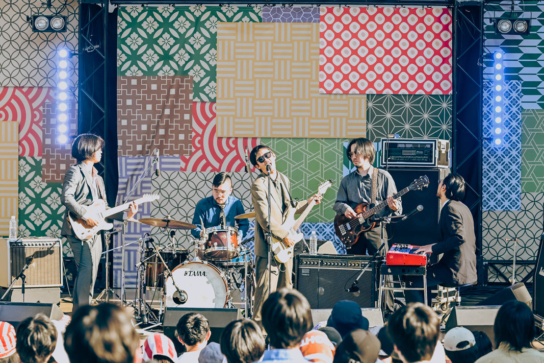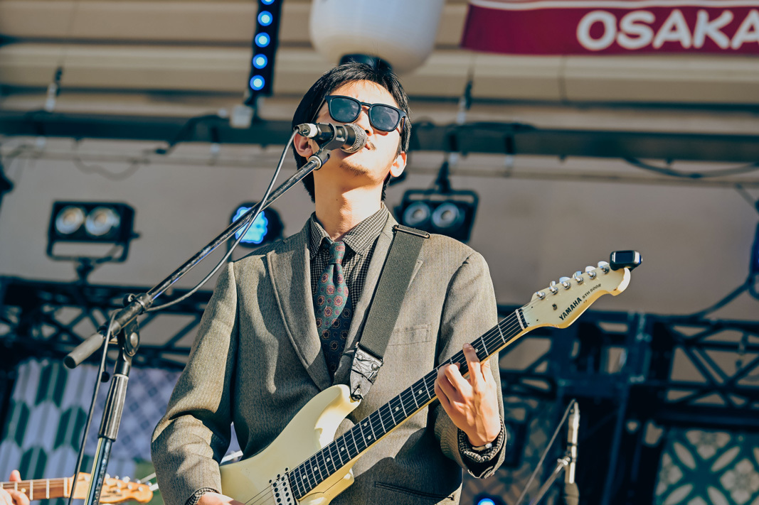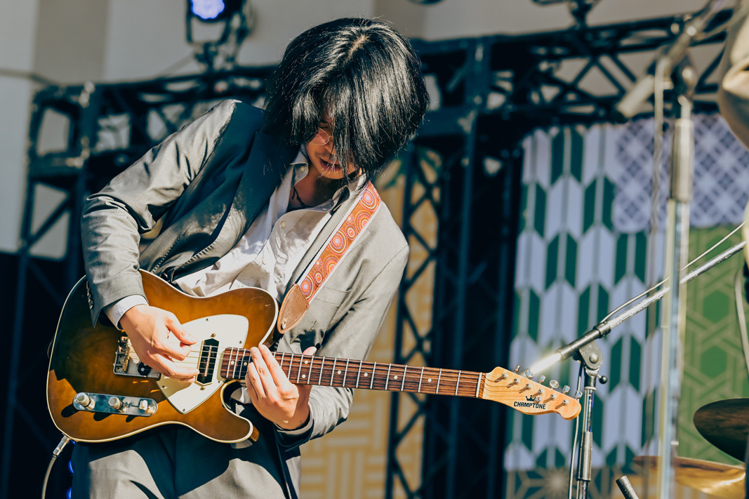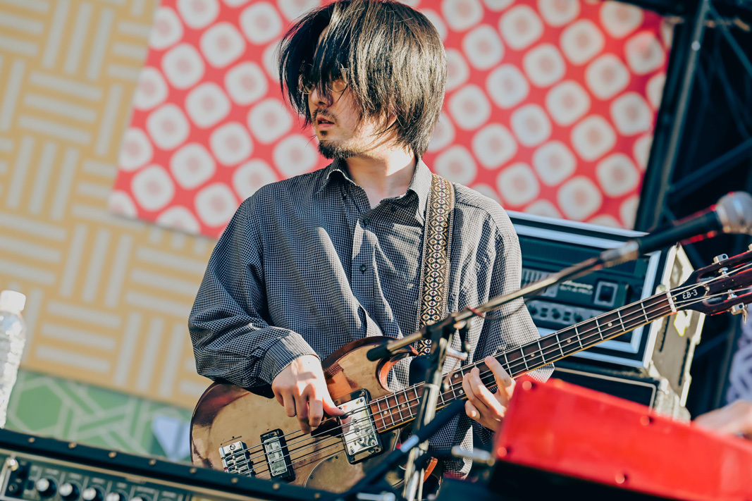 MCでは最近大阪に来る機会が多く嬉しいと話し、「野音でのライブに少しずつ幸福感を覚えています」と話す。新曲の「Acervation」はシンプルな印象ながら実験的な要素も感じられる楽曲。ふわふわと浮かぶようなロングセッションが没入感を誘う。「人生は巡り巡ってゆくという歌」と紹介された「The Rhythm of the World」に続いては、加地洋太朗(Ba)のグルーヴィなベース、歪みギターが激しさを増した「Dazzling」でグッと熱量アップ。最後は最新アルバムから「I Wish I Could Feel」を披露。秋山の柔らかなギターループから始まり、浮遊感たっぷりのセッションパート、5人の勢いが乗った強靭なアンサンブルがただ気持ち良い。新旧織り交ぜたセットリストで会場を魅了したDYGLだった。