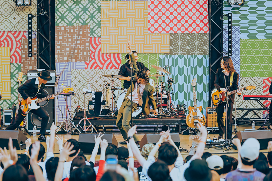 絶対に熱いライブを見せてくれる、という期待を裏切らないのが鋭児だ。御厨響一(Vo)は、気合い剥き出しで「大阪ー!」と咆哮しながらステージに登場。「皆立って立ってー!」と客席を総立ちにさせる。まずはゆったりとJAM SESSION。及川千春(Gt)、菅原寛人(Ba)、藤田聖史(Key)、市原太郎(Dr)のグルーヴィなサウンドが心地良い。御厨は伸びやかで揺らぎのあるボーカルを響かせて「今日は最高のパーティーになる確信があります」と力強く宣言し、ロングファルセットからまたも咆哮。<心がつながる瞬間、やっぱり俺は人が好きだ>とメロウに人間愛を歌い、<大阪会いたかったぜ!>のフリースタイルからシームレスに「突然変異」へ。