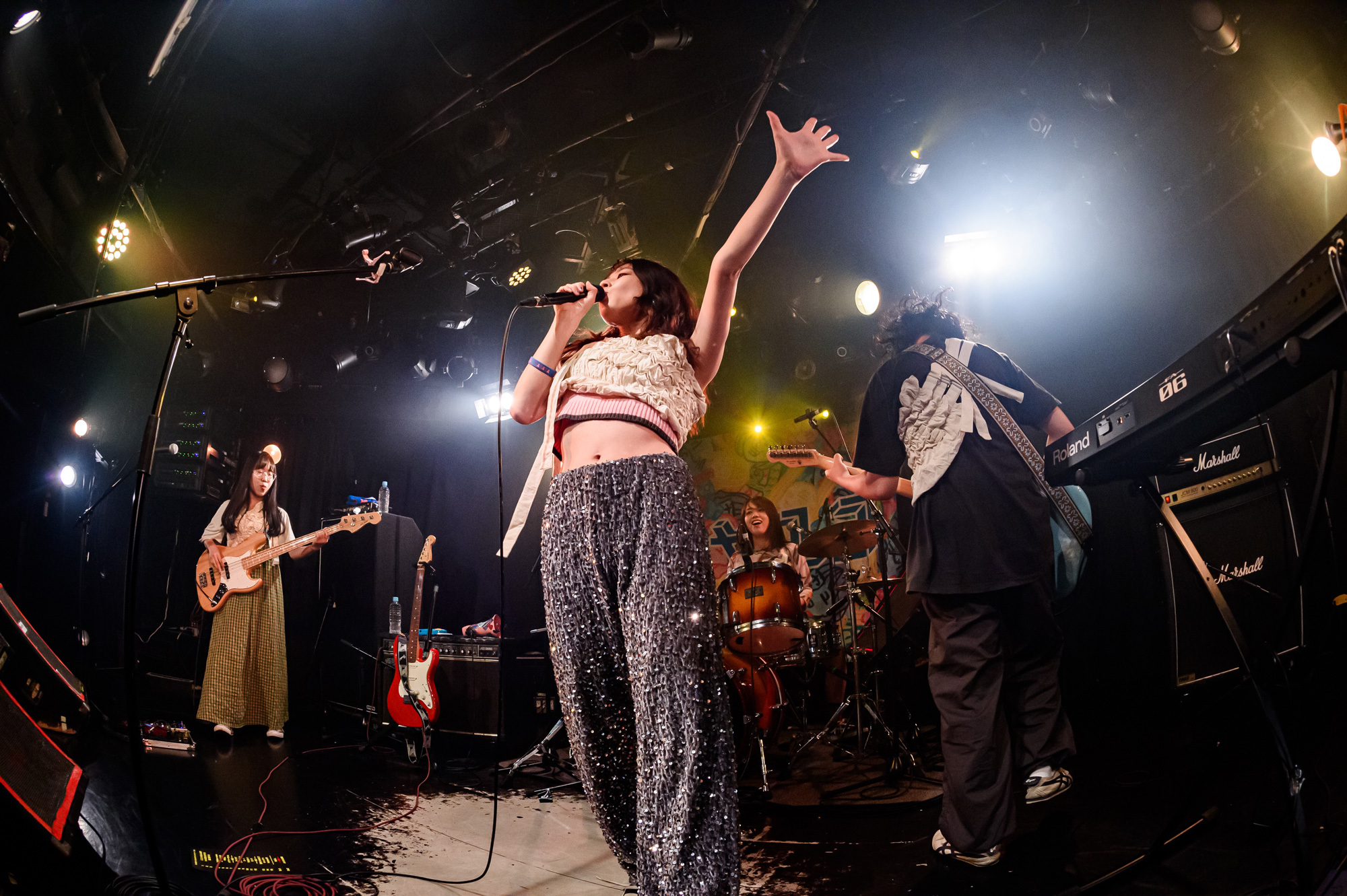 そして、「踊れますか?」(リコ)と披露した「Yellow wave」がフロアを揺らす。すーちゃん(Dr.Cho)が鳴らす跳ねるビートに合わせ、ハジけるような笑顔で演奏する4人の姿は、彼女達が掲げる「ジャンルに縛られずに音楽がしたい。日常を音にしたい。音楽は永遠に楽しい!」というモットーを、その言葉通りに表していたと思う。