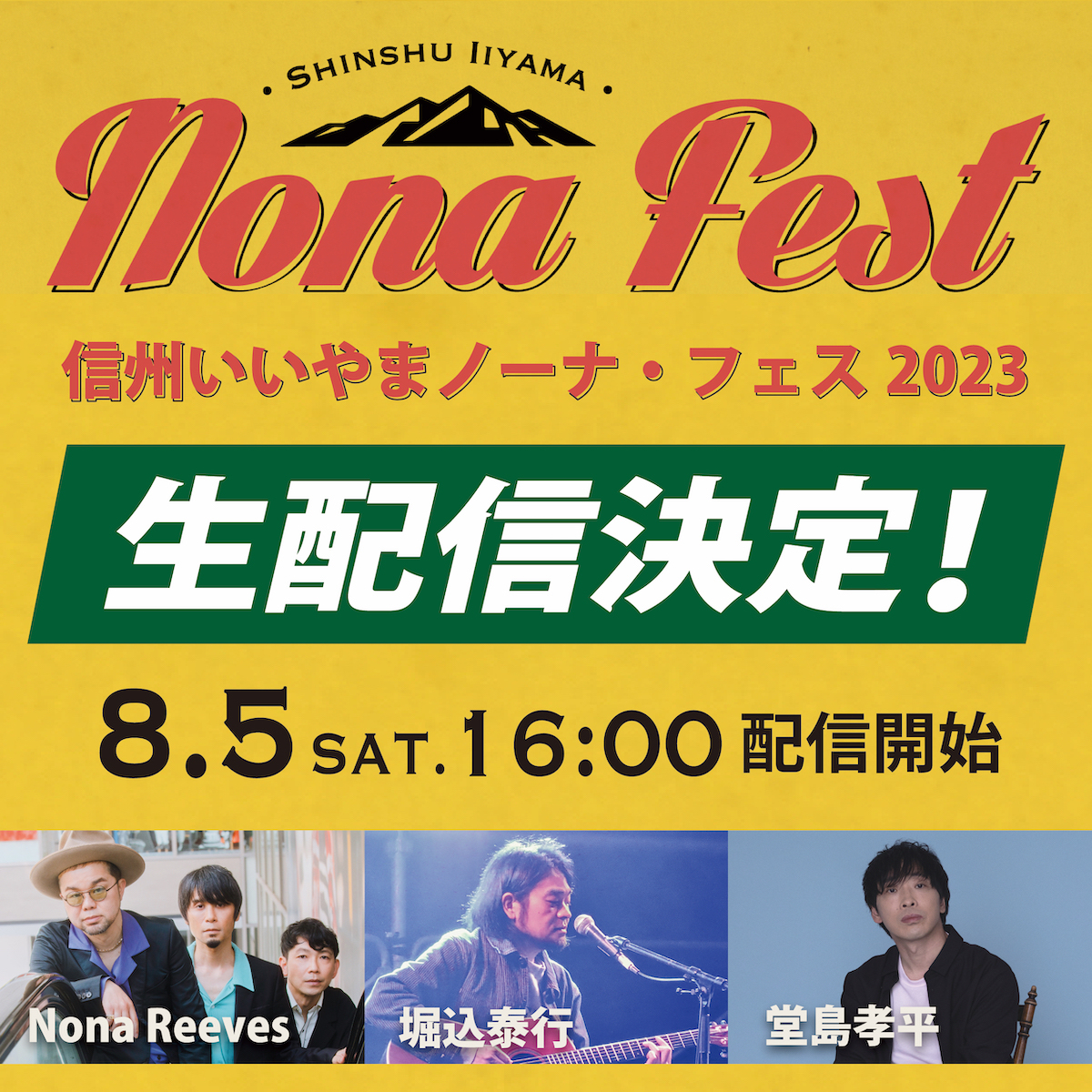 2019年から始まった『信州いいやまノーナ・フェス』は、NONA REEVESと彼らにゆかりのあるアーティストのLIVEとともに自然豊かな飯山市の魅力を発信する地元密着型の音楽フェス。4年ぶりの現地開催となるノーナ・フェスのライブの模様を余すところなく生配信する。