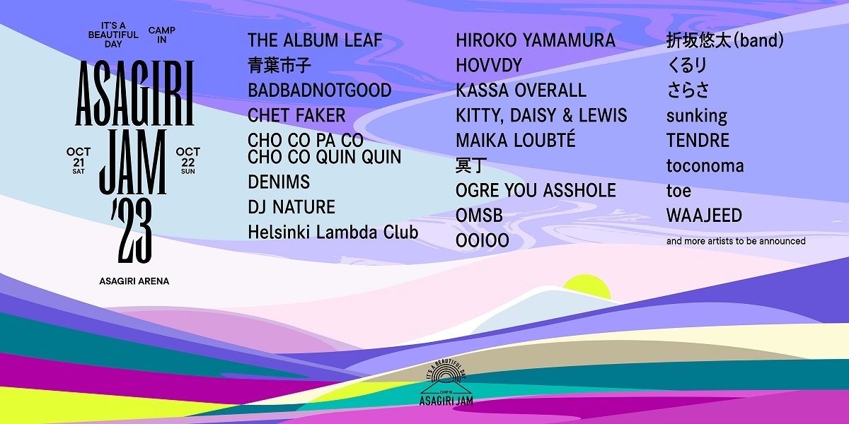 10月21・22日に富士山麓 朝霧アリーナ・ふもとっぱらにて開催される『It’s a beautiful day〜Camp in ASAGIRI JAM'23』(以下、朝霧JAM)のラインナップ第1弾が8月4日(金)18時にオフィシャルサイトにて発表された。