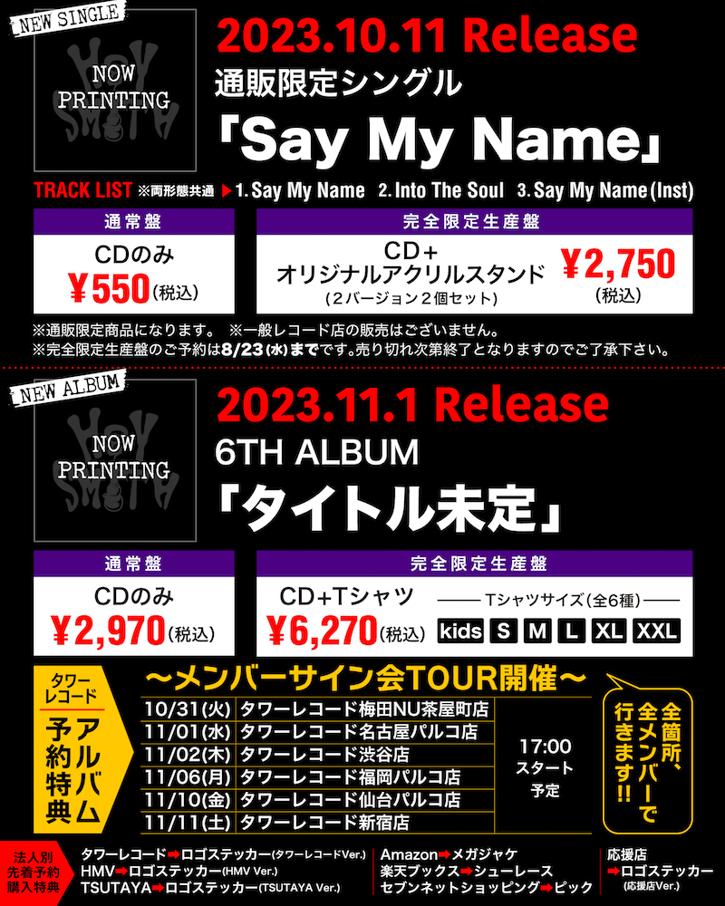 HEY-SMITHが10月11日にリリースする「Say My Name」は、通販限定で販売。CDに加え、アクリルスタンド(2バージョン2セット)が付属する限定盤も発売される。