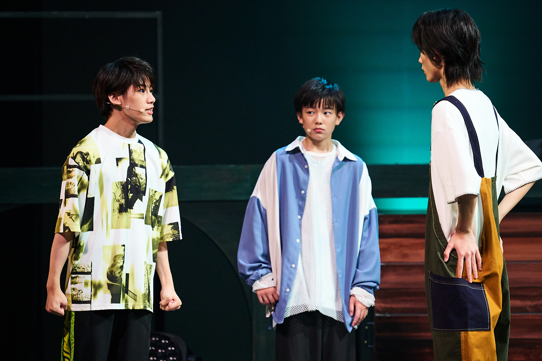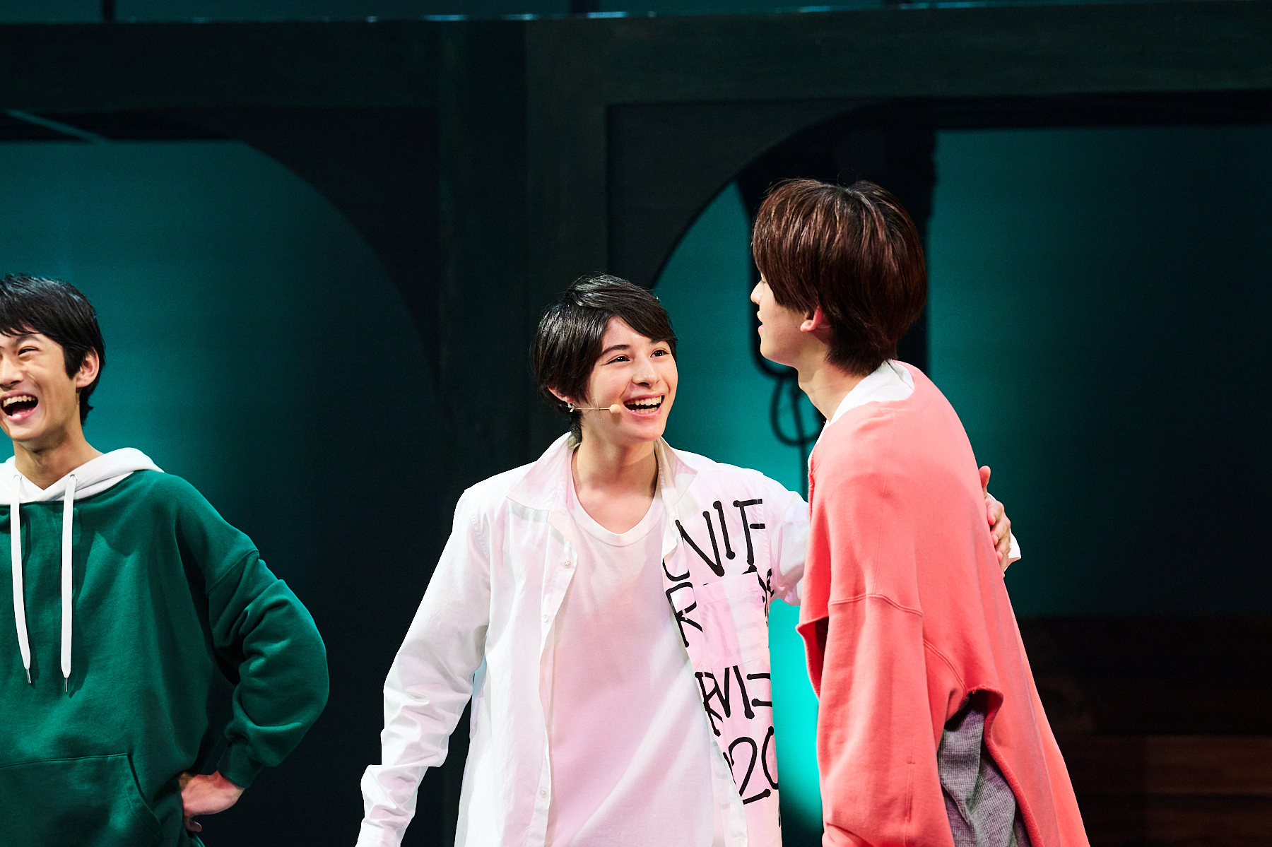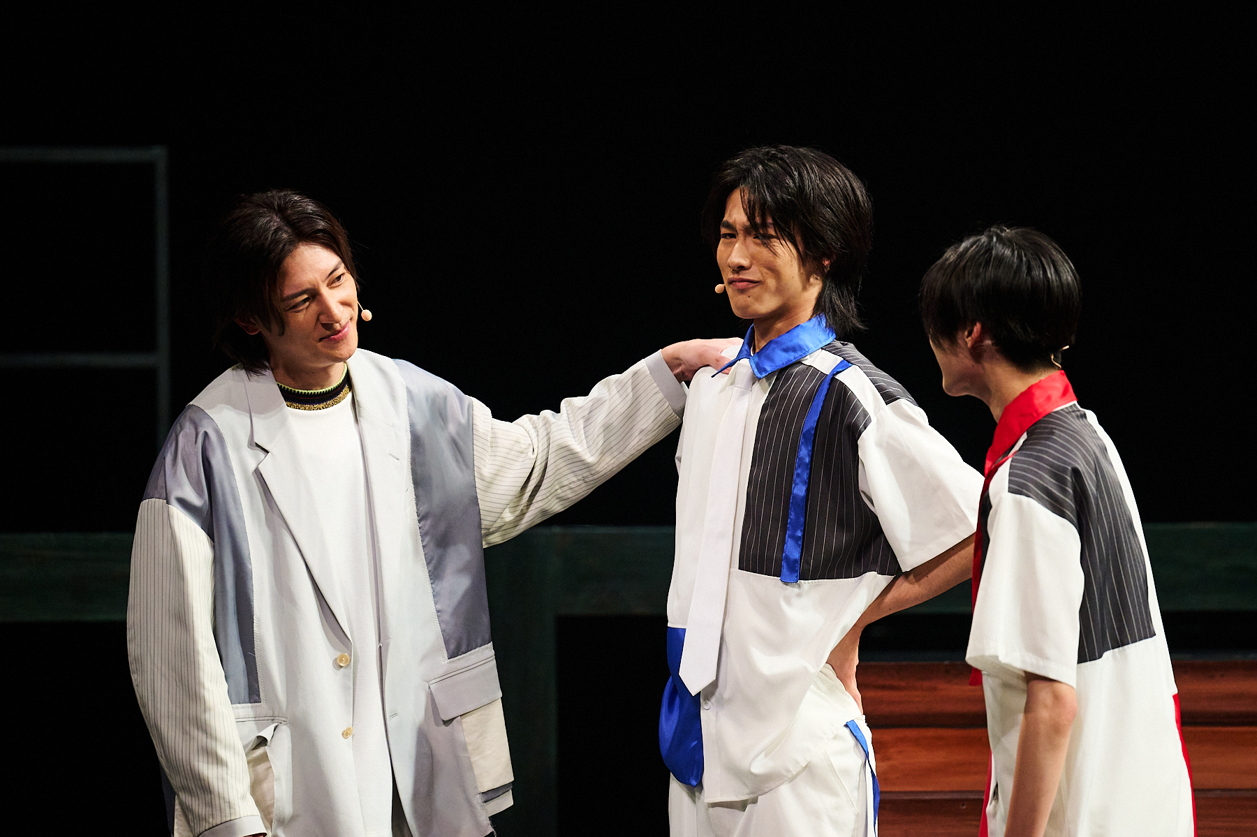 石原:舞台稽古でまだマイクをつけていない時に、声が向こうに届いているか、エネルギーが客席の方にちゃんと届いてるかを神里さんに教えてもらいました。最初の稽古で、芭琉くんと月碧くんと侑成くんと5人で話した時も色々相談させてもらいました。すごく優しく、親切に丁寧に教えてくださって。やっぱり尊敬するなと。