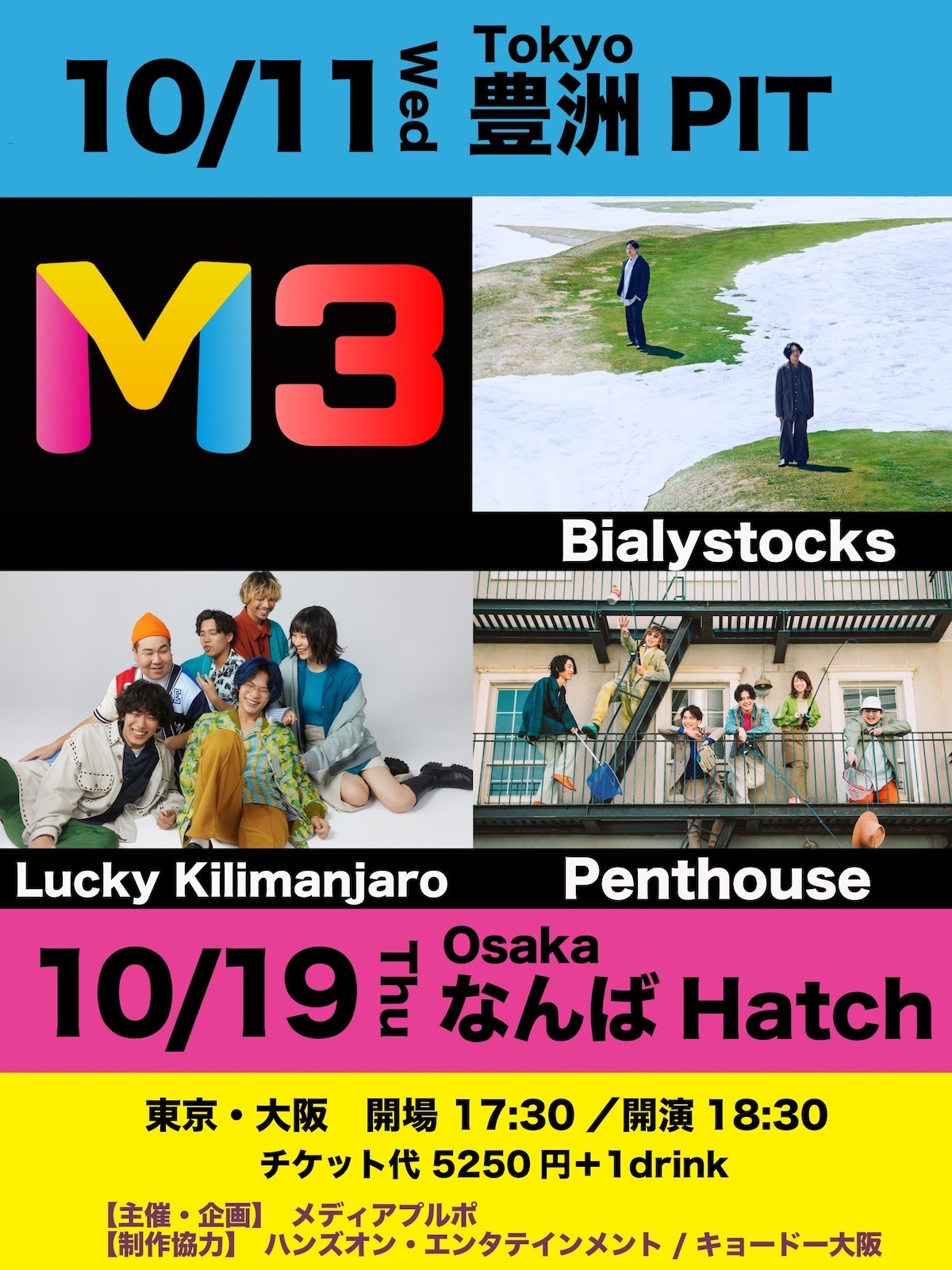 『M3』のテーマは“今観たい!ありそうでなかったスリーマンライブ!”。出演アーティストは、CMソングで話題のBialystocks、ソウルフルで都会的なサウンドで人気の6人組ツインリードボーカルバンド・Penthouse、“世界中の毎日をおどらせる”をテーマに掲げる6人組エレクトロポップバンド・Lucky Kilimanjaroといった3組。