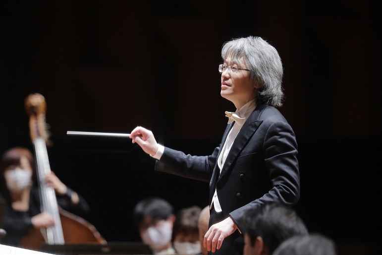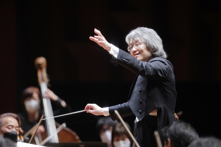 メンバーとは3度ご一緒して、随分と分かり合える関係になったと思います。楽団からの首席客演指揮者への就任要請は、嬉しかったです。関西フィルのバラエティに富んだ指揮者陣の一角に名前を連ねる事が出来て光栄です。私の古典を含めたレパートリーが加わる事で、今までにも増して魅力的なプログラムをお客様にお届けできればと思っています。音楽監督のデュメイさんとはお会いしたことは有りませんが、関西フィルの華やかな弦の響きは、彼の理想とする音が根付いているのでしょう。首席指揮者として、コロナ禍の間も楽団を牽引して来られた藤岡さんを、色々な面でサポートしていければと願っています。関西フィルから、大阪の皆様が元気になれる音楽を発信していければいいですね。