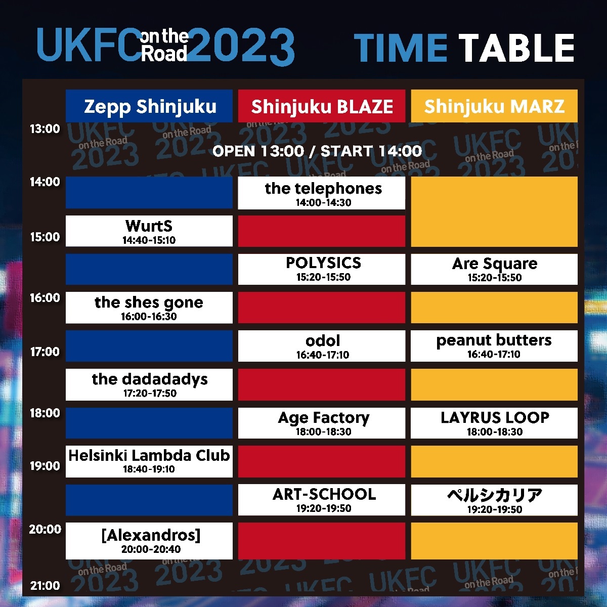 今回最終アーティストとして発表されたthe telephonesは、『UKFC』の最初期メンバーでもあり、新体制初ライブ初披露となる。そのthe telephonesからイベントがスタートする。そしてZepp Shinjukuと新宿BLAZEには、現在のUK.PROJECTを第一線で牽引するバンドが集結。新宿MARZでは新たな風を巻き起こす新世代アーティストが火花を散らす。そして大トリは、『UKFC』の歴史で数々の名場面を彩ってきた[Alexandros]が務める。