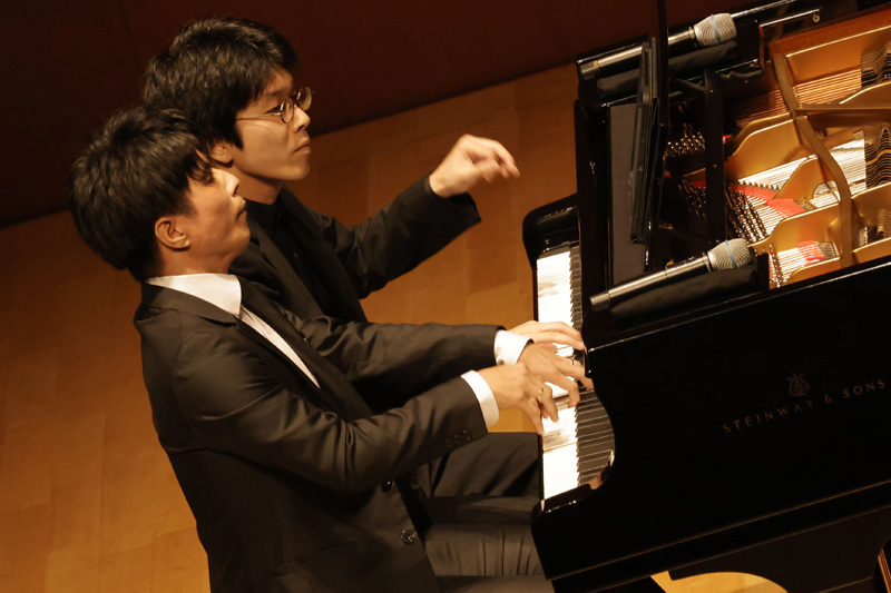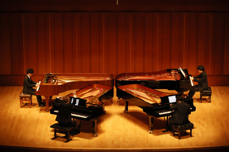 今回の演奏会では彼らならでは細やかな心づかいや趣向も投影されており、プログラム構成においても、それが顕著に感じられた。まずは一人ひとりの独奏を通しての個性的な自己紹介演奏に始まり、連弾→2台ピアノ→4台ピアノの流れを提案することで、オーディエンスにピアノという楽器の持つ音量的な迫力やその知られざる無限のダイナミズムを、作品を追うごとに段階的に体感し、身体が感じるままに高揚感を高めていって欲しいという思いがあったのだという。