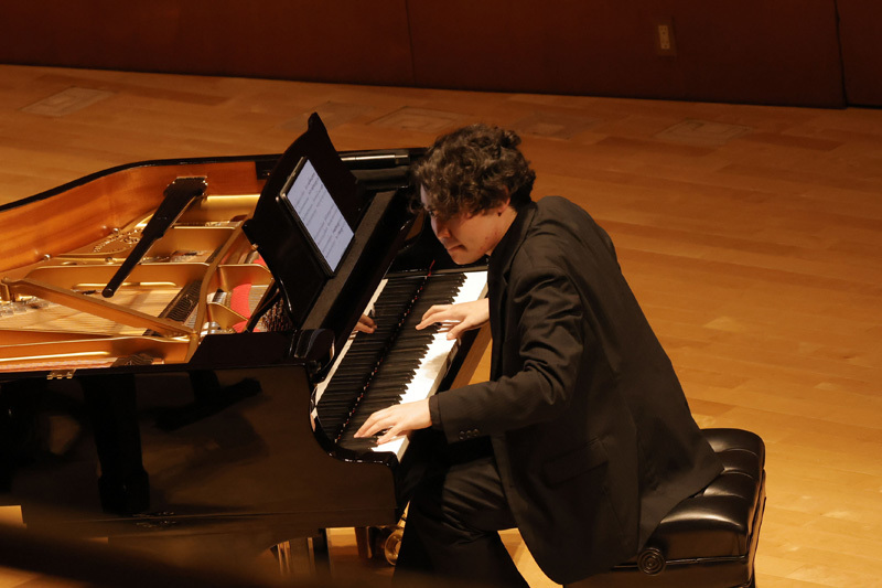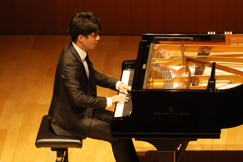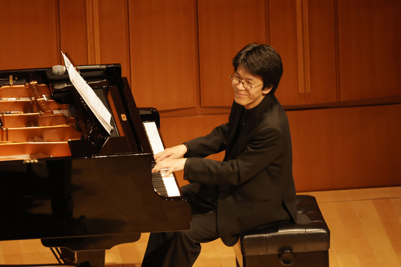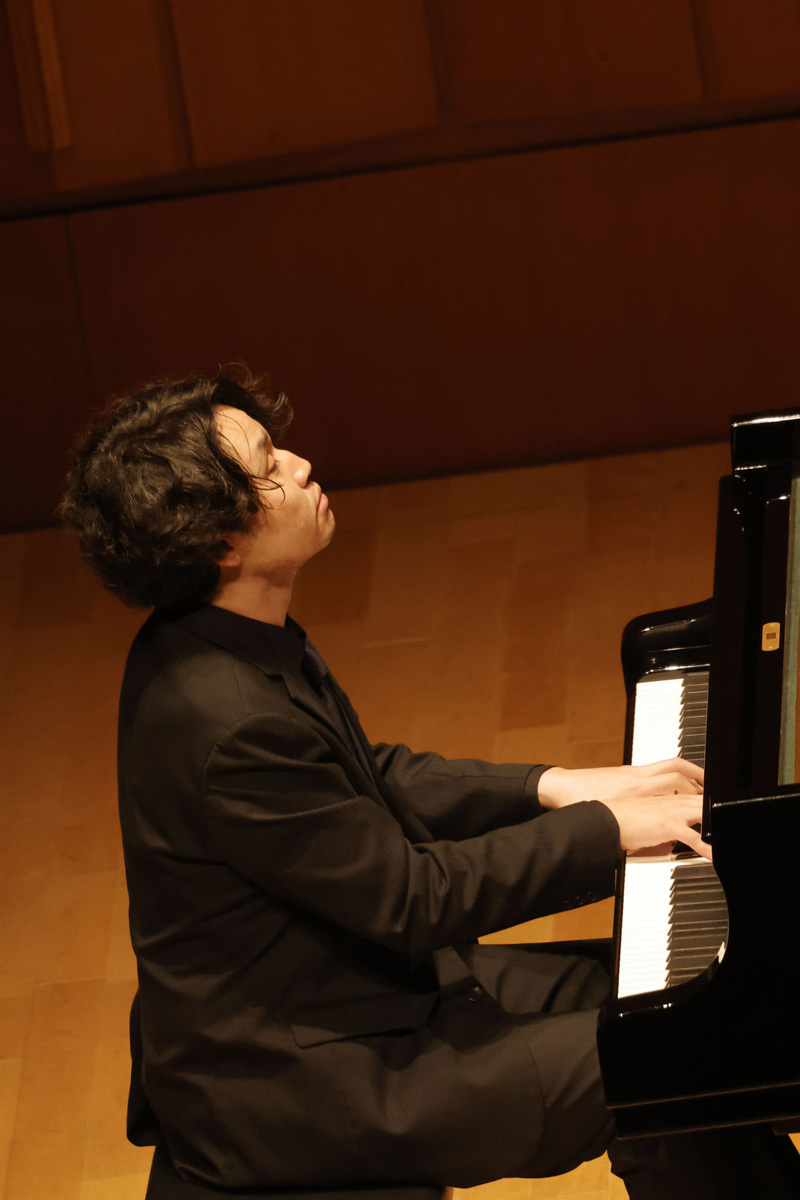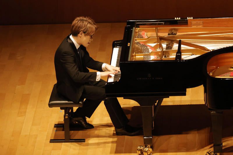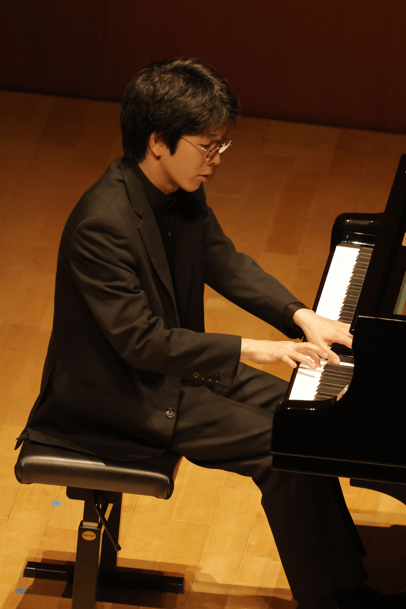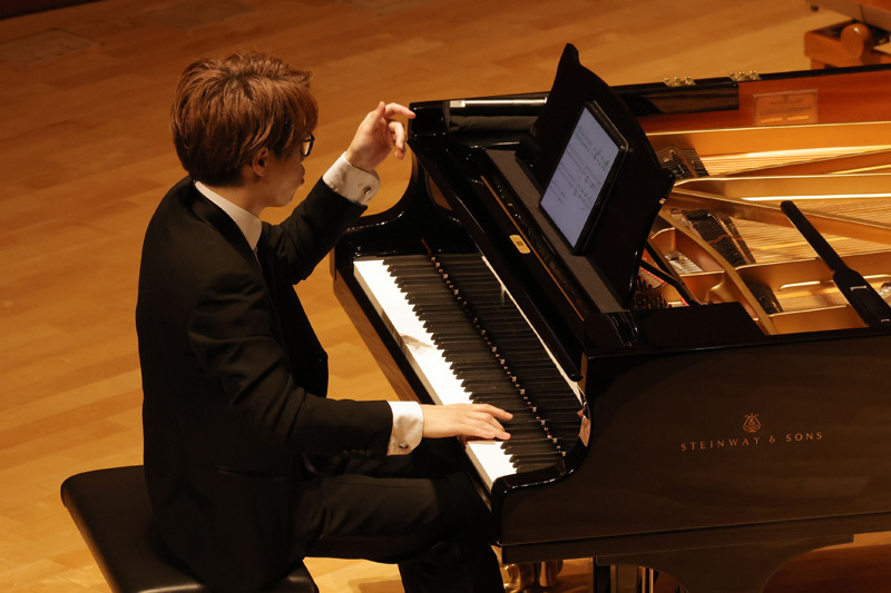まずは、演奏者一人ひとりが登場してのソロ演奏。グリンカ=バラキレフ「ひばり」(宮田)、ラヴェル「水の戯れ」(藤川)、クライスラー=ラフマニノフ「愛の悲しみ」(石井)、ラフマニノフ「前奏曲《鐘》」(髙木)とそれぞれに得意とする小作品を通して自らの個性や持ち味をファンに披歴。4人とも高揚感と期待にあふれる客席の熱気に押されたのか、少し緊張気味の面もあったが、さすがは日々修練を重ねている優秀なピアニストたちだけあって3~4分の短い尺ながら、“自らの音楽”を存分にアピールした。超絶技巧あり、透き通るような映像美を思わせるみずみずしい音の世界あり、聴きなれた作品も「編曲者によってこうも違うものになるのか……」、「今日の演奏はいつもとまったく趣向が違う……」など、それぞれに様々な思いを巡らせてくれる印象的な演奏で、このセクションだけでも十分に楽しめた。