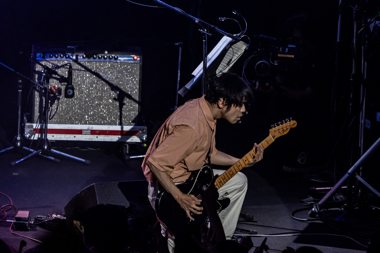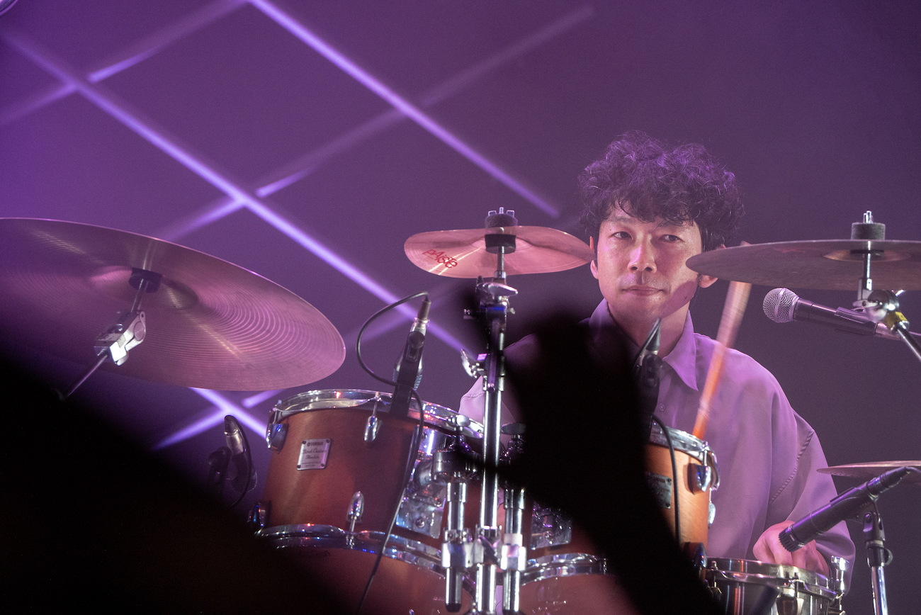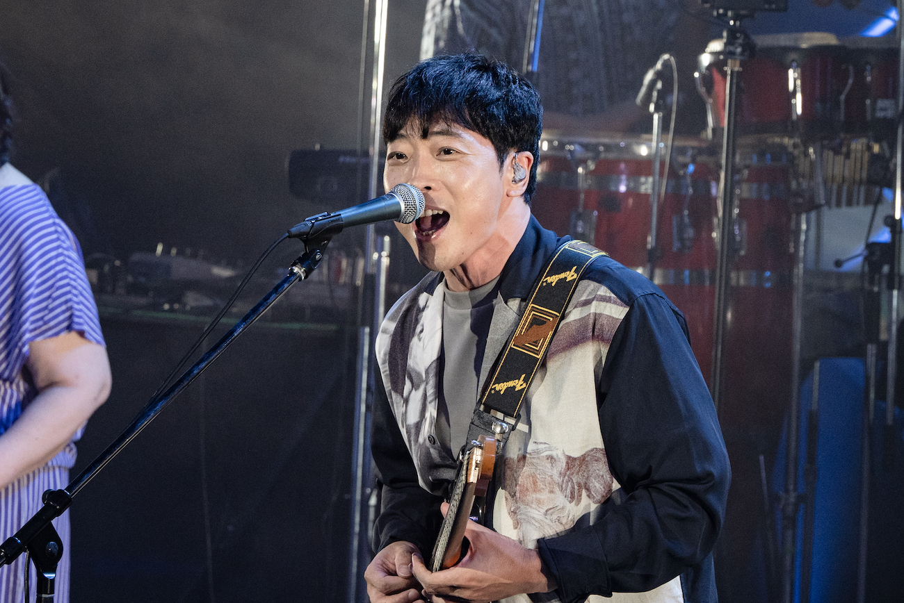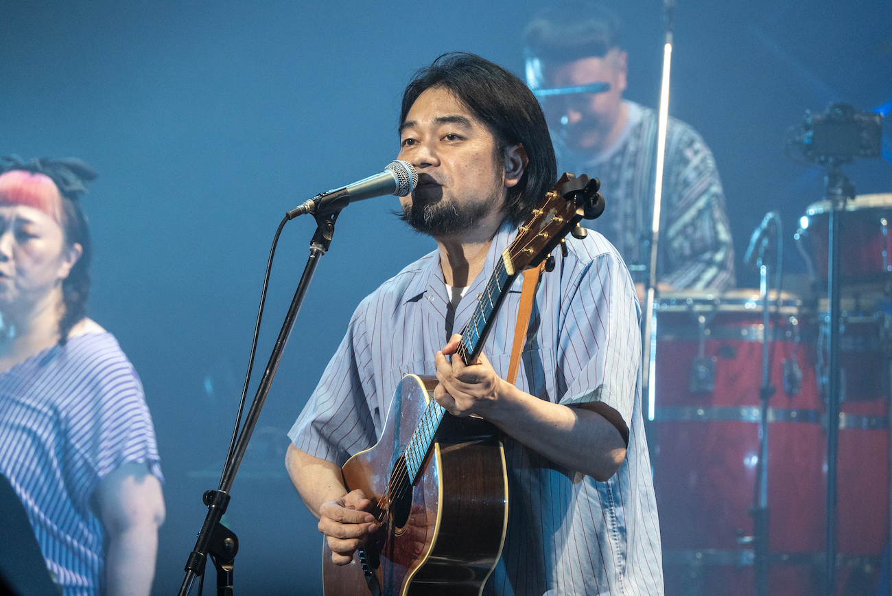 2番手は堀込泰行。その佇まいとまろやかな歌声によって、先ほどまでとは打って変わったチルな癒しの空間ができあがる。とはいえ、彼の訴求力たっぷりのボーカルと名手揃いのプレイヤー陣による演奏が合わさることで生まれる、穏やかながらコシのあるグルーヴには、自然と身体を揺らさざるを得ない。「ちょっと夏らしい曲を」と披露された「Ladybird」では、奥田の弾くブルージーなギターも良いアクセントとなっていた。