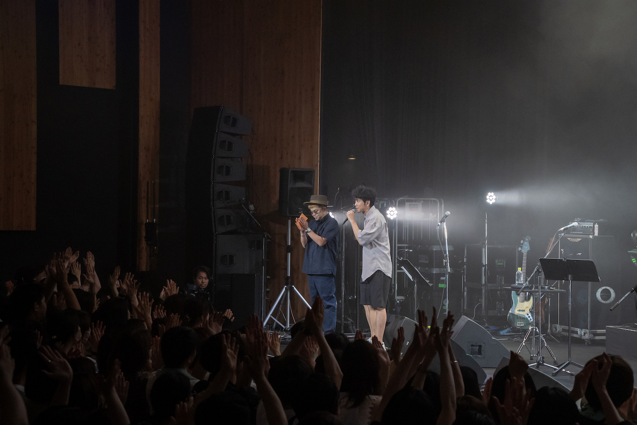 前乗りして馬刺しを存分に堪能した話や、その後ホテルでGoogleマップで見たら家まで徒歩2日かかることを知った話など、淡々とした口調でユーモラスなことを話す堀込のMCに、会場の空気は自然とあたたかなものとなっていく。ライブは後半へと進み、サマーチューンながらあくまでゆったりとしたサウンドに酔いしれたのは、小松からのリクエストだという「クレイジーサマー」。いずれの曲もそうなのだが、抑揚の多くない中に光るメロディセンスによって、音楽としての心地よさとポップスとしての強度が両立されている。ラストは歓声に迎えられながら「YOU AND ME」を届けてステージを後にした。