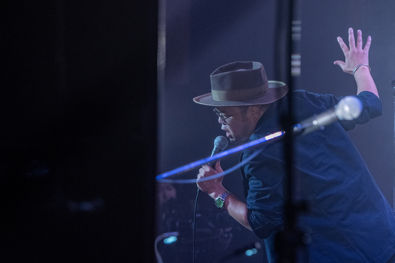 漫談よろしく軽妙なトークで仕切っていく西寺に呼び込まれ、まず一人目のボーカリスト・堂島孝平が登場する。
