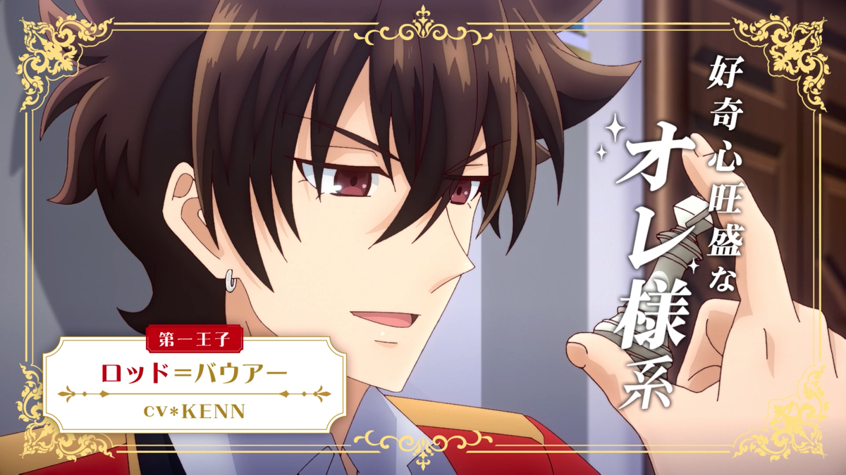 さらに追加キャストも発表された。作中の乙女ゲーム『Revolution』に登場する“本来の攻略対象”であるイケメン王子たち。好奇心旺盛なオレ様系の第一王子・ロッド=バウアーをKENNが、ミステリアスでクールな第二王子・セイン=バウアーを浪川大輔が、甘いマスクの策士系で第三王子・ユー=バウアーを日笠陽子が演じる。各キャストからのコメントも届いている。