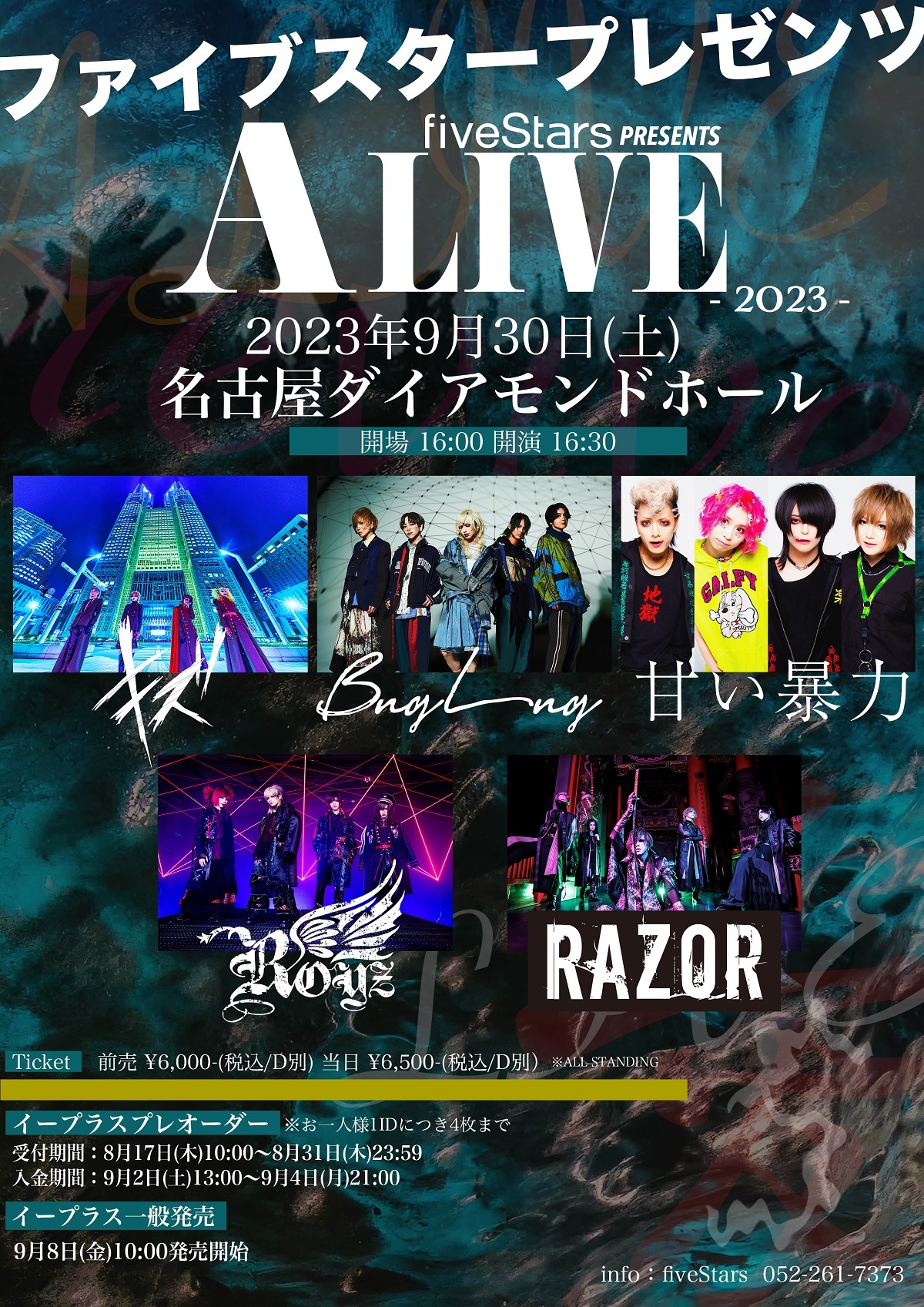 9月30日(土) 名古屋ダイアモンドホールにて、名古屋のVisualRock専門店「fiveStars」が主催するライブイベント『A LIVE -2023-』の開催が決定した。