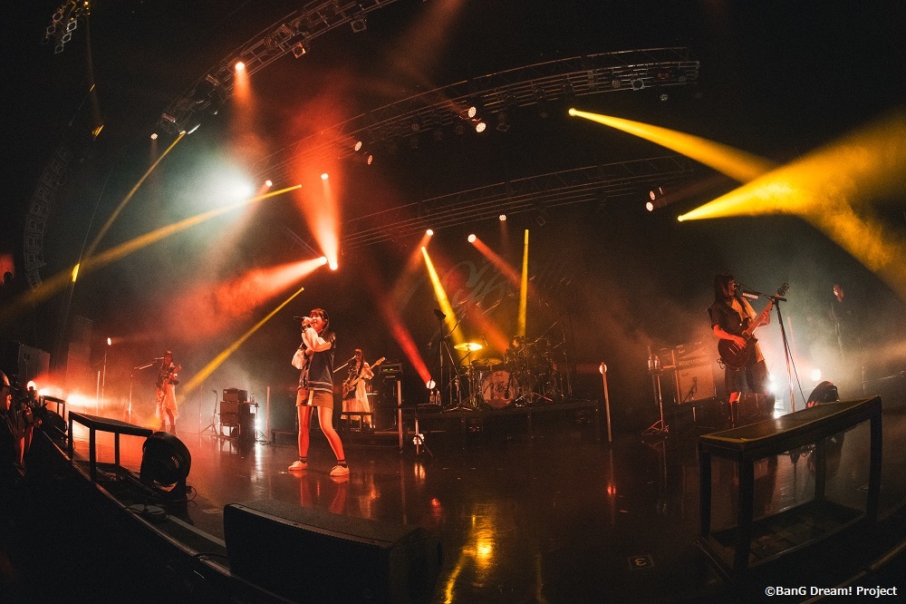 1曲目からアニメのテーマソングともなっている「壱雫空」、2曲目に1st Single「迷星叫」、さらに3曲目に配信シングルとしてリリースした「無路矢」と既存のオリジナル楽曲で畳みかけたあと、4曲目にPoppin'Partyのカバー「Time Lapse」を披露すれば、会場はバンドリーマー(ファン)たちの熱気で一気に埋め尽くされる。