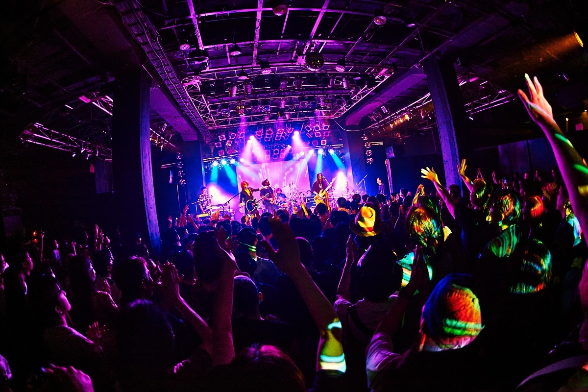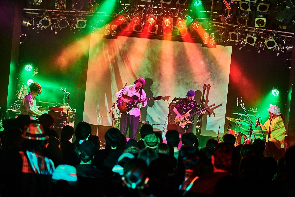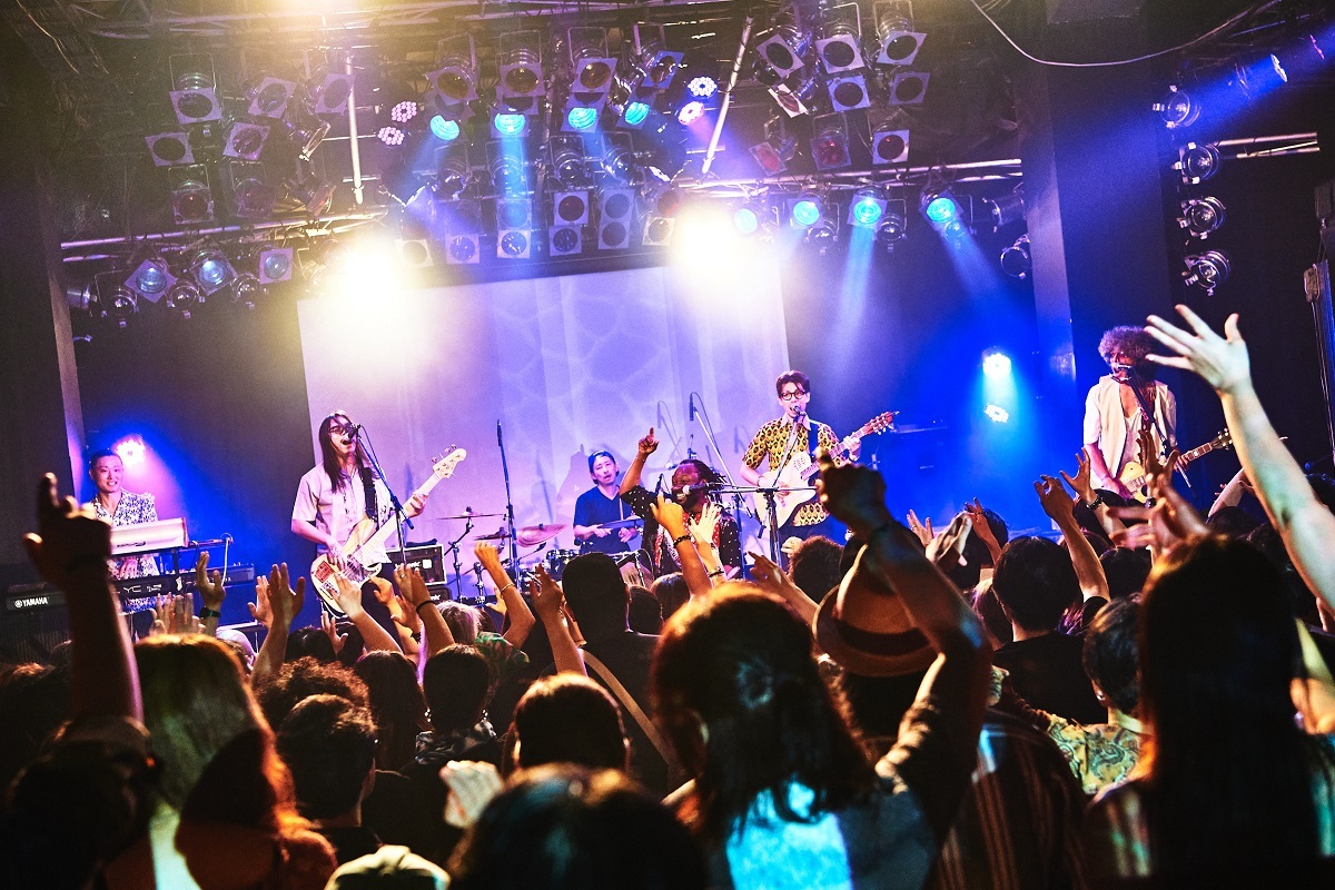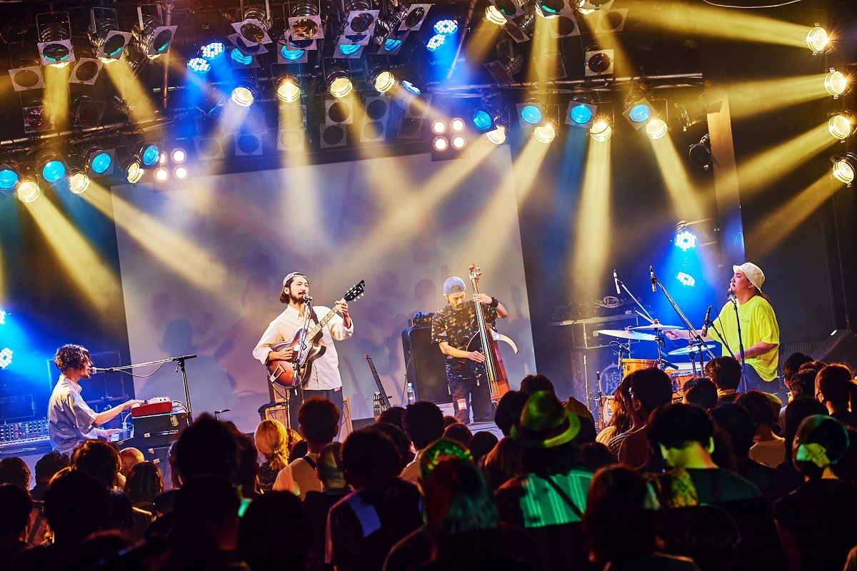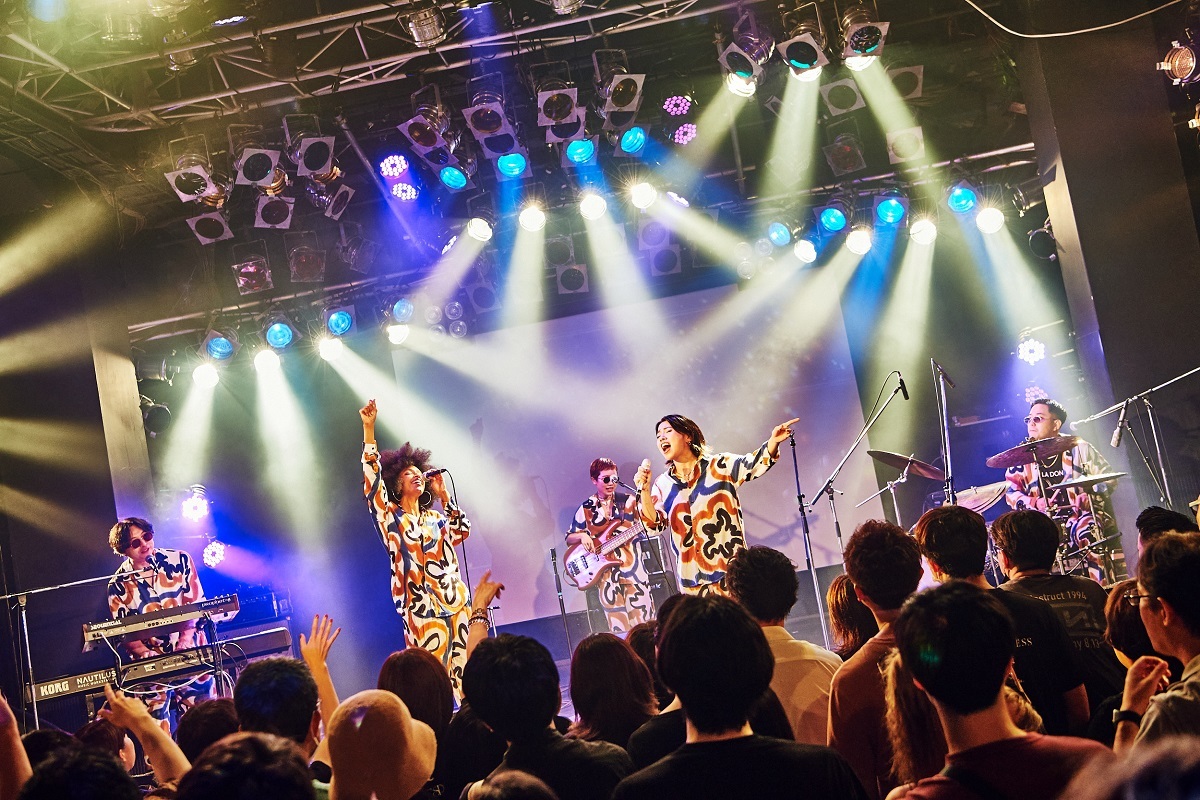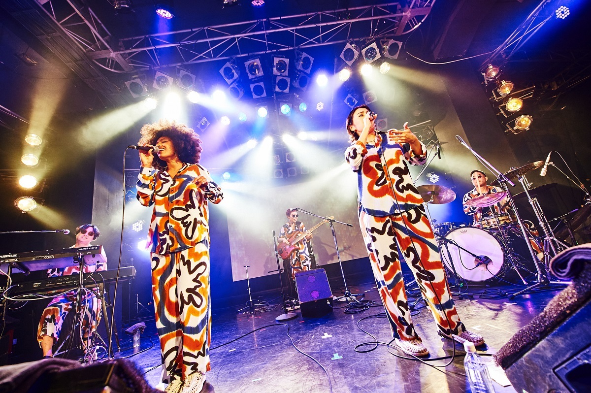 そのGIVE UP GUYSがビートの効いた音楽を場内に響き渡らせ、観客はすでにテンションが上がっている中、記念すべき1周年のステージにトップで登場してきたのは、SHAGでもキーボードを務める別所和洋が率いる5人組のパジャマで海なんかいかない、だ。ネオソウルやジャズをルーツとしながらも、エクスペリメントなサウンドを追求するグループだけあって、エレクトリック・ベースのHarunaとドラムのSeiyaの繰り出す抜群のグルーヴとリーダーBessho(別所和洋)の洗練されたハーモニーの上で、FiJAとChloeが張りのある歌声で6曲を披露。のっけからハイ・エナジーなパフォーマンスに魅了されまくる。