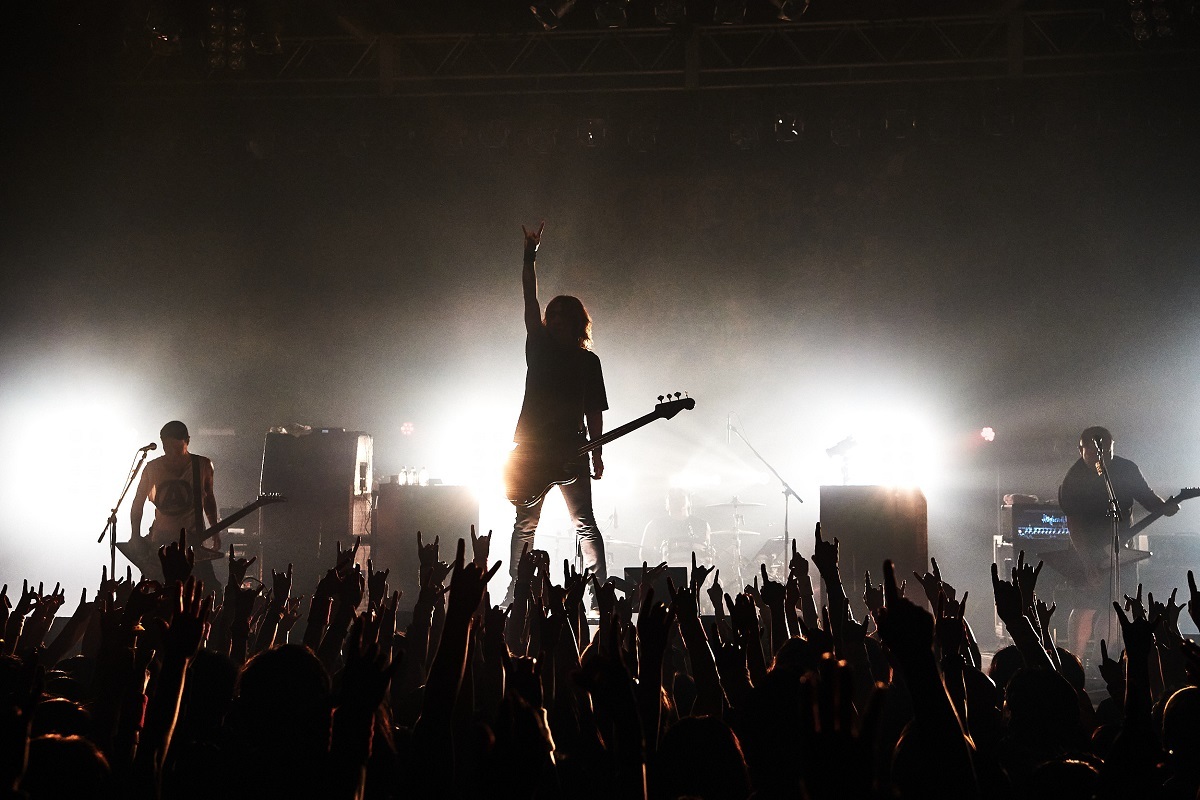 「新曲もガンガン作ってるので、楽しみにしてて下さい」と告げたあとは、スケール感たっぷりのロックバラード「ACROSS THE NIGHT」を熱唱。低音から高音、下から上へ、1オクターブを超えていくエモい歌唱。有松がパワフルな音でドラマティックな盛り上がりを作っていったあと《壊れたのなら また最初から創り始めればいいさ》と繋ぐJの声が、ものすごい説得力で観客の心を揺さぶる。
