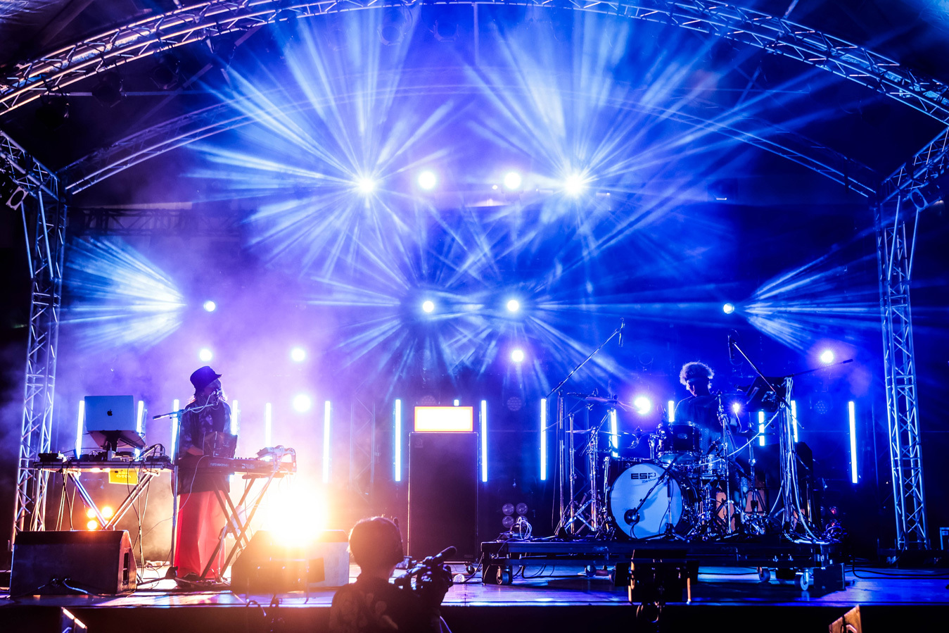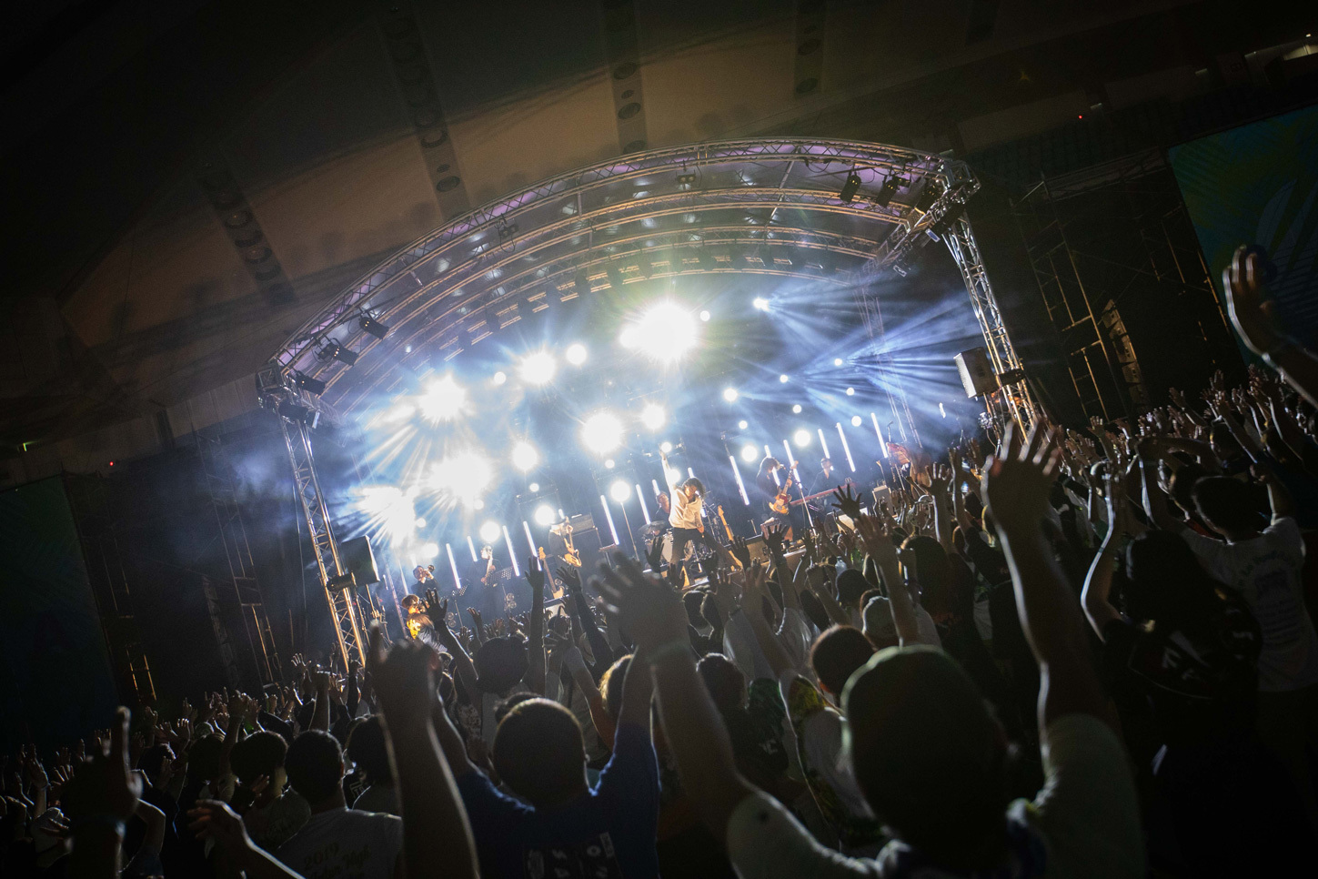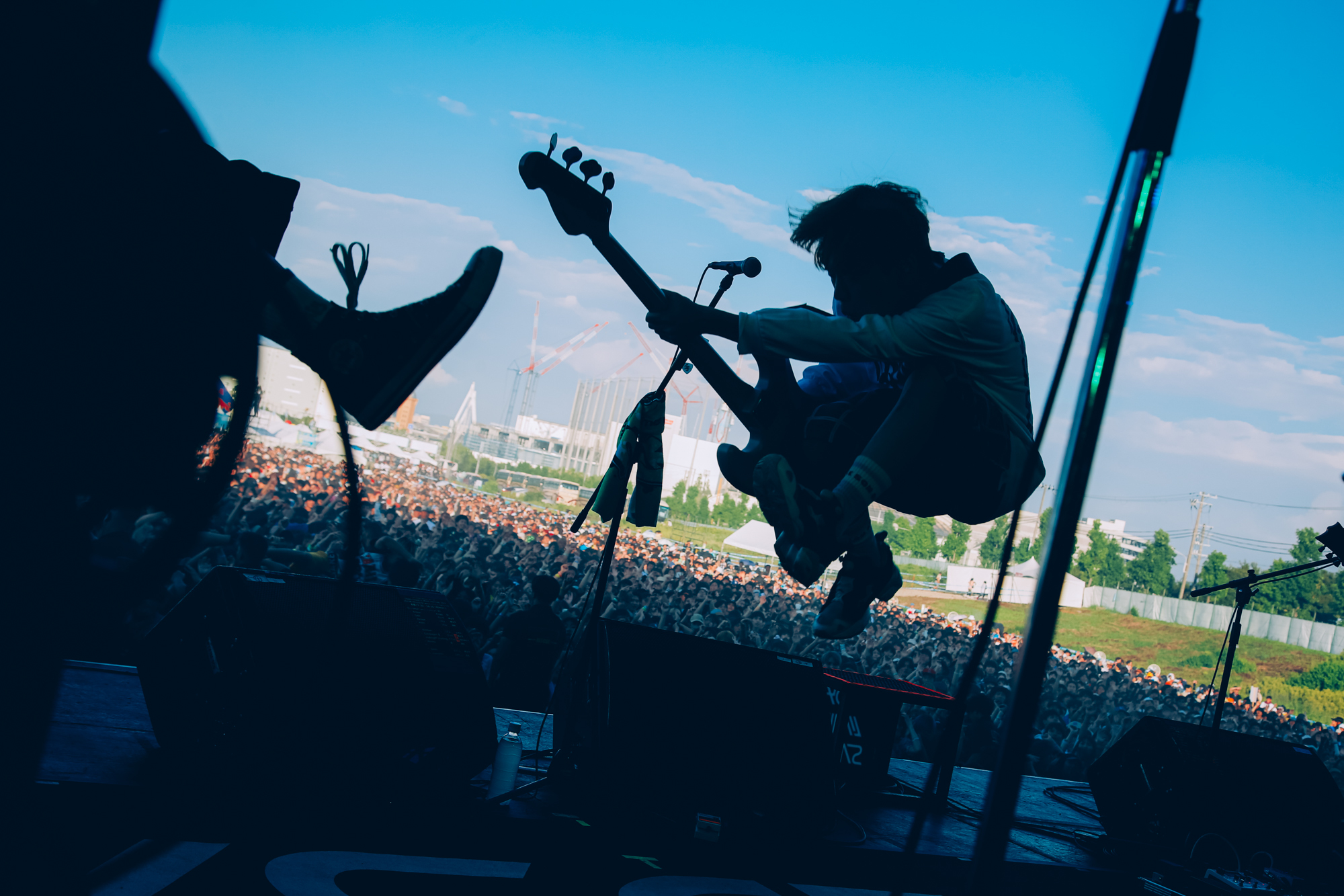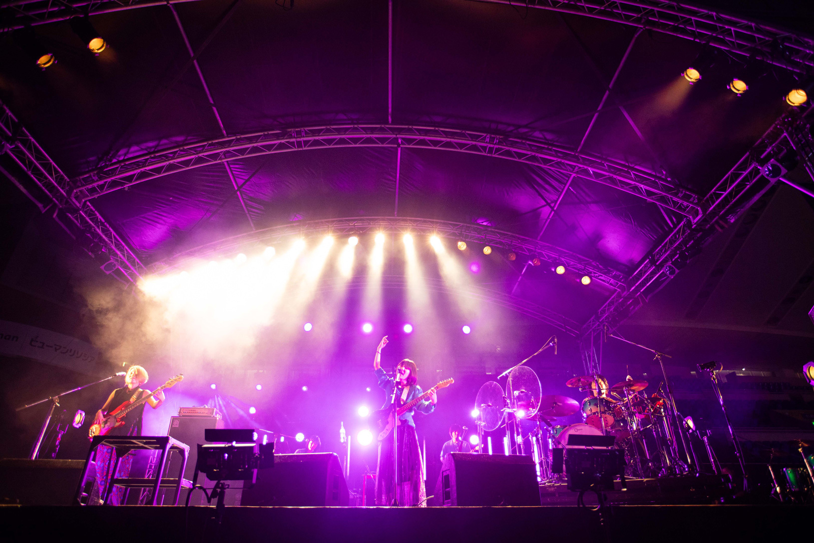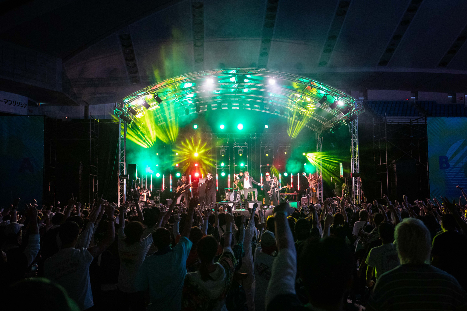 ステージは全部で4つ。屋外ステージは最大キャパのSKY STAGEとそれに向かい合うCOAST STAGE、海沿いのSUN STAGE。そして今年「おおきにアリーナ舞洲」に新設された唯一の屋内ステージ・BASE STAGE。BASE STAGEはスタンディングエリアの他にスタンド席もあり、空調のきいた室内で休憩しながらライブを見ることもできた。