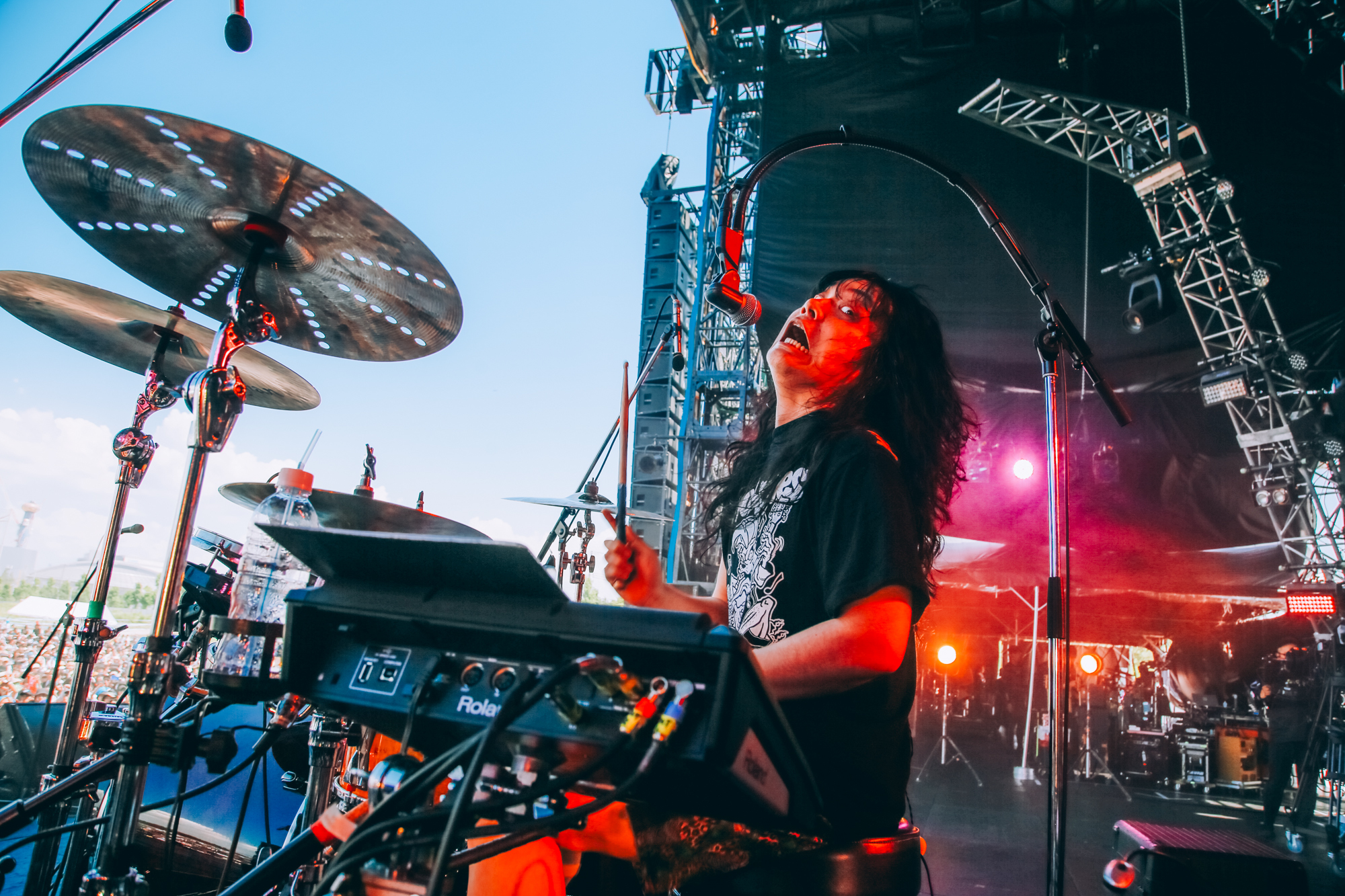 「Thunderclap」ではMinamiが客席に飛び込み、「Virtue and Vice」では真っ赤な炎と見事なタケノコダンスでどこか呪術的な一体感を作り出す。Soは「フェスのトリをやらせてもらえる機会、これから何回あるんやろう。わからないけど、この夜をすごく大事にしたいんですよ。一生に一度の思い出作って帰れ! 大阪日本一の街やろが! もっと声聞かせえ!」と叫び、ラスト3曲を大迫力で駆け抜けた。「Massive Core」ではステージの背後から見事な花火が上がり、漆黒の夜を鮮やかに彩った。大トリにふさわしい圧巻のパフォーマンスに、数万人の観客は目を輝かせていた。あんなステージを見せつけられたら、9月22日(金)に開催される彼らの日本武道館ワンマンは一体どうなるのか……楽しみでならない。